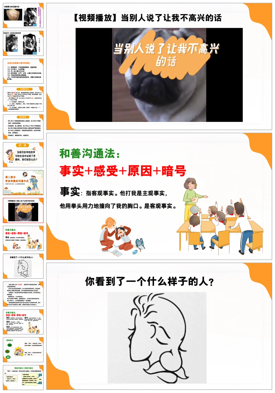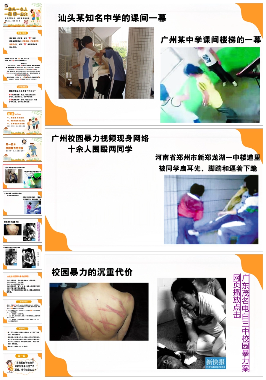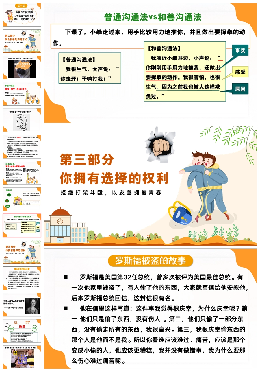 【5510】【校园霸凌】拒绝打架斗殴主题班会《一拳头一仇人,一击掌一朋友》ppt课件+发言稿