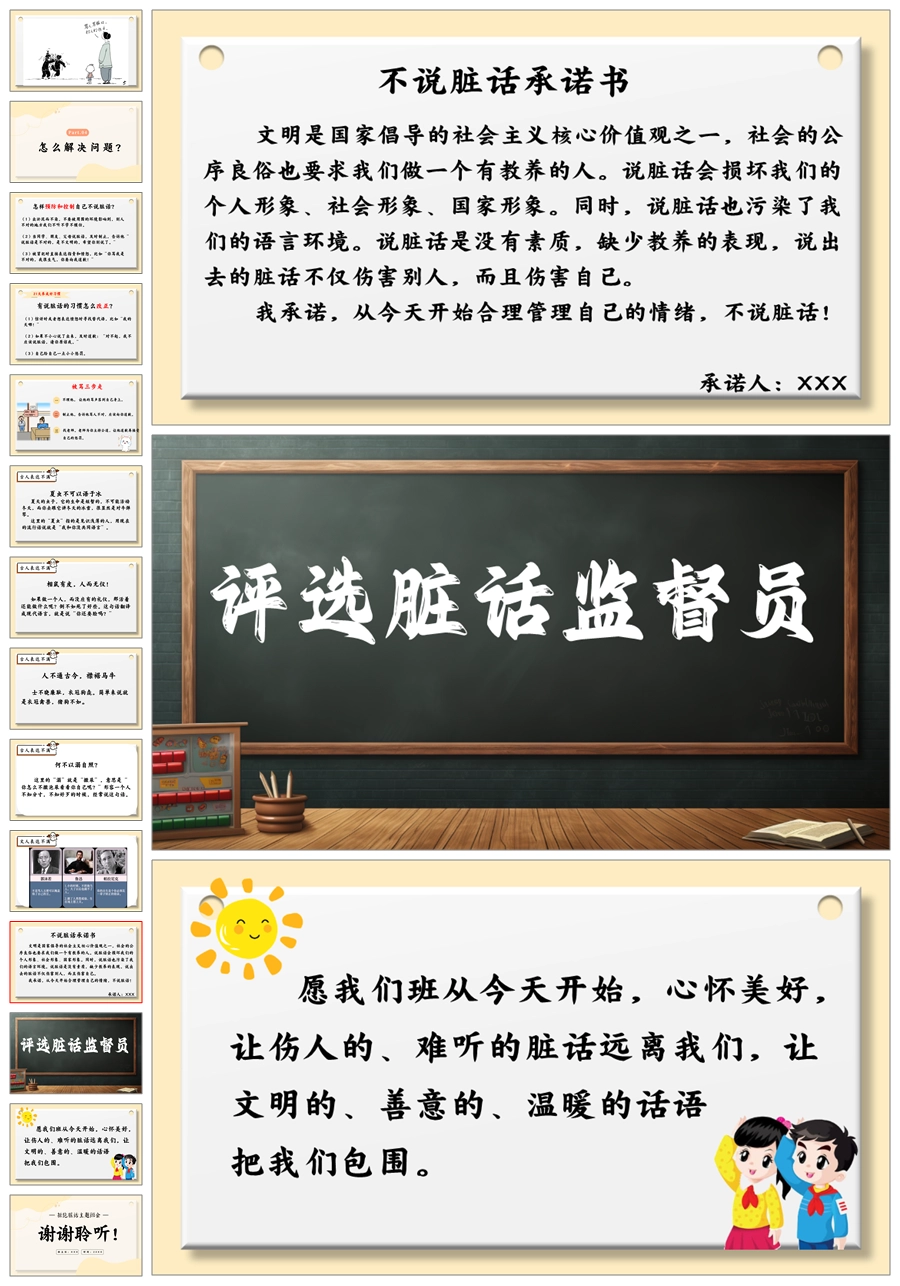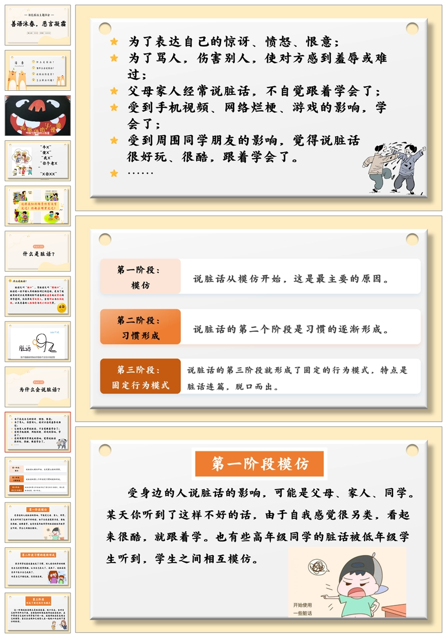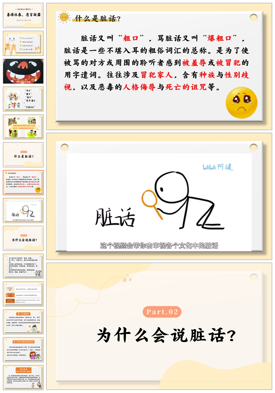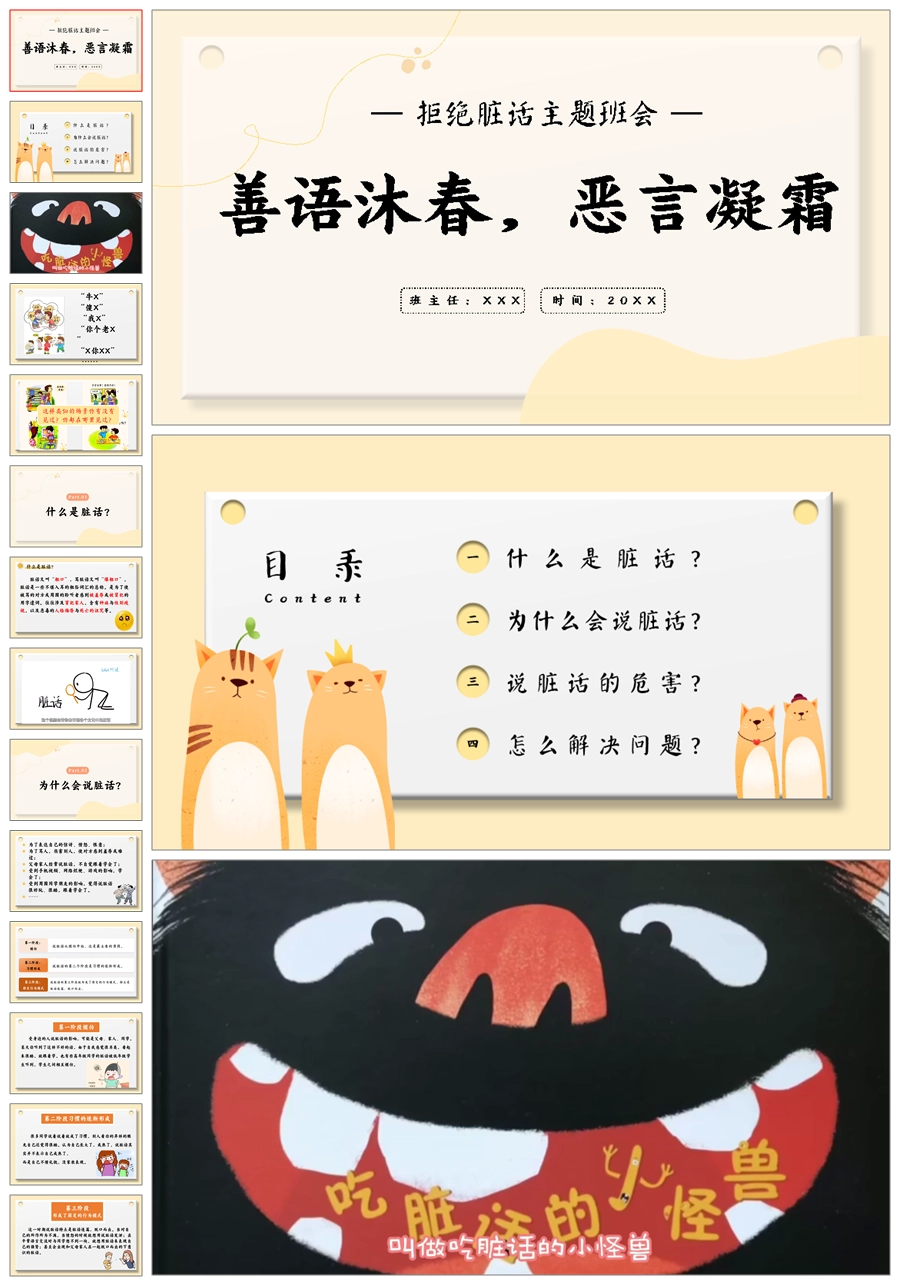 【5512】《善语沐春,恶言凝霜》拒绝脏话主题班会ppt课件+发言稿+视频