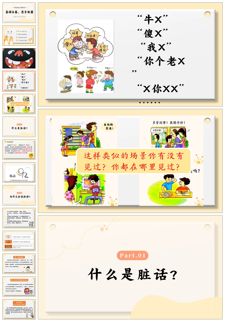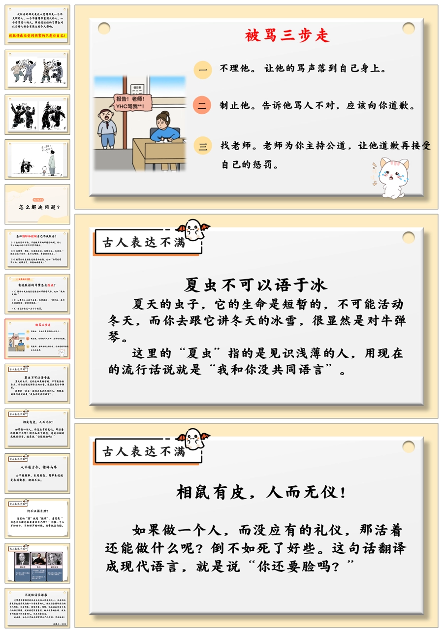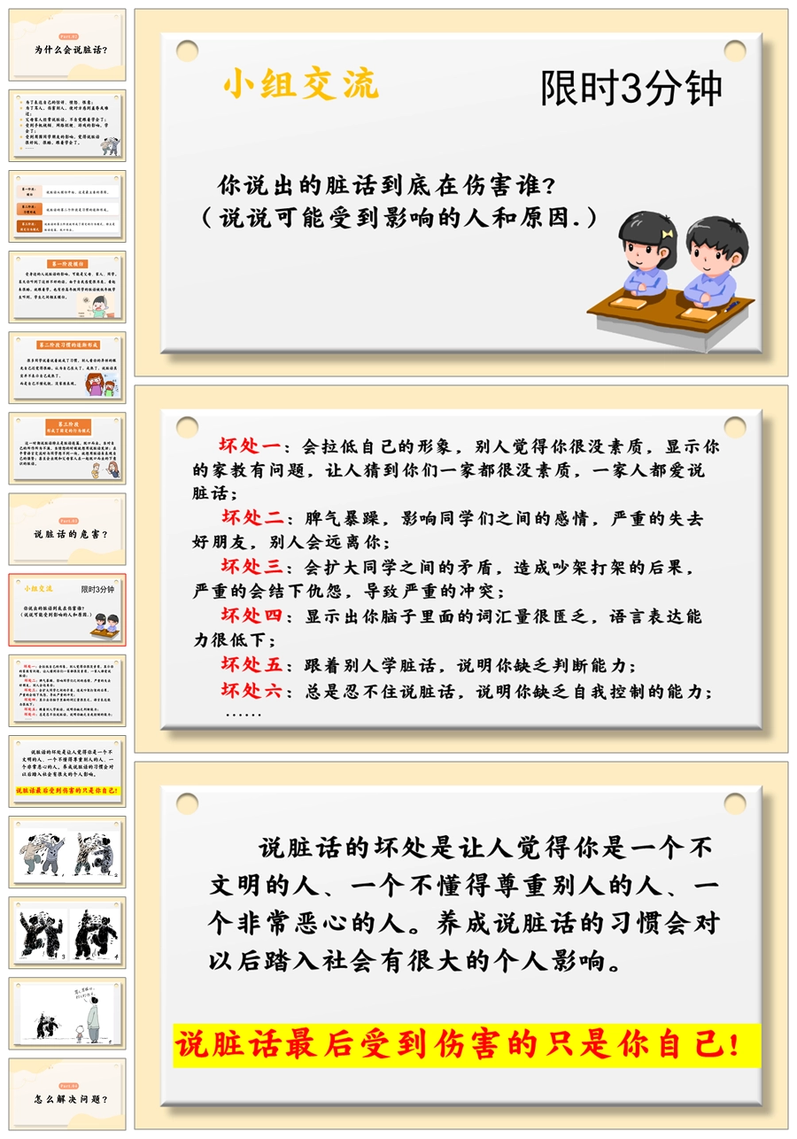 【5512】《善语沐春,恶言凝霜》拒绝脏话主题班会ppt课件+发言稿+视频