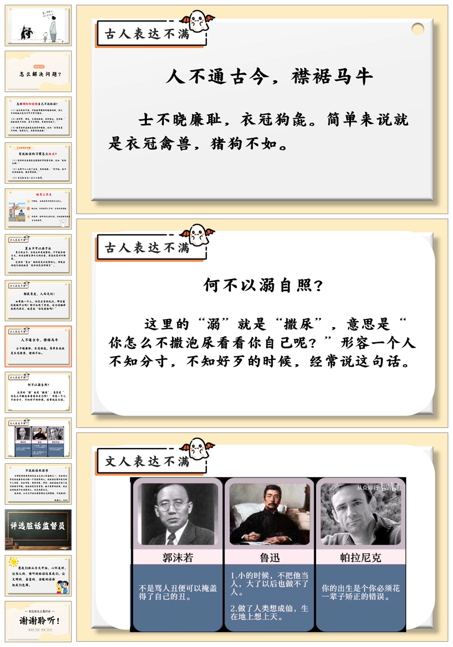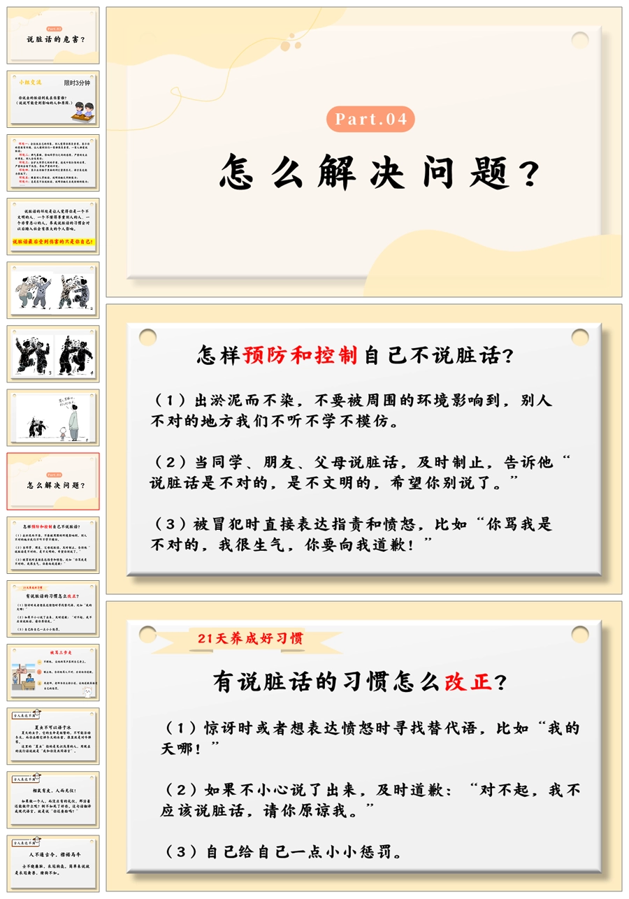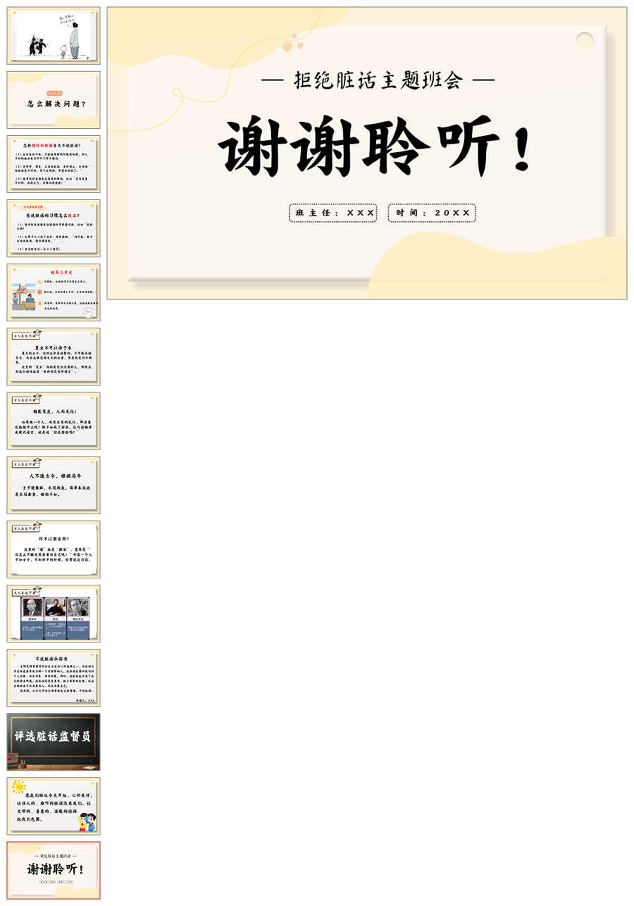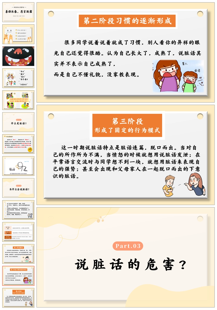 【5512】《善语沐春,恶言凝霜》拒绝脏话主题班会ppt课件+发言稿+视频