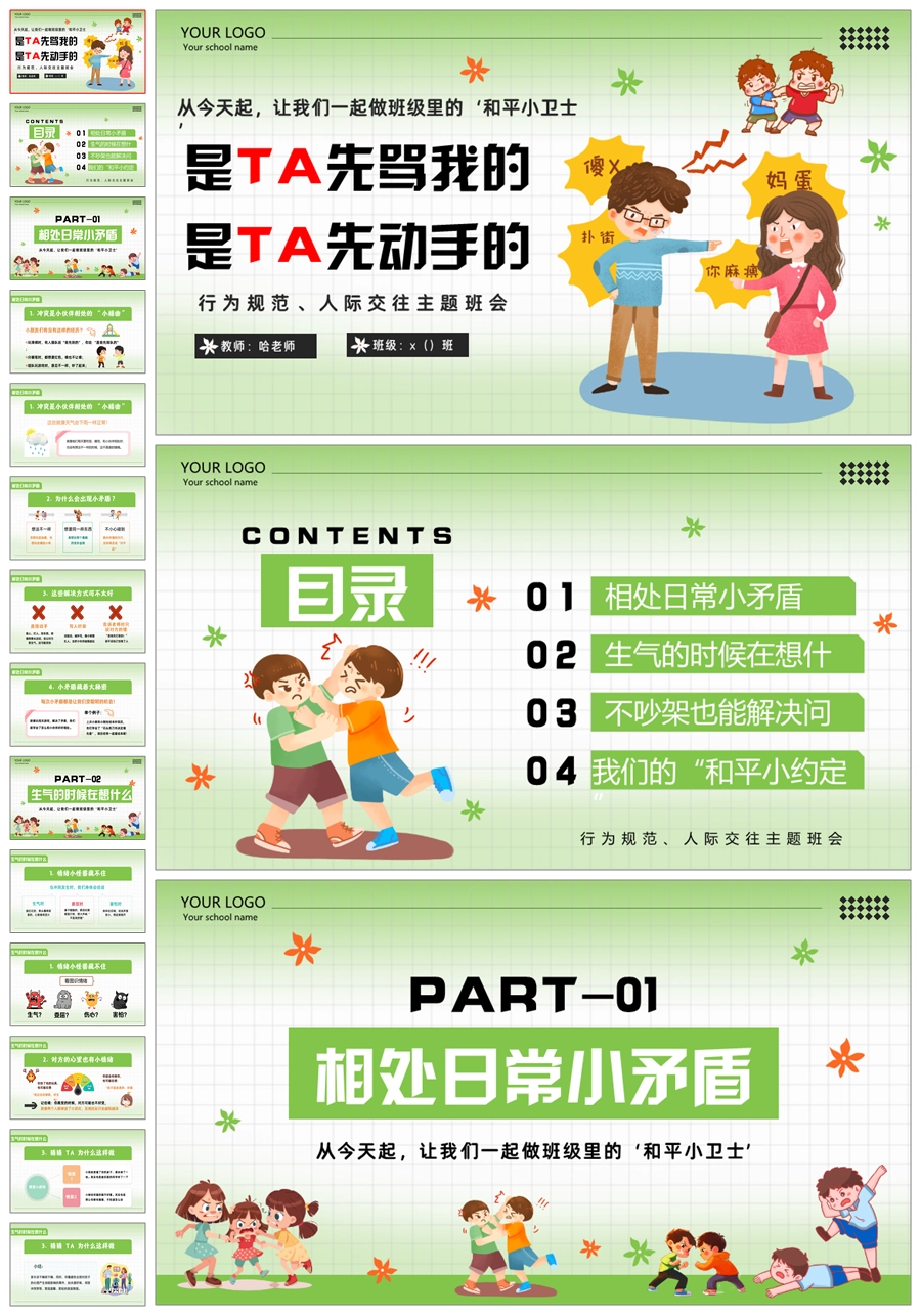 【5513】《是 TA 先骂我的 是 TA 先动手的》人际交往主题班会ppt课件+教案
