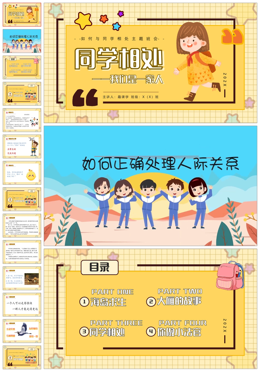 【5515】《我们是一家人》同学相处同学关系主题班会ppt课件+发言稿