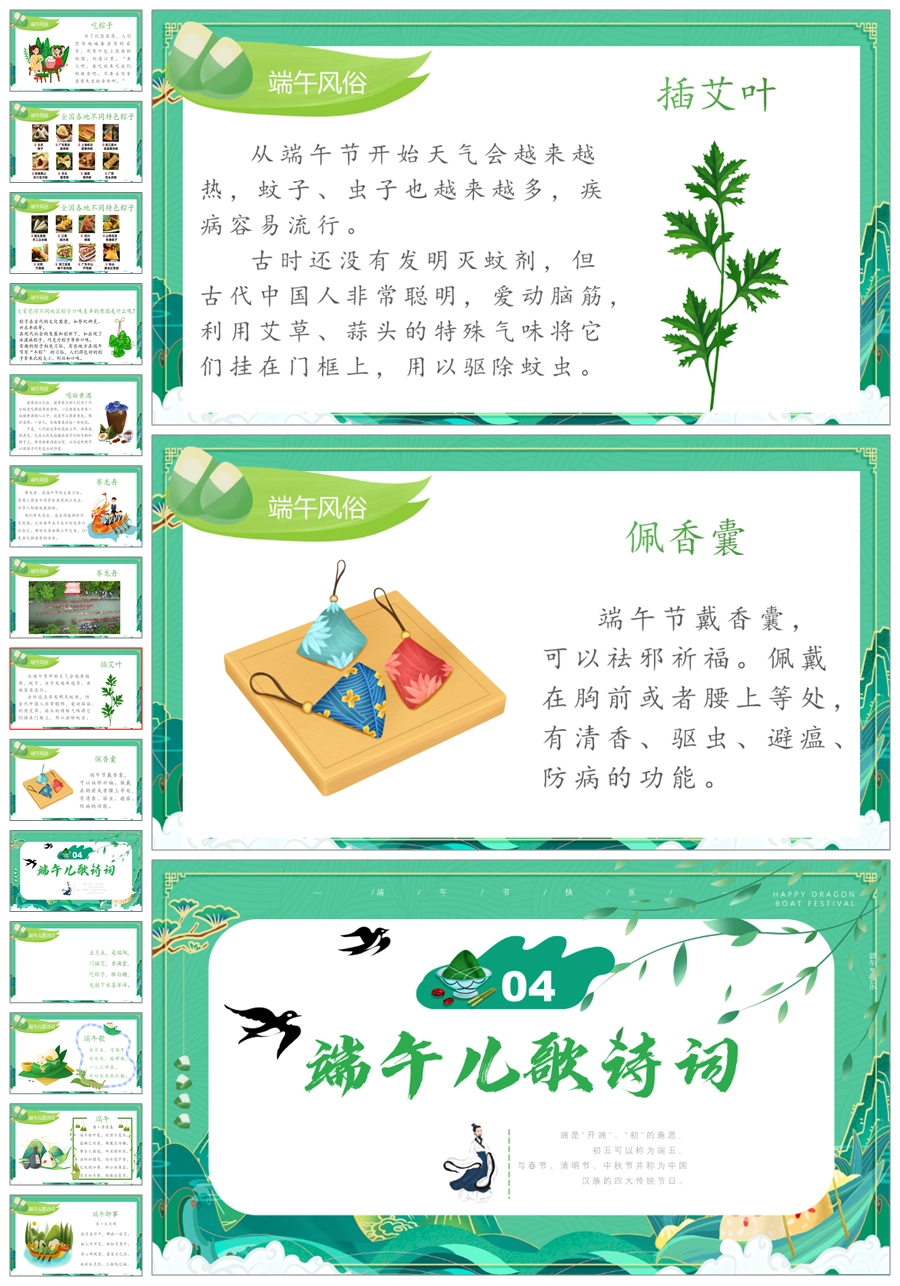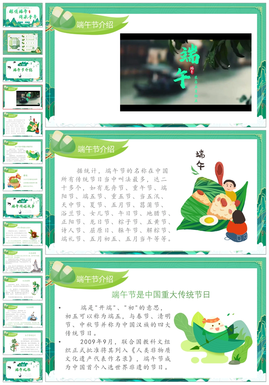【5526】《粽情端午,传承千年》端午节主题班会PPT+教案+发言稿+视频