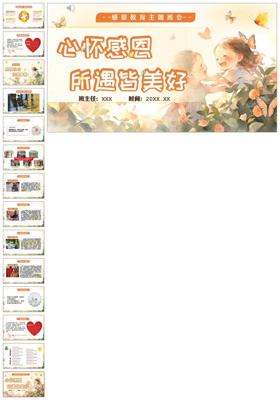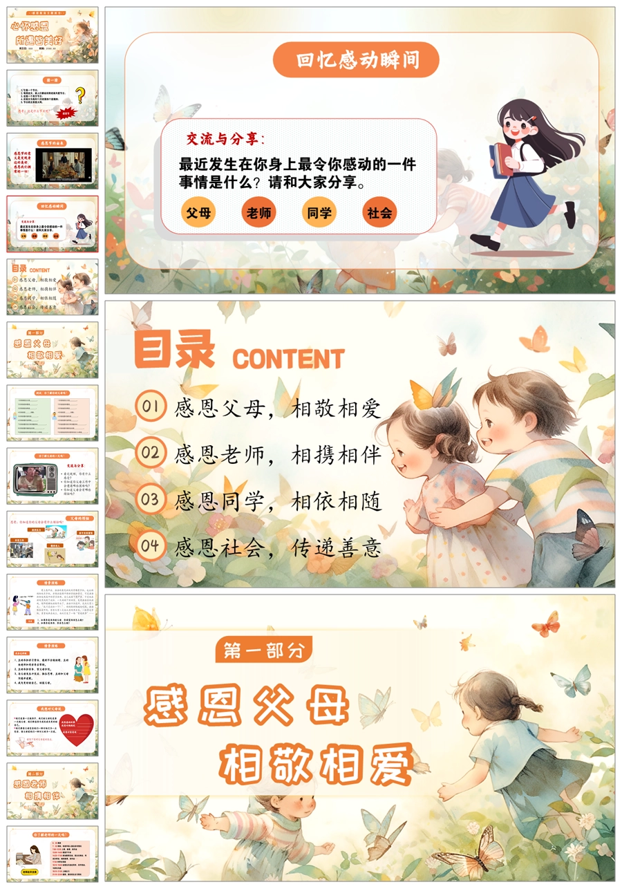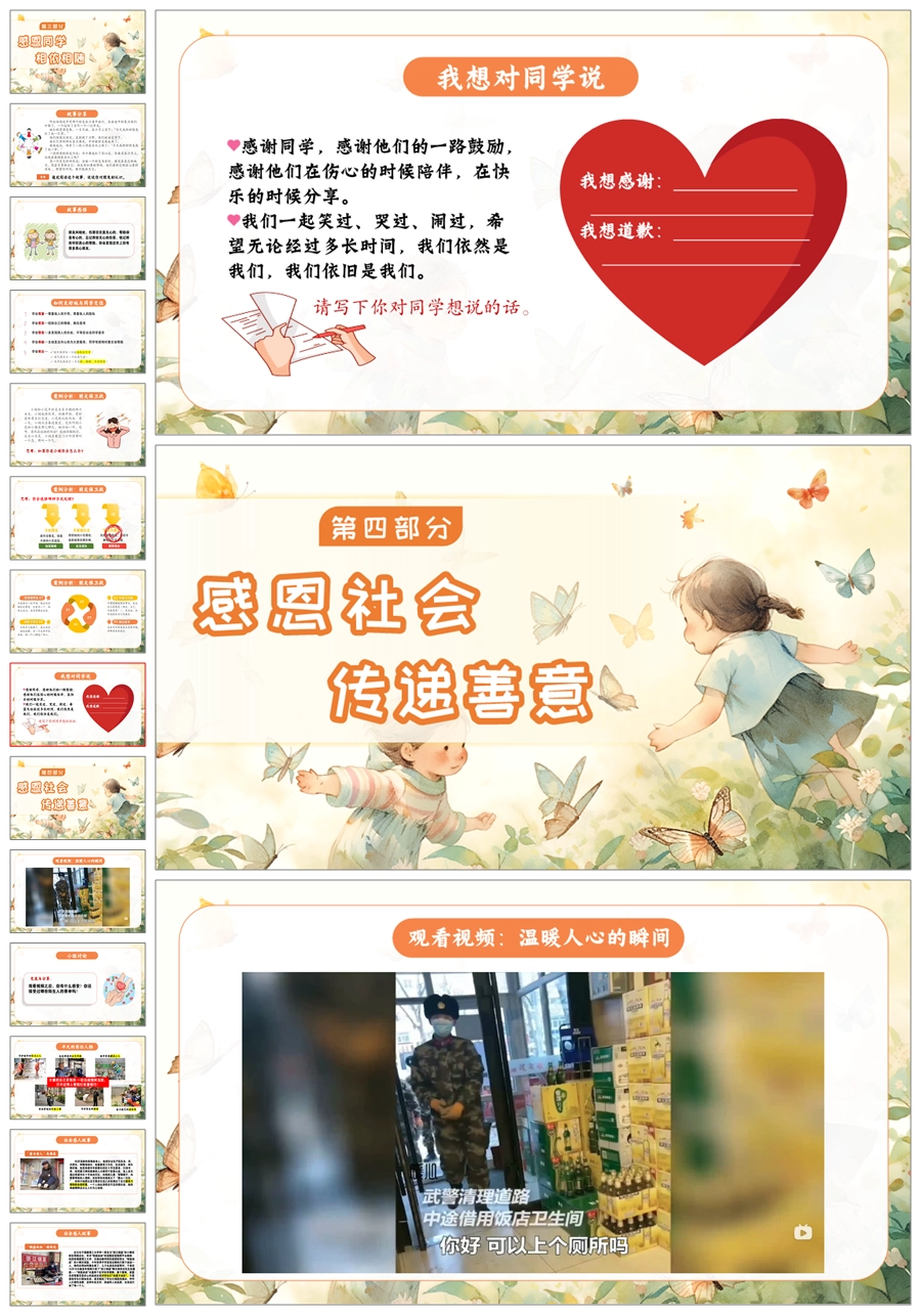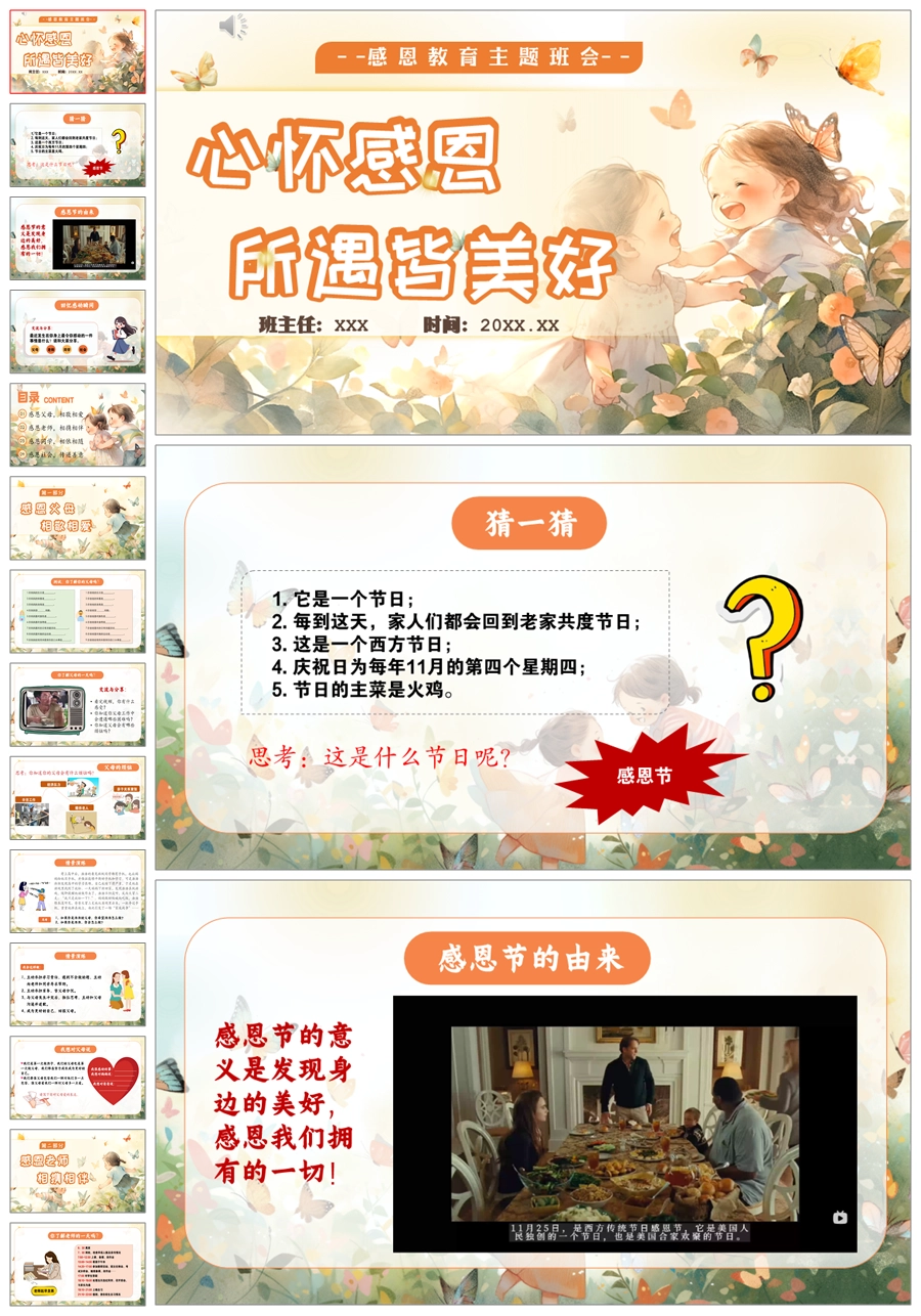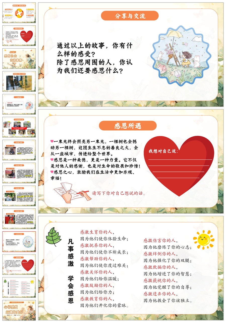【5517】《心怀感恩,所遇皆美好》感恩教育主题班会ppt课件+教案+视频