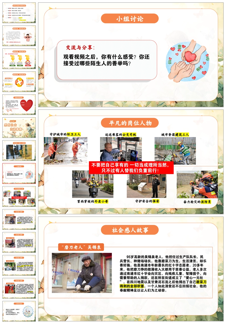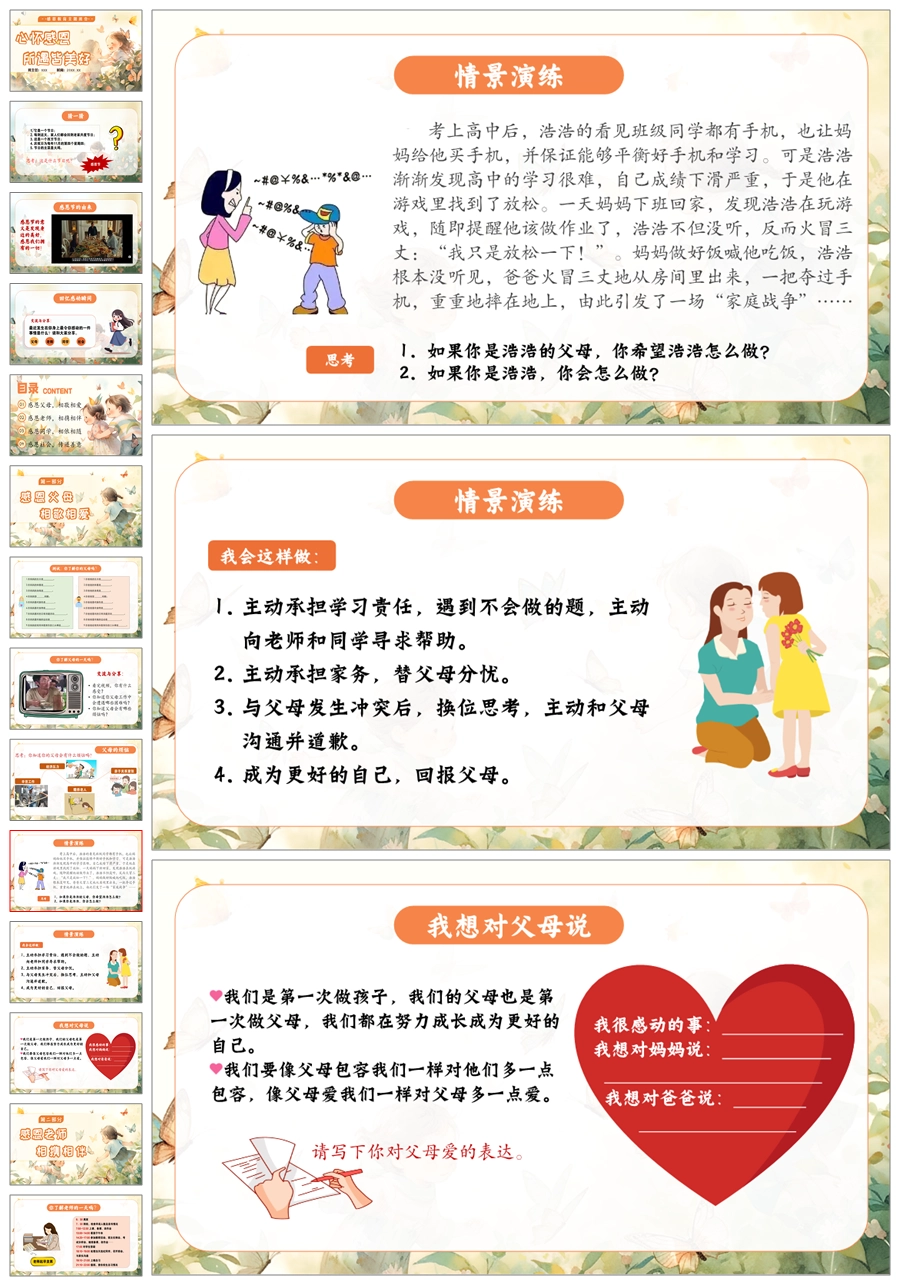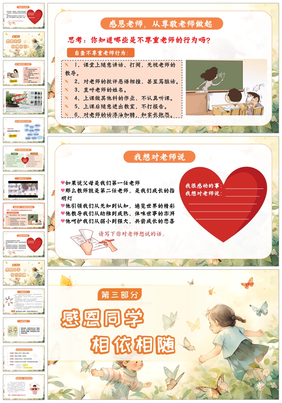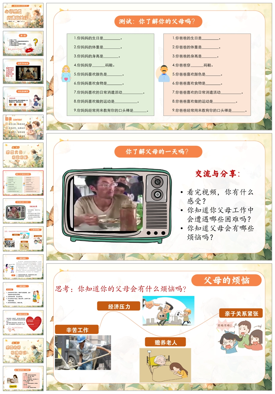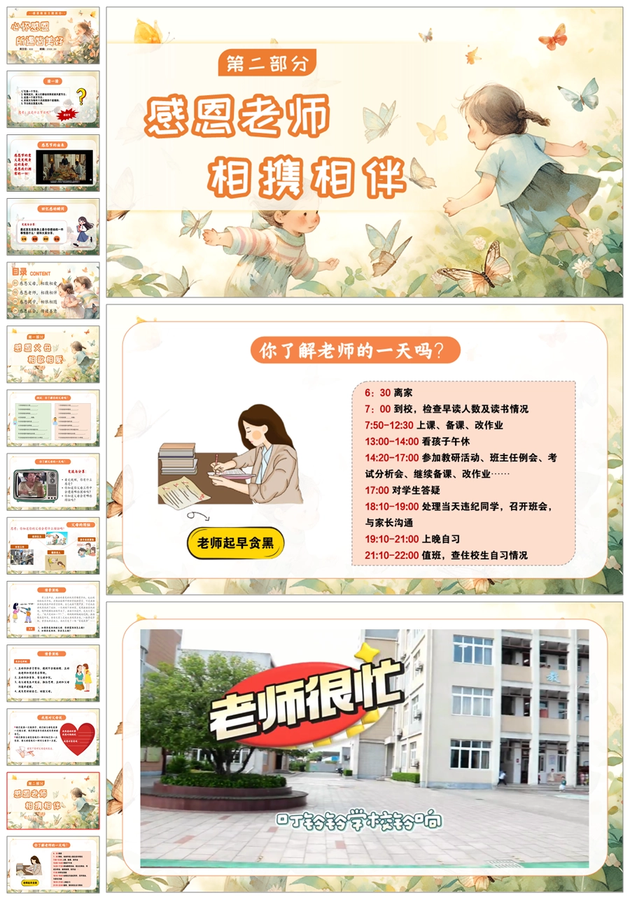 【5517】《心怀感恩,所遇皆美好》感恩教育主题班会ppt课件+教案+视频