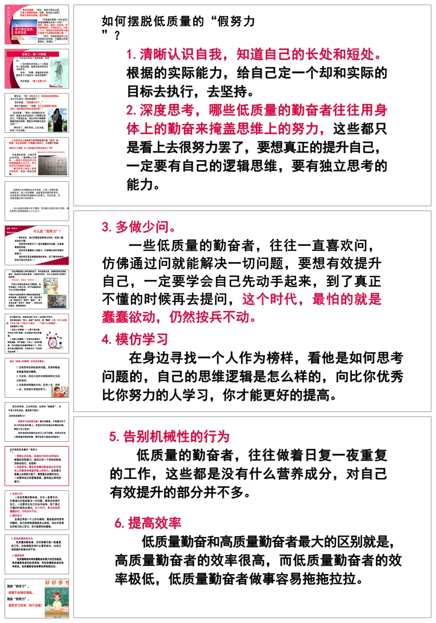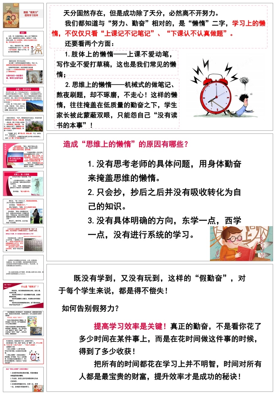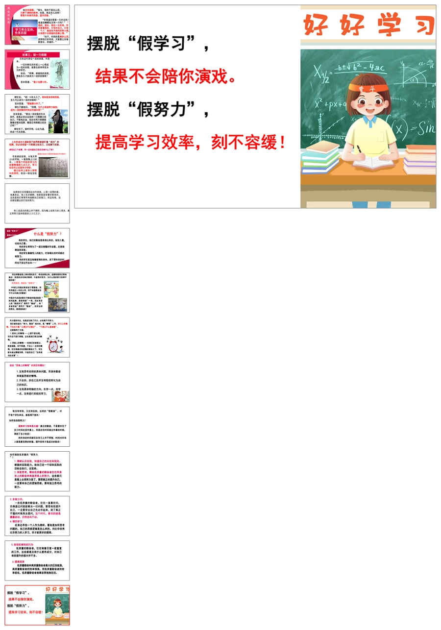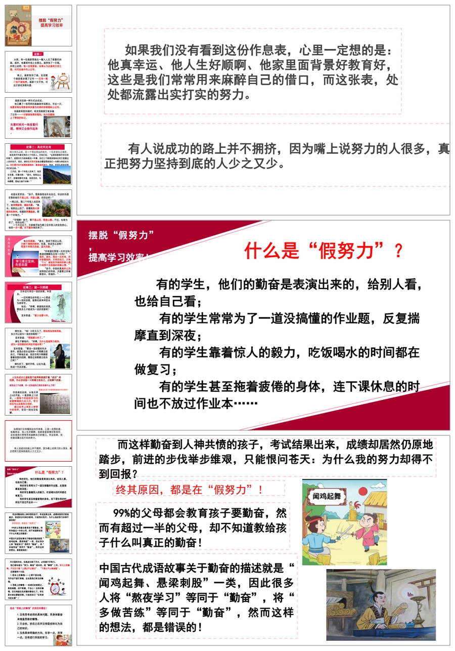【5530】《摆脱假努力,提高学习效率》学习动员主题班会PPT课件+发言稿