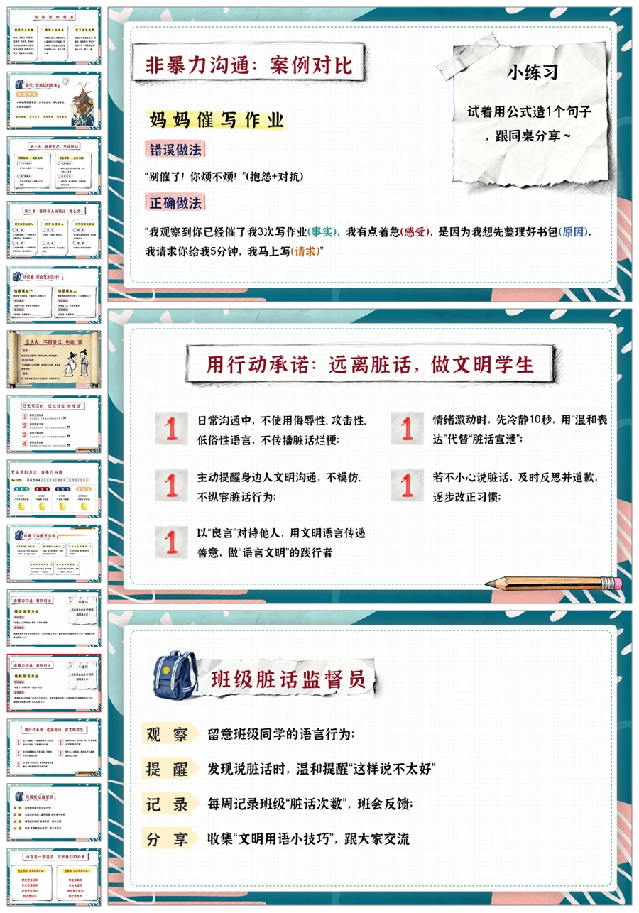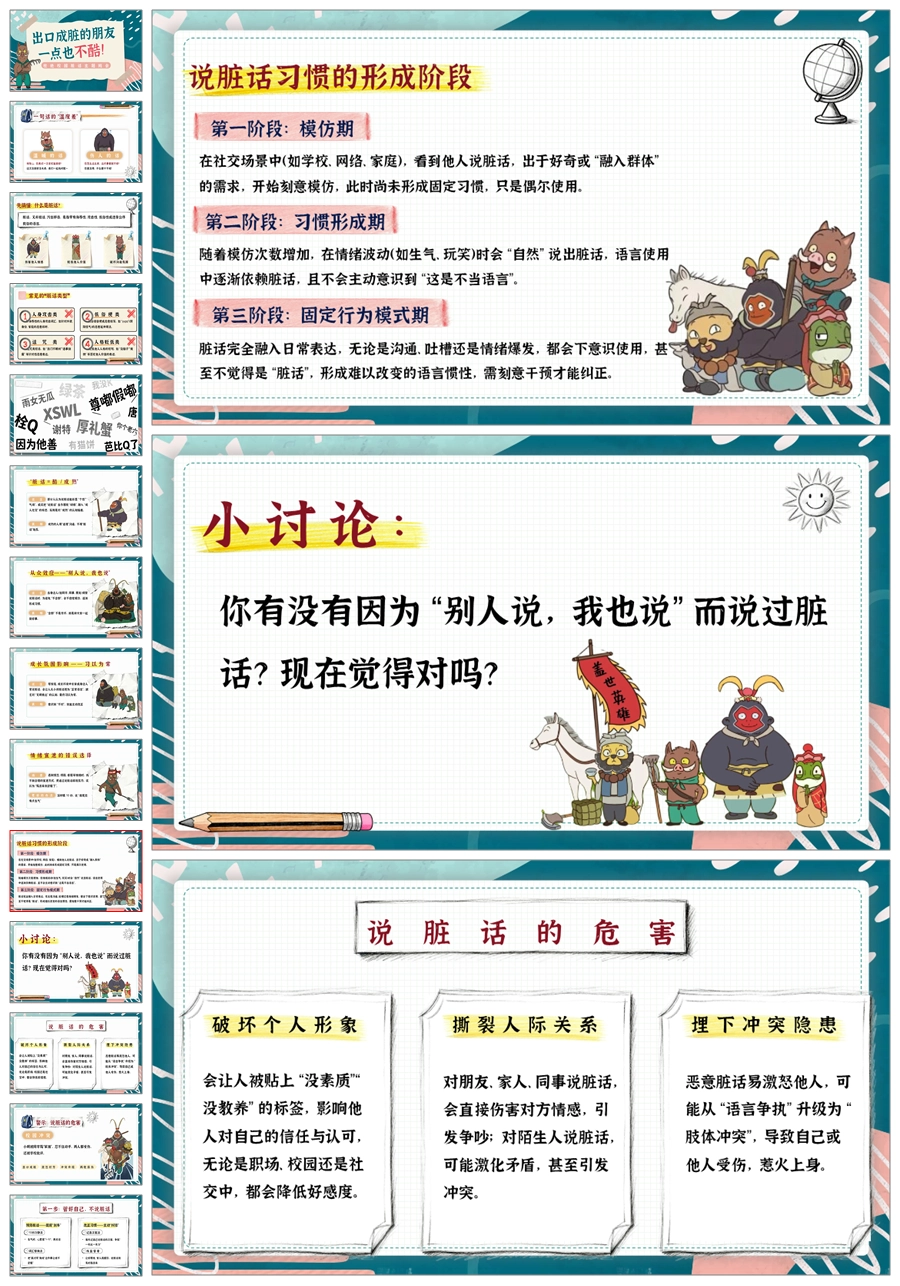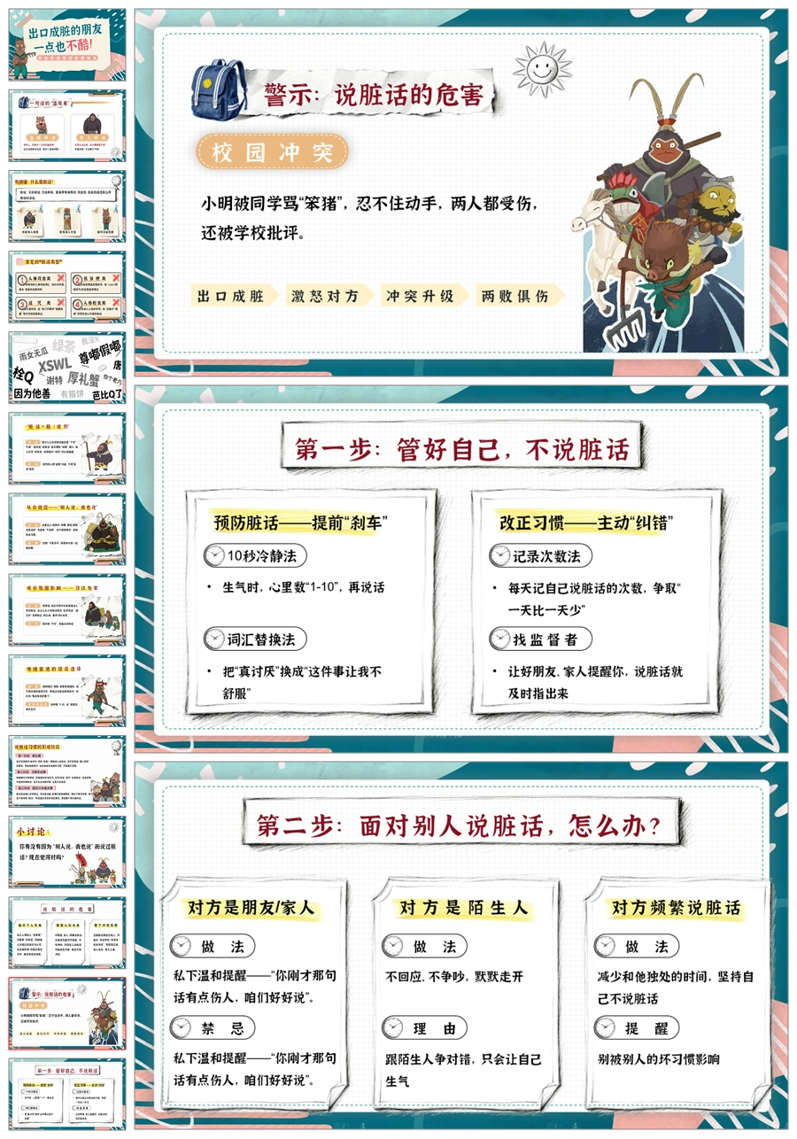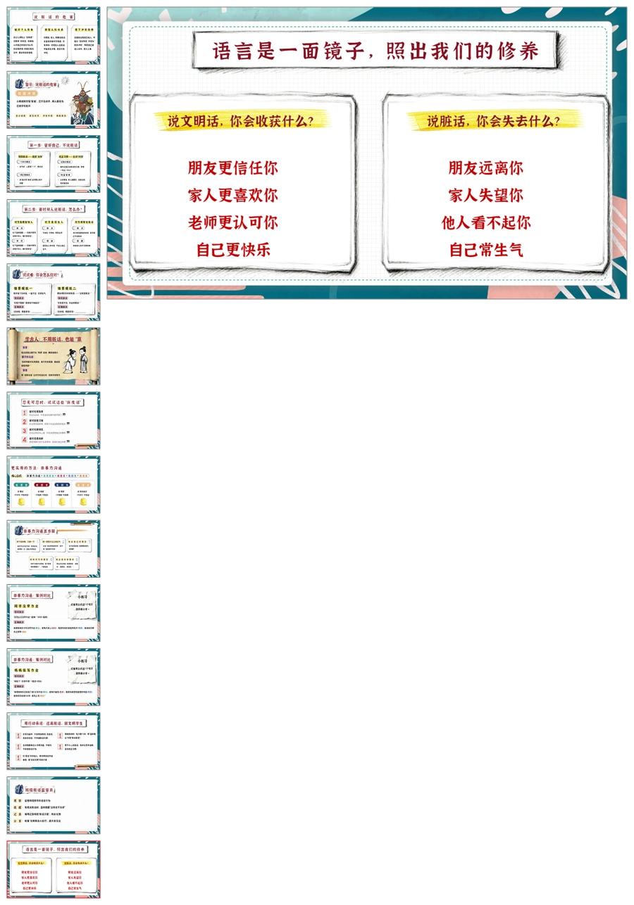 【5536】《不要说脏话“出口成脏”》主题班会PPT课件+教案+发言稿