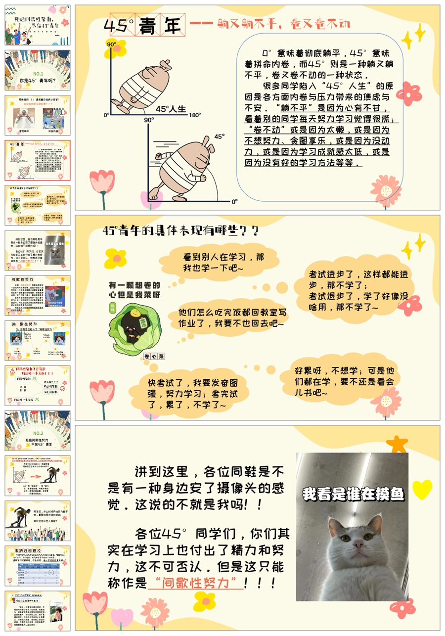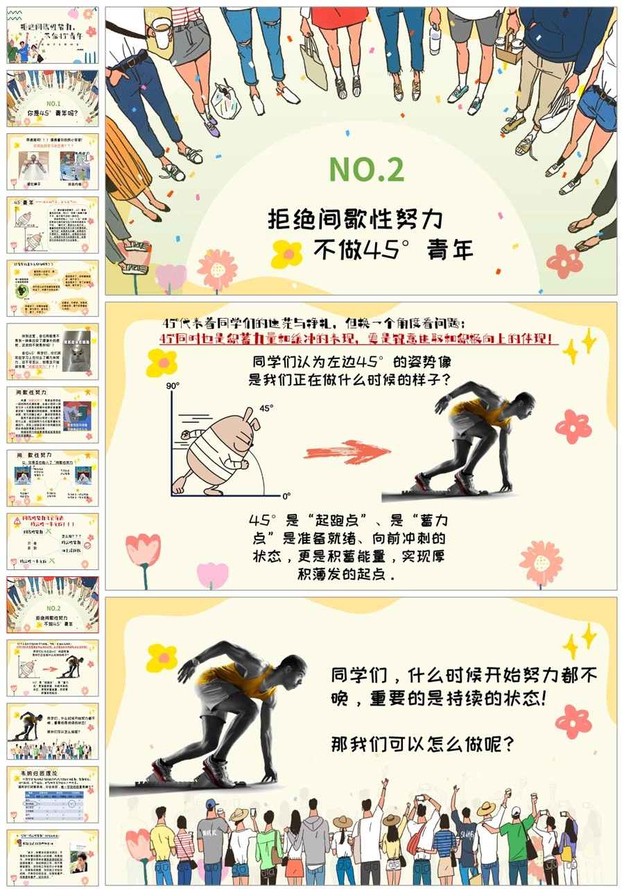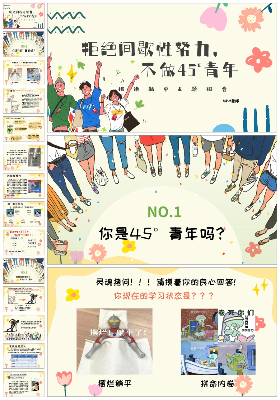 【5537】《不做45度青年班会》拒绝躺平主题班会PPT课件+教案+发言稿