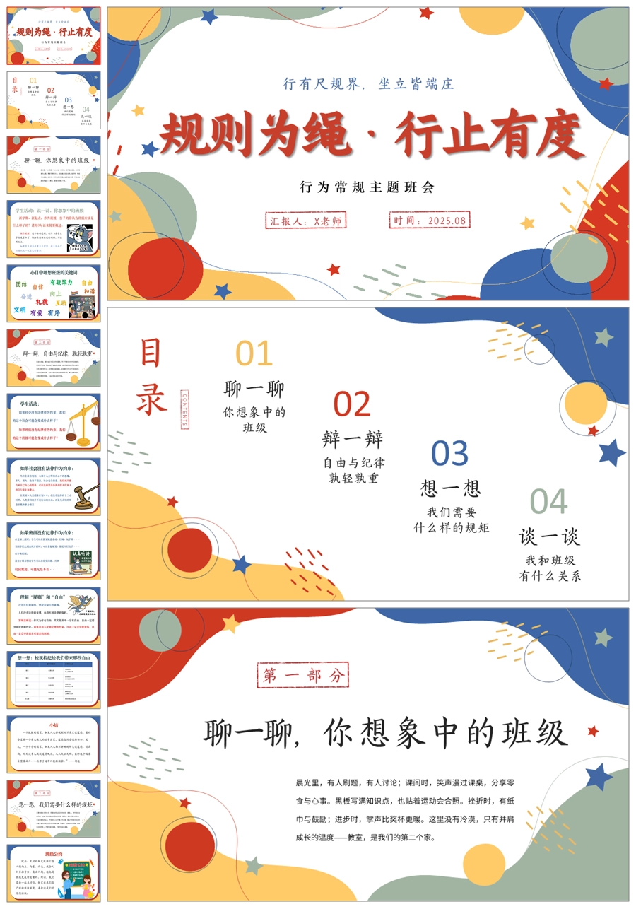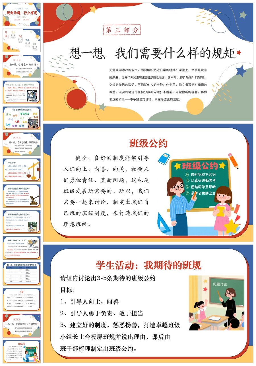 【5544】《规则为绳·行止有度》行为常规主题班会开学第一课PPT课件+教案