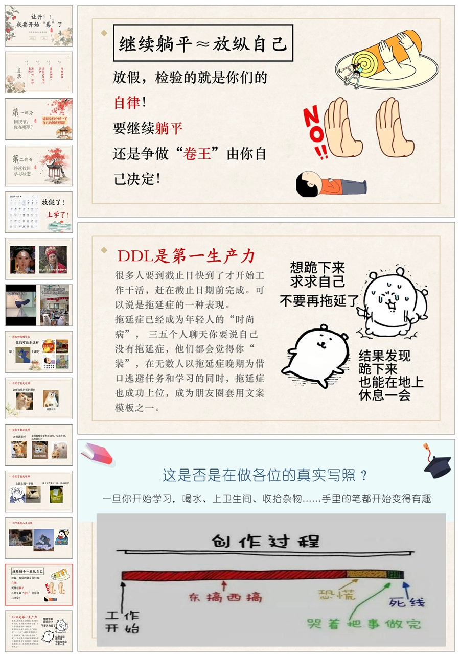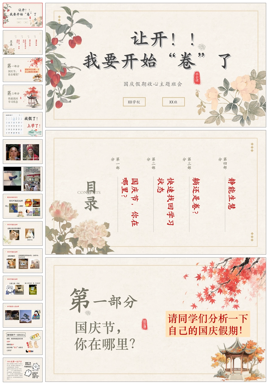 【5545】《国庆收心·让开!我要开始“卷”了》主题班会PPT课件+发言稿