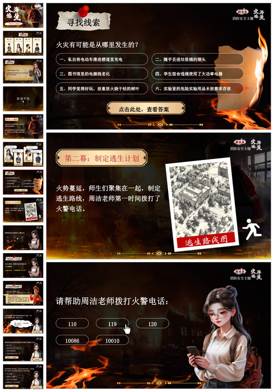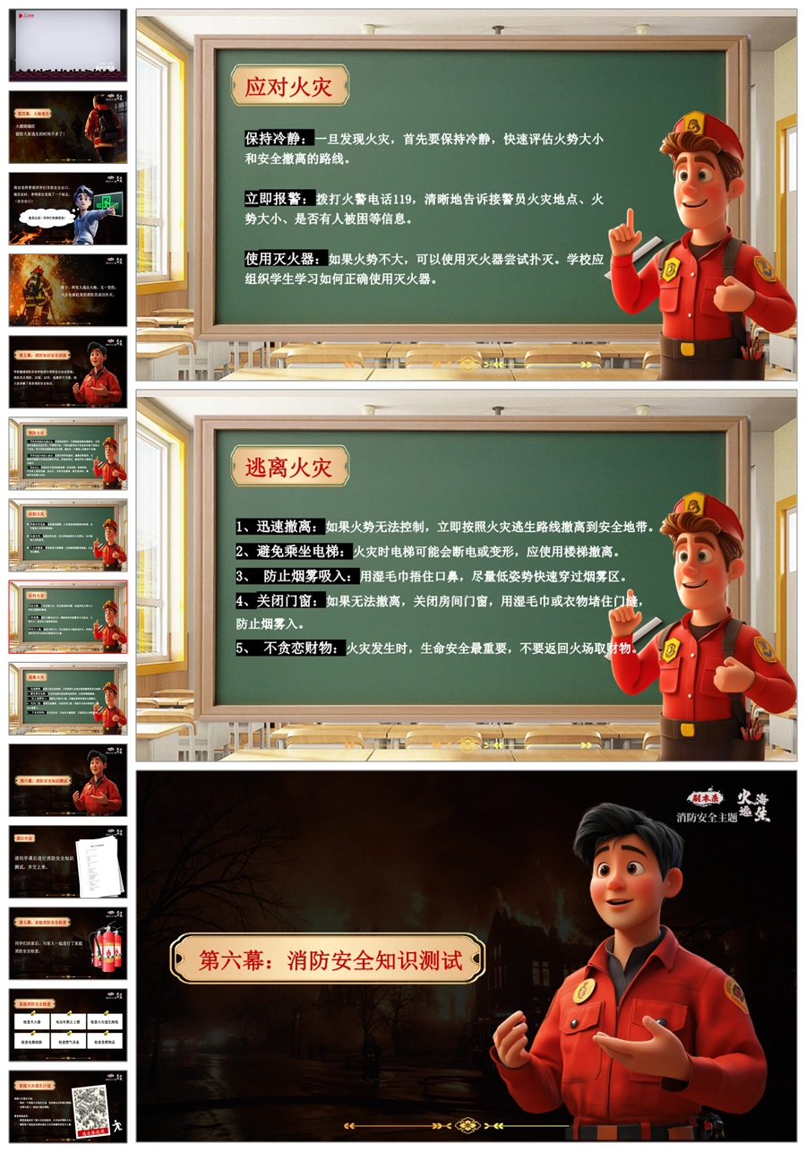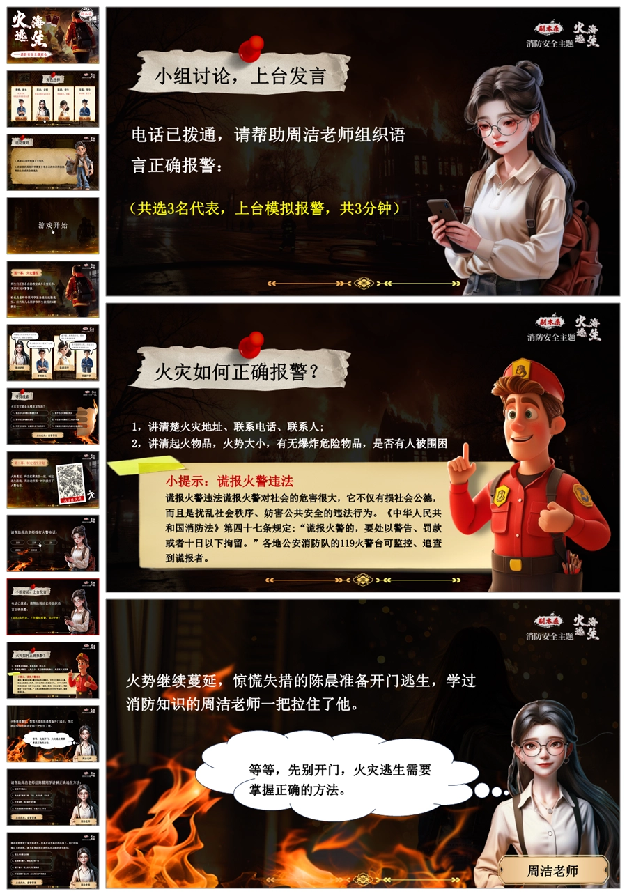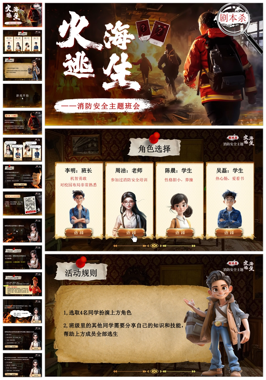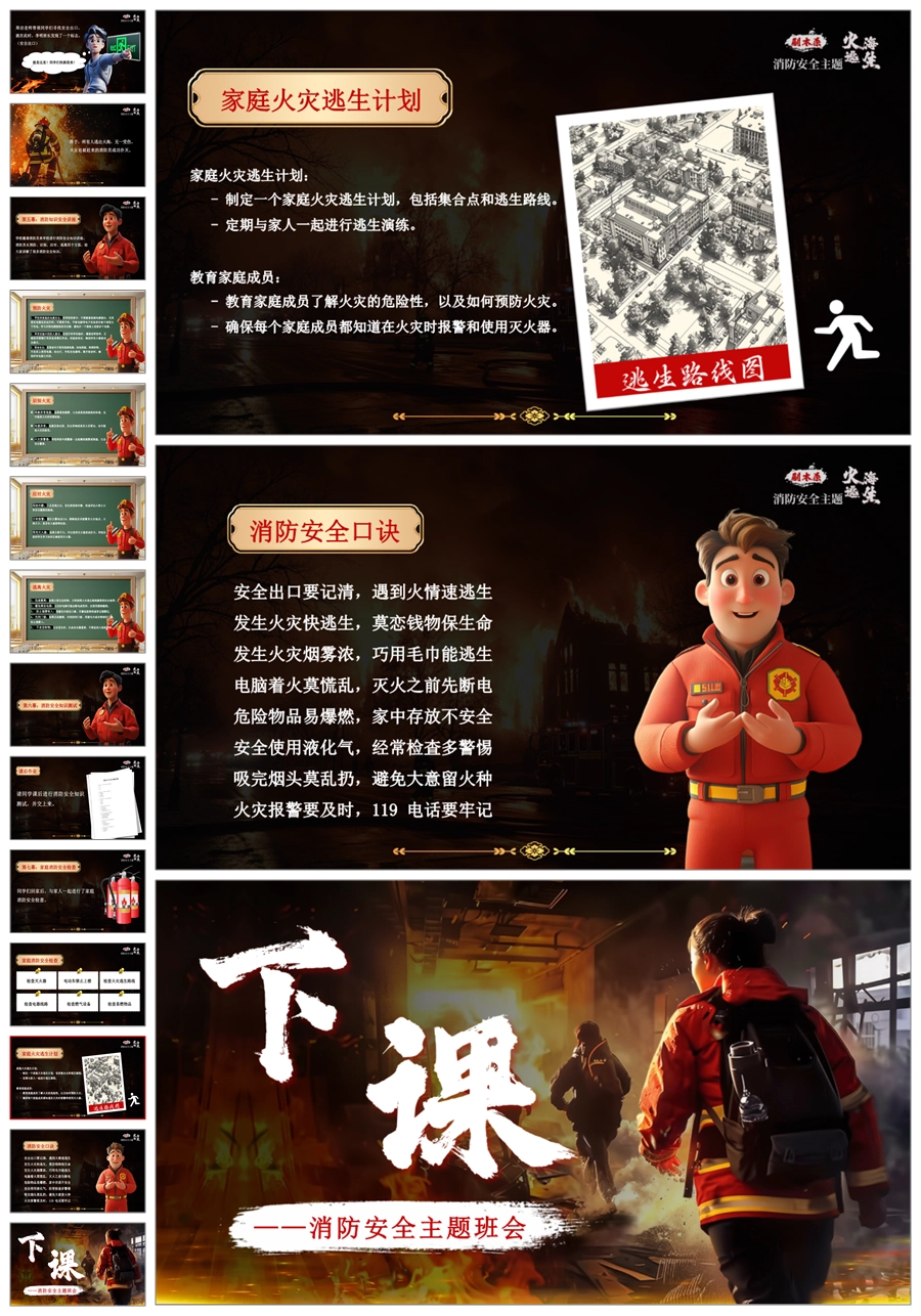 【5547】《火海逃生》消防安全主题班会PPT课件+教案+逐字稿