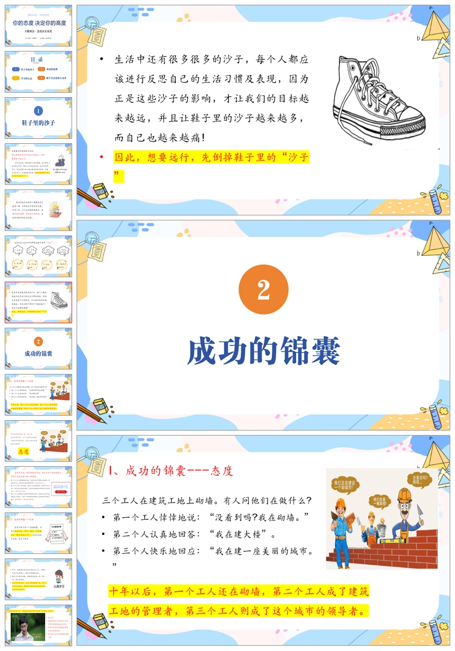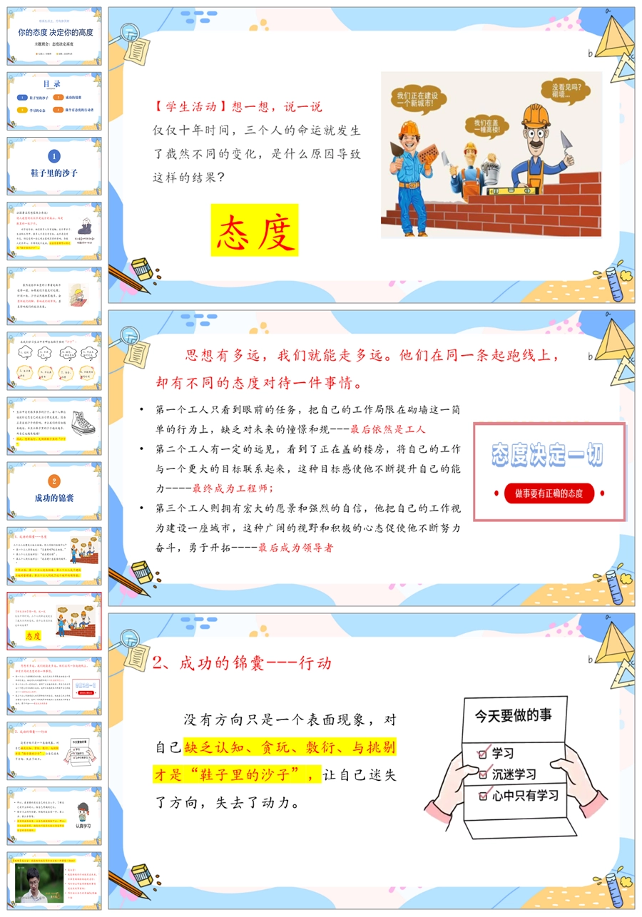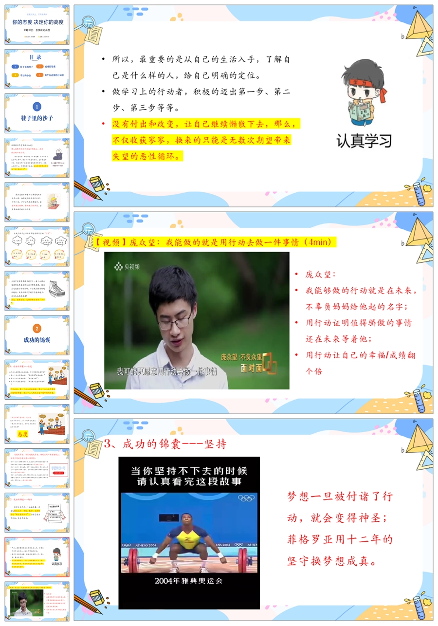 【5557】《你的态度决定你的高度》励志主题班会PPT课件+视频+逐字稿