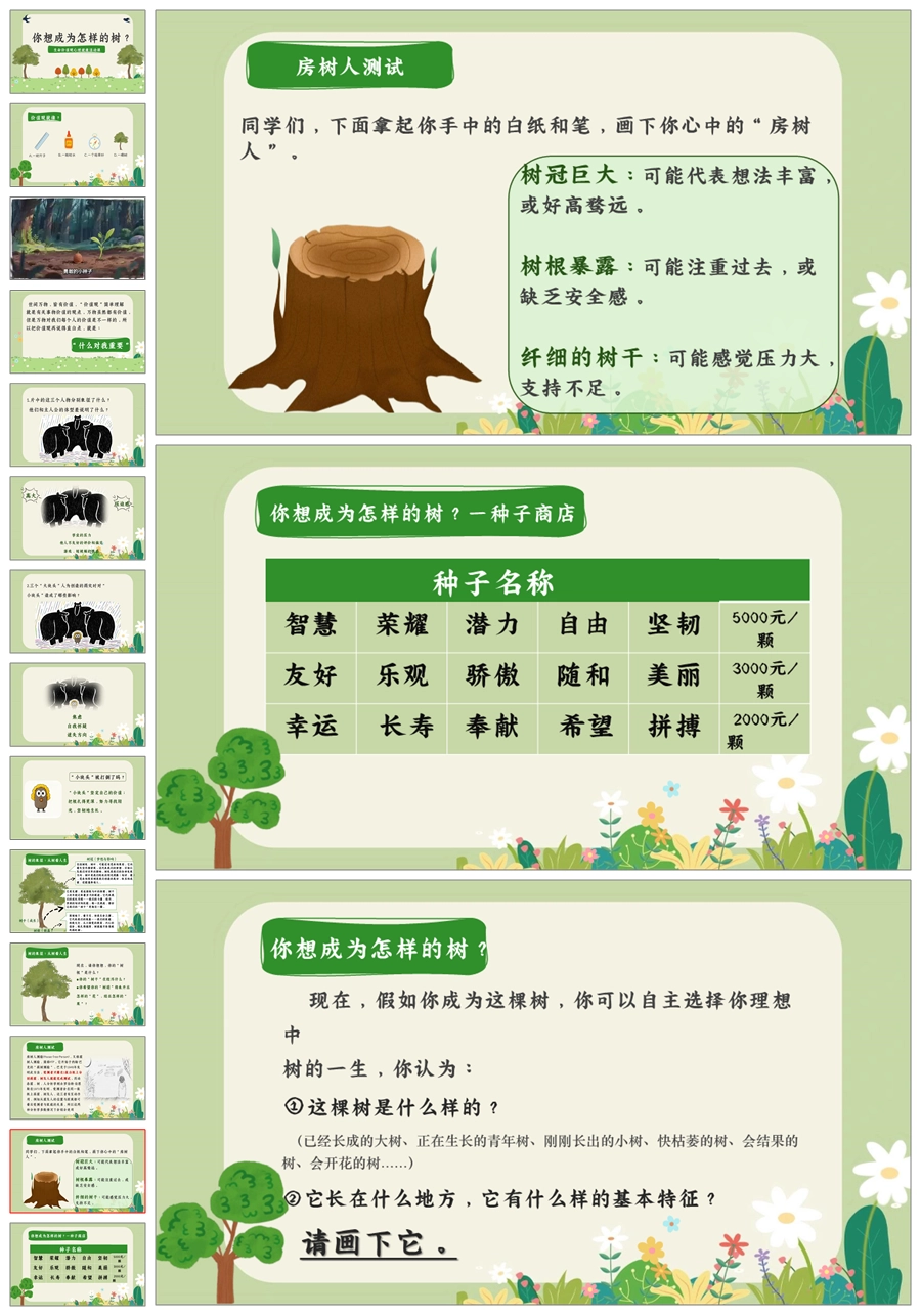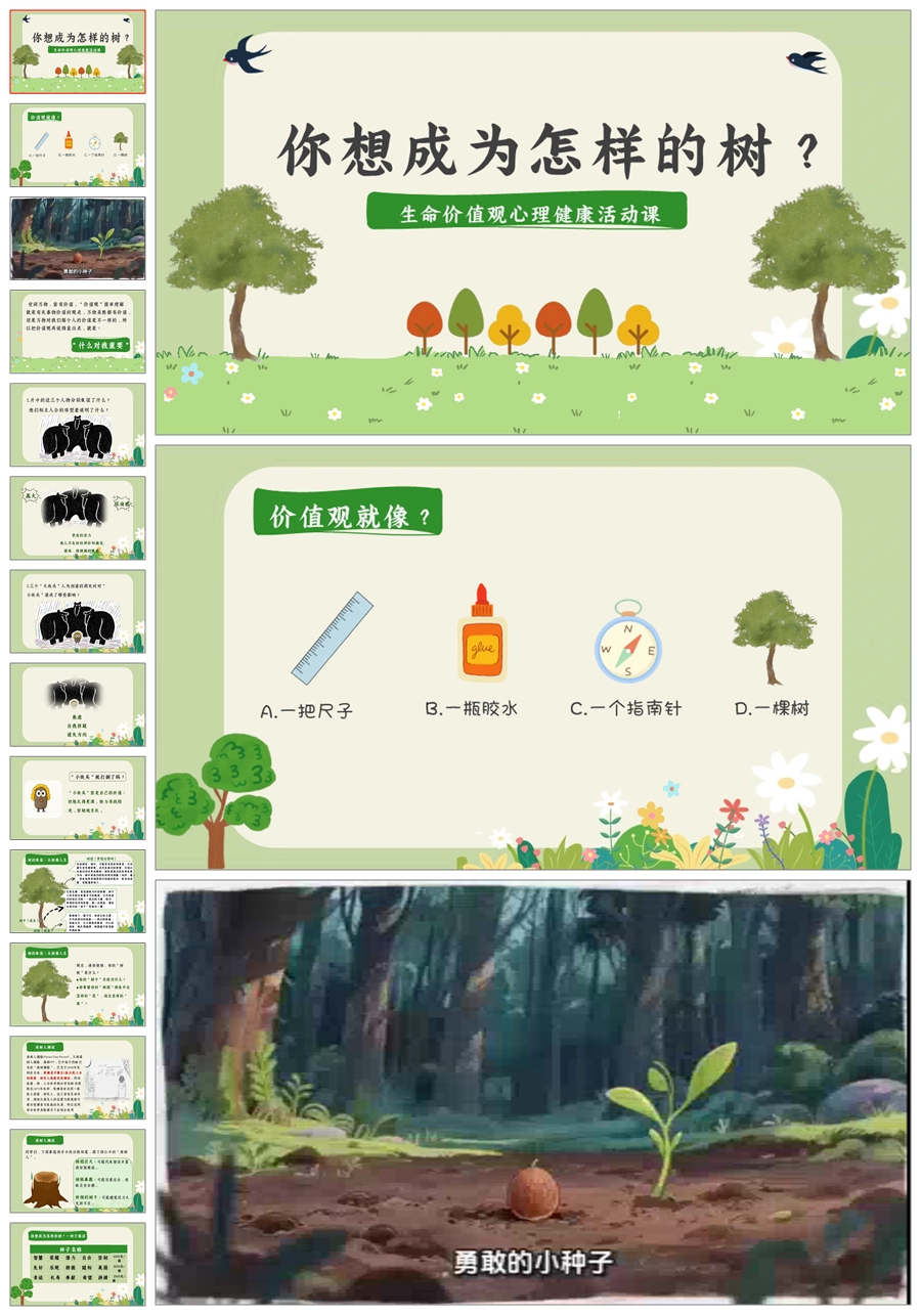 【5558】《你想成为怎样的树》生命价值观心理健康活动课PPT课件+教案+发言稿