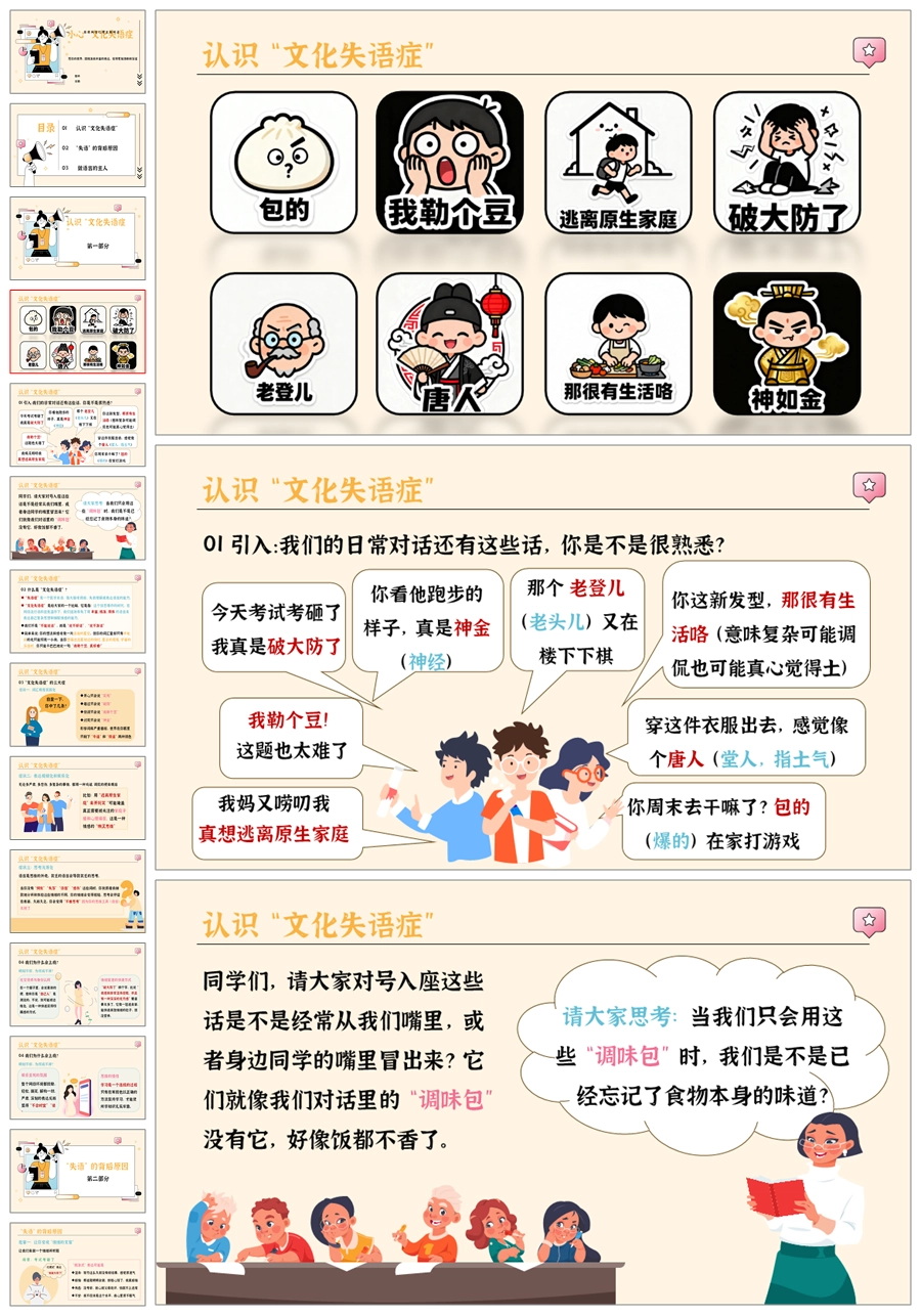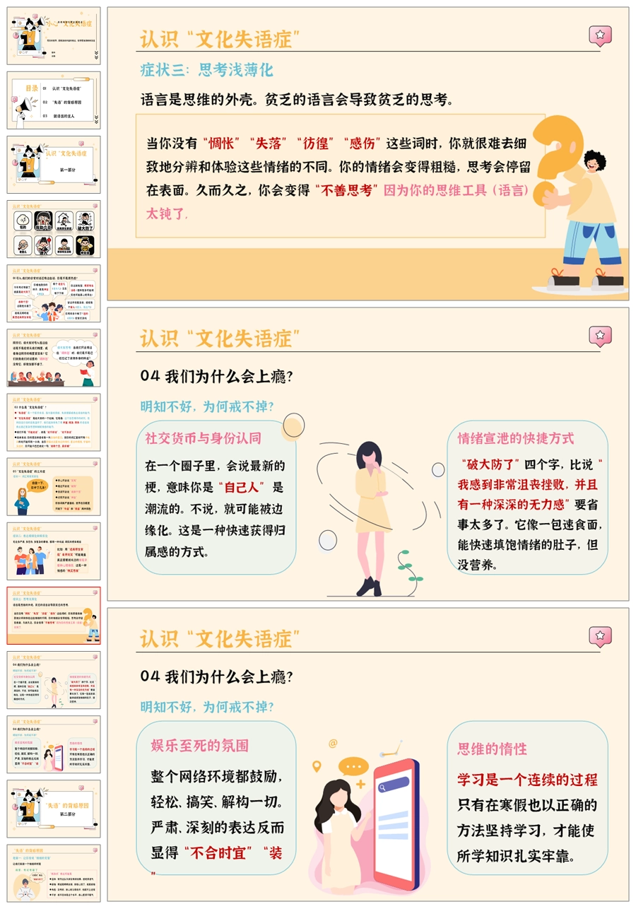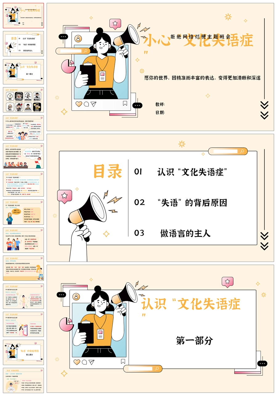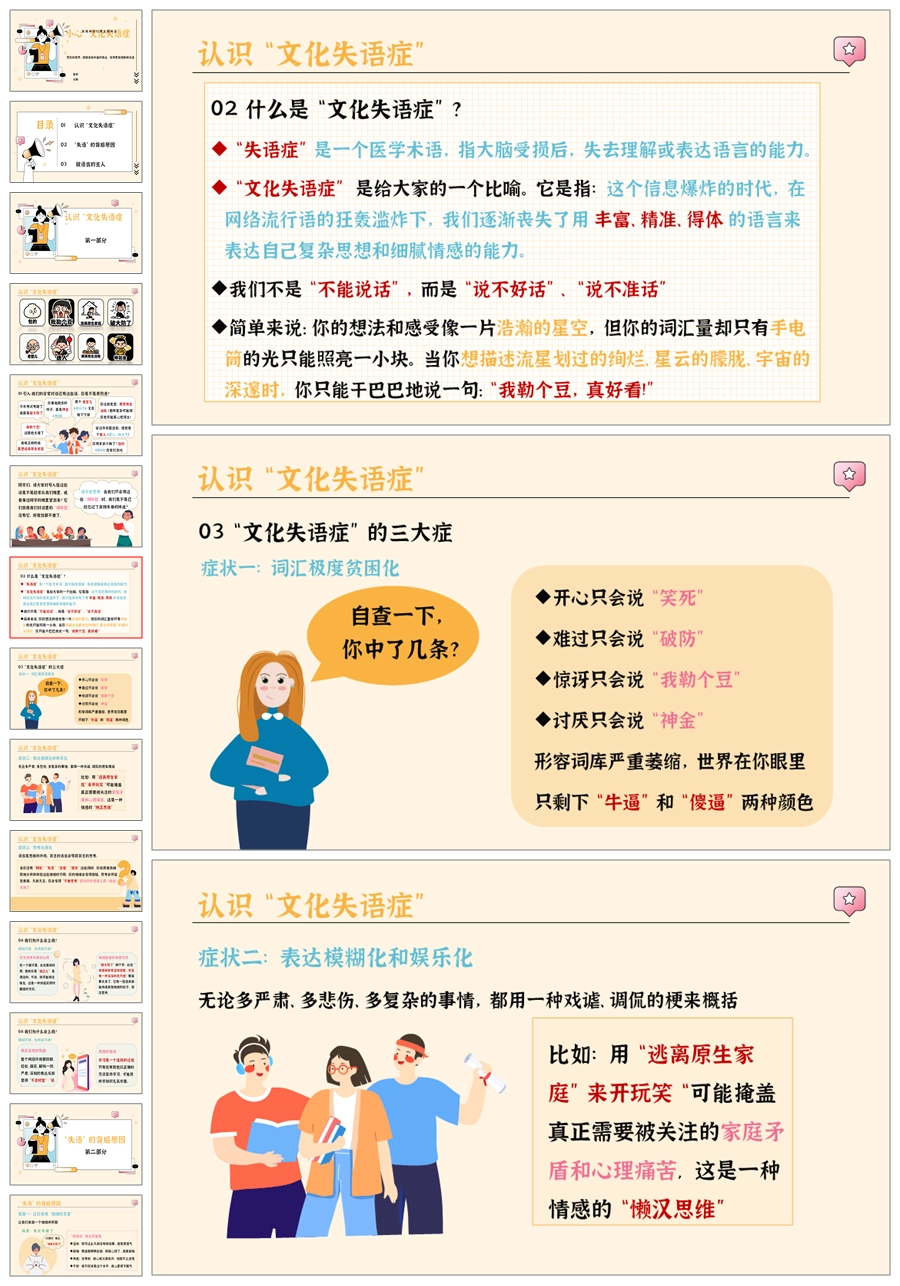 【5566】《小心,“文化失语症”》拒绝网络烂梗主题班会ppt课件+教案