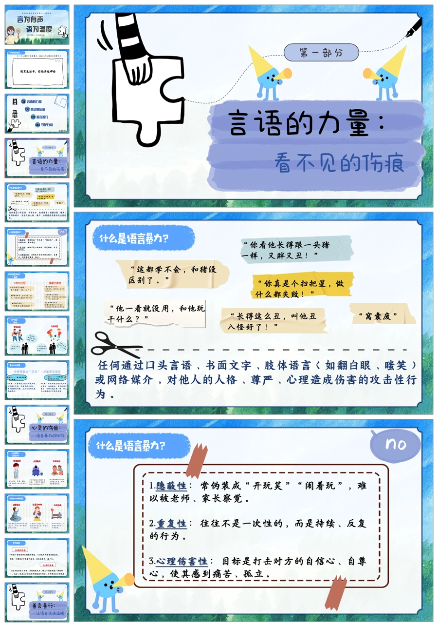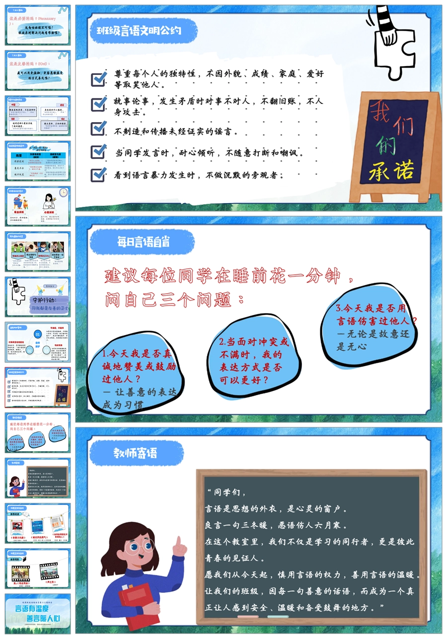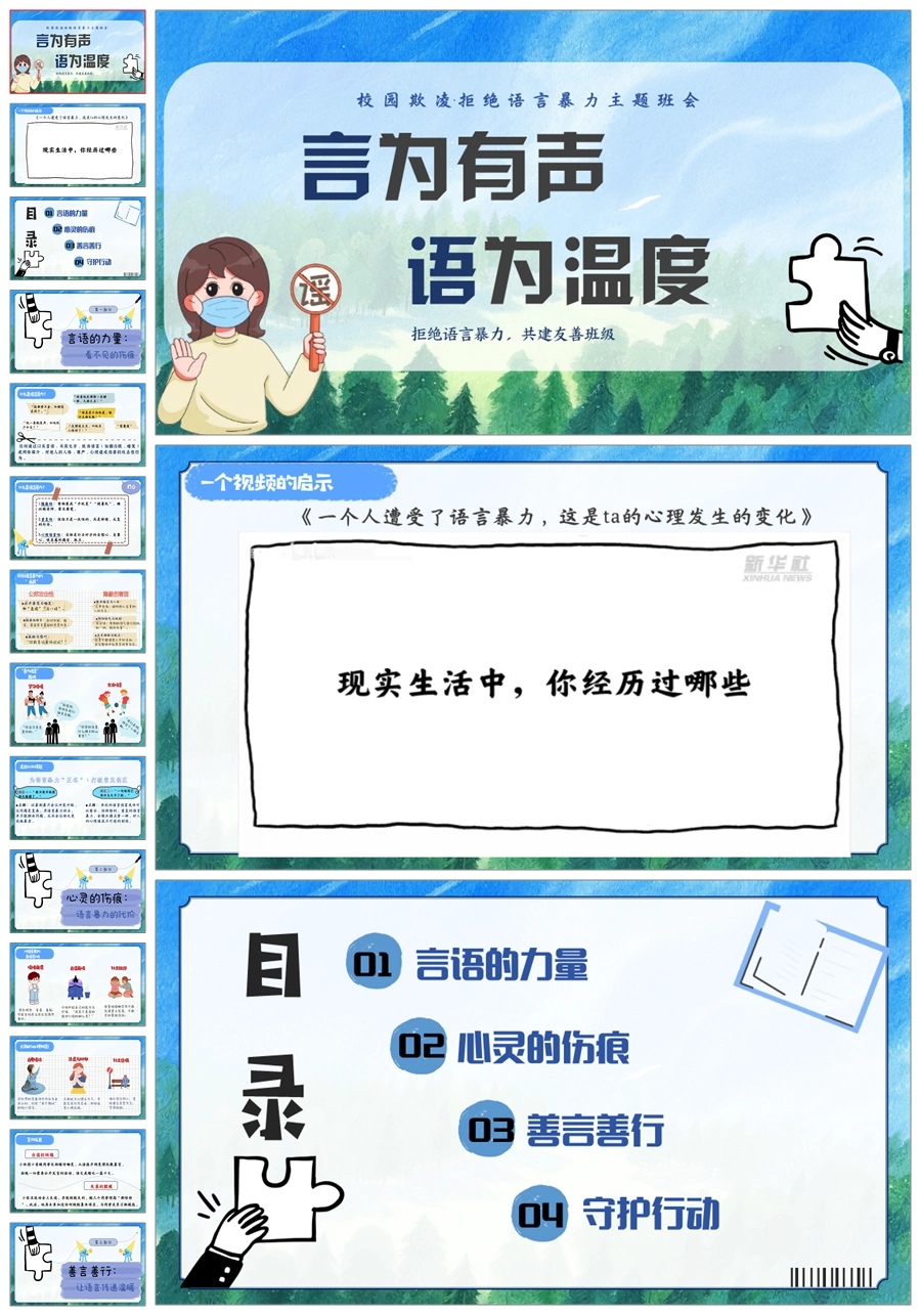 【5570】《言为有声,语为温度》拒绝语言暴力主题班会PPT课件+教案+发言稿
