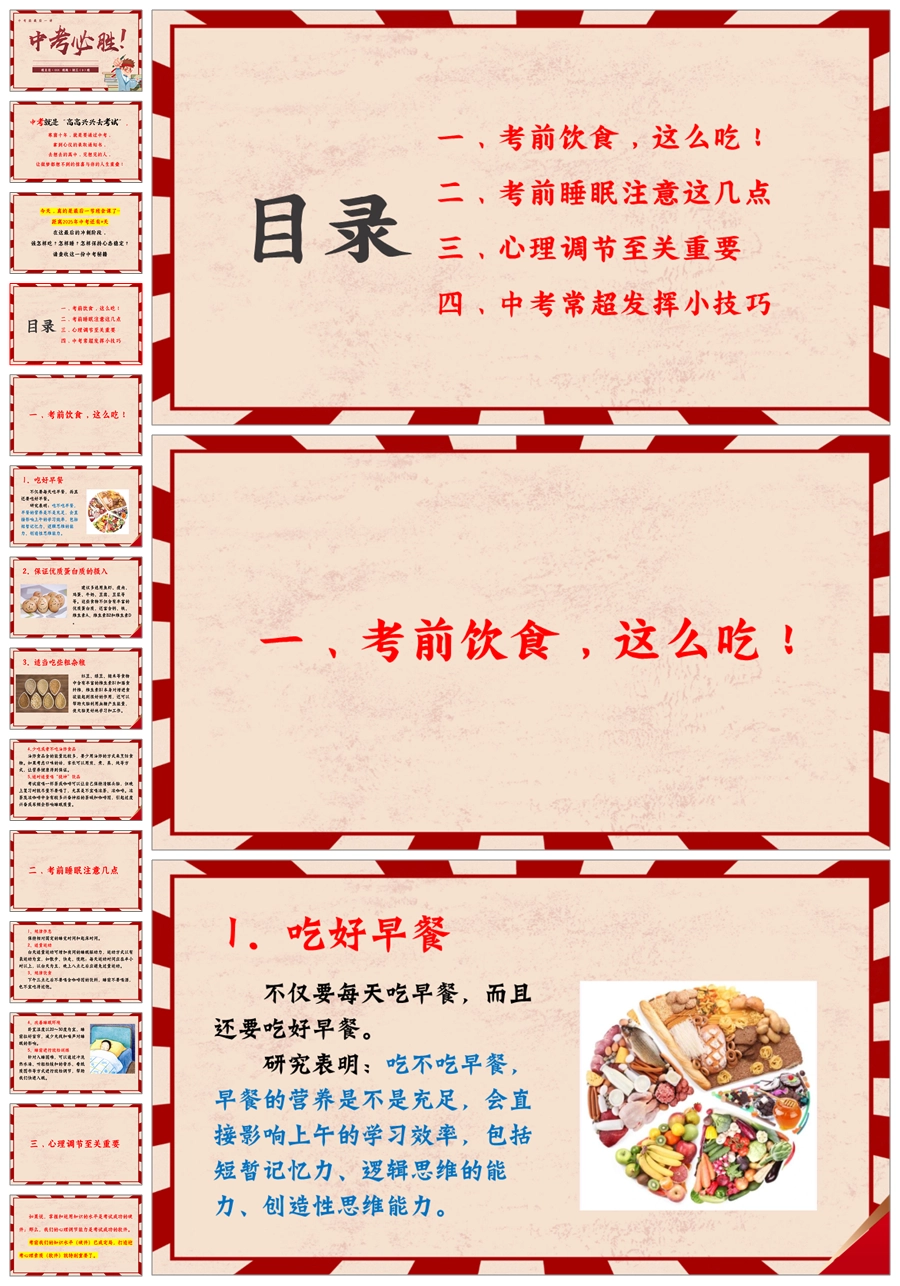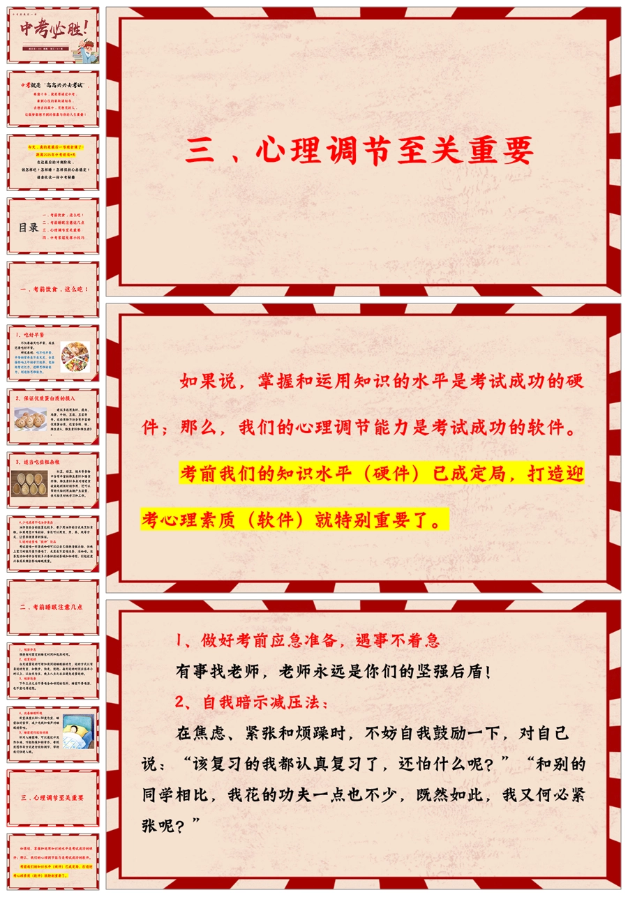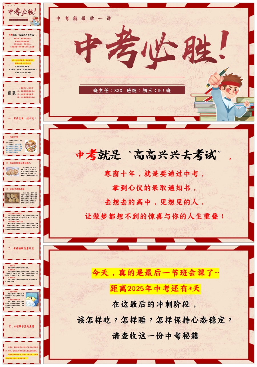 【5578】《中考必胜》中考前最后一讲中考最后一节班会课PPT课件+发言稿