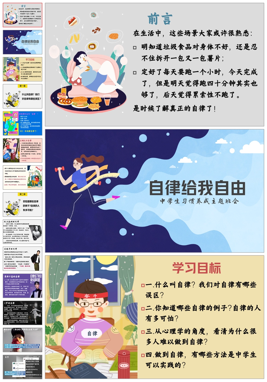 【5581】《自律给我自由》中学生习惯养成主题班会PPT课件+教案+视频