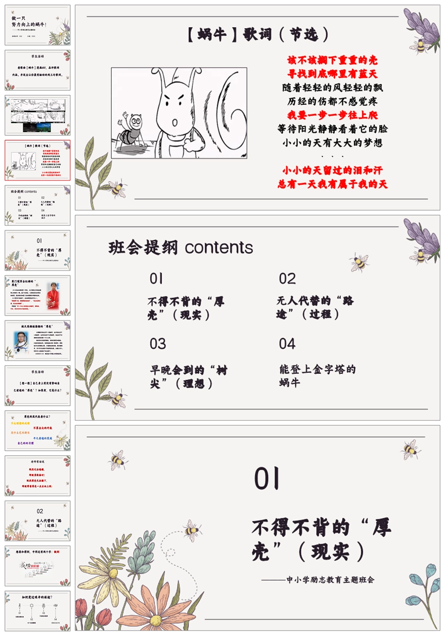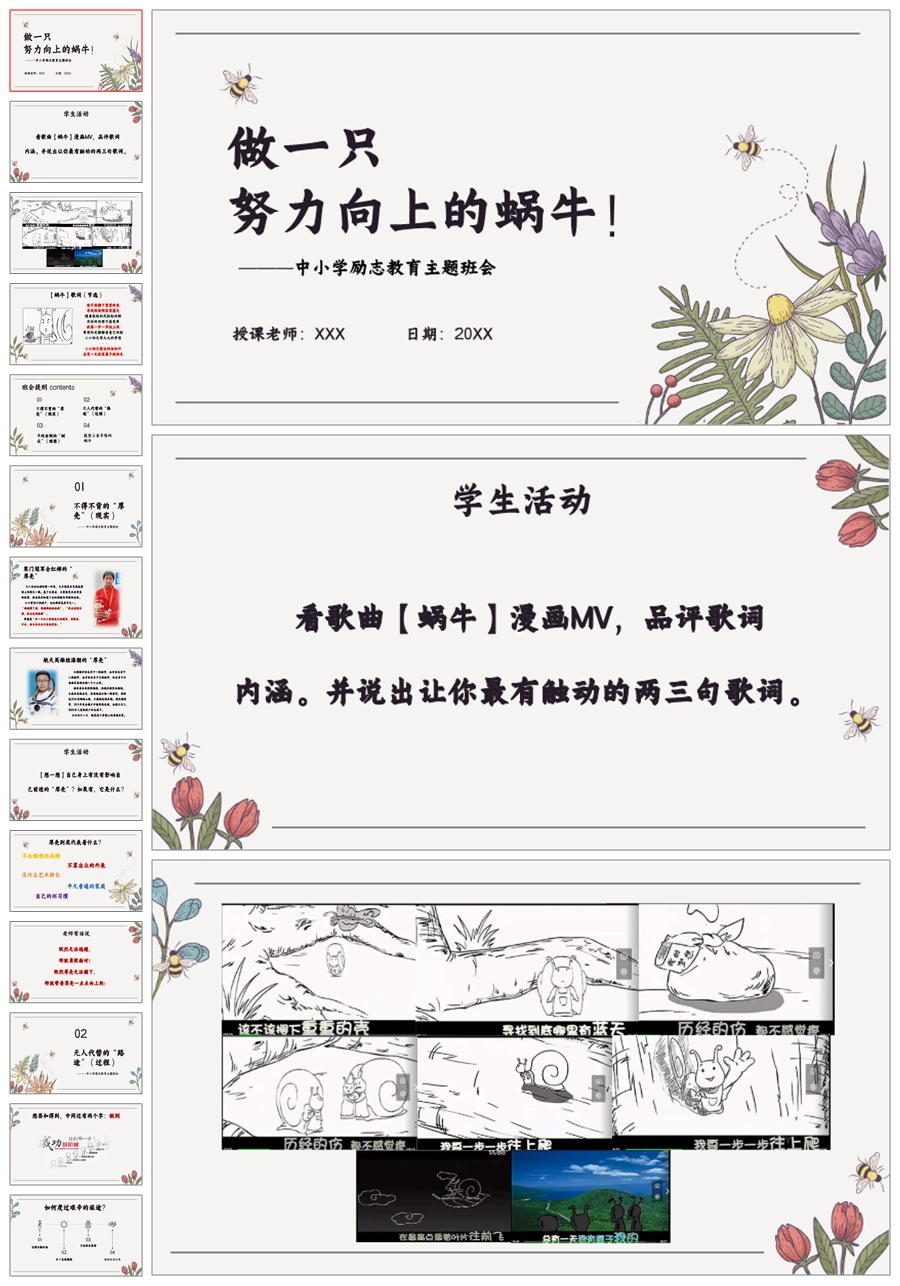 【5586】《做一只努力向上的蜗牛》励志主题班会PPT课件+视频+教案
