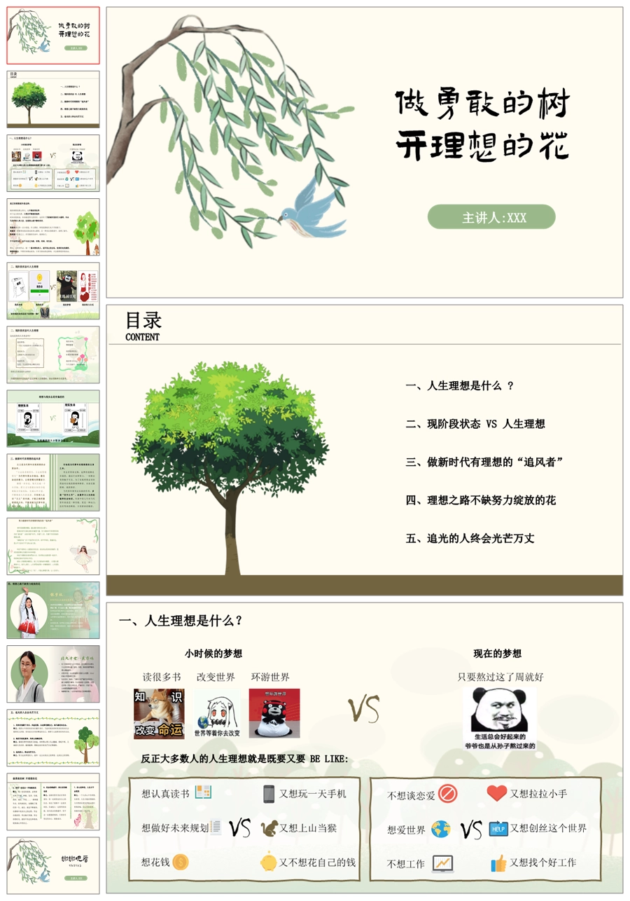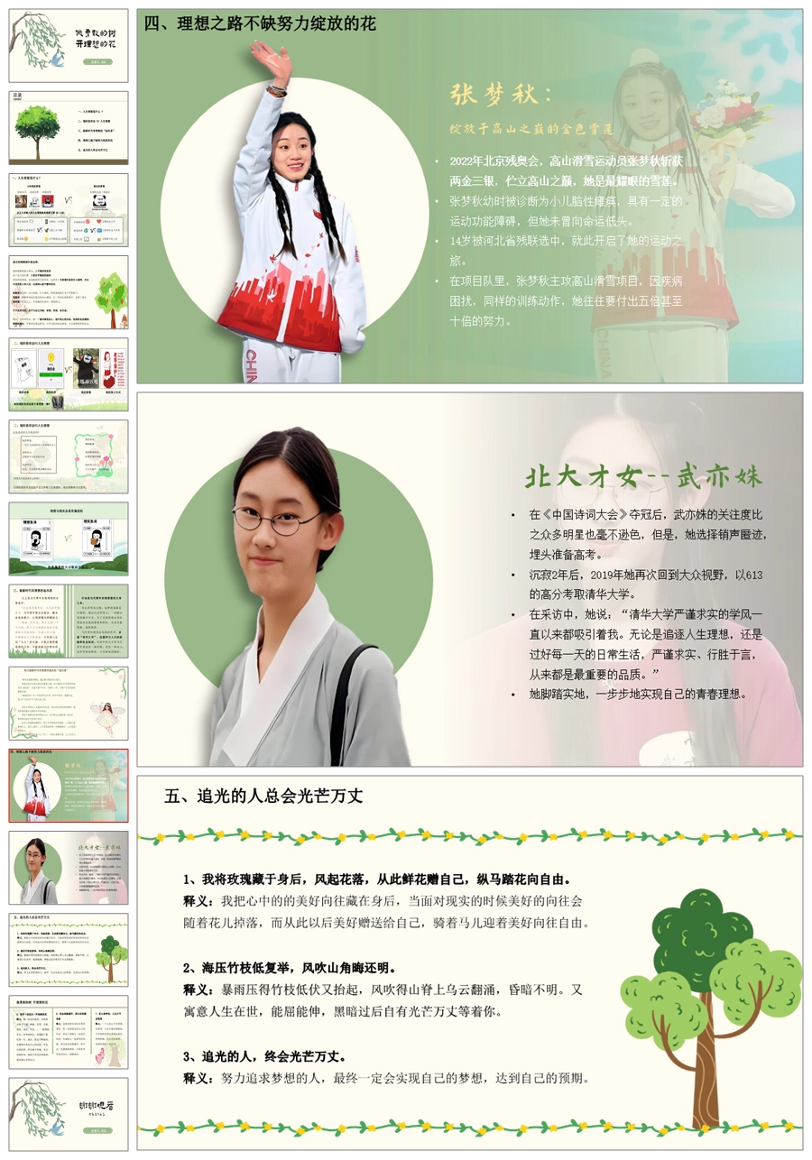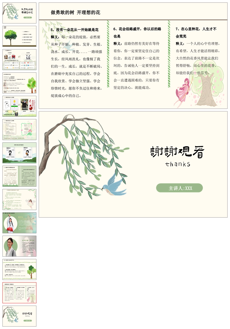 【5587】《做勇敢的树开理想的花》励志演讲PPT课件+发言稿
