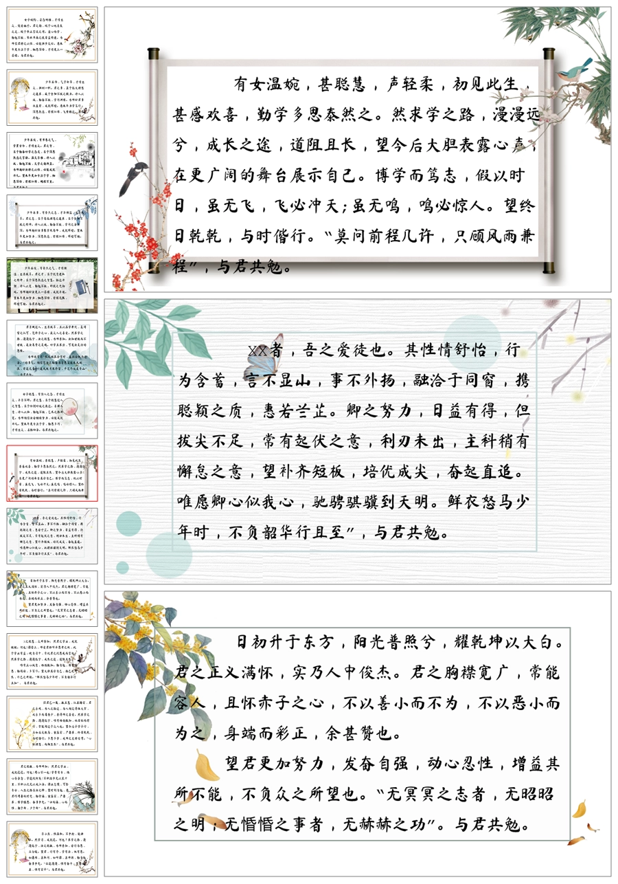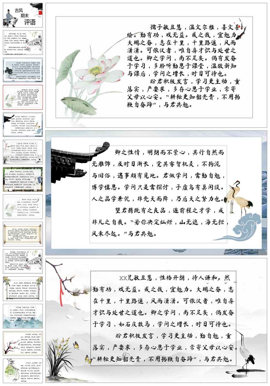 首页 班级管理 【1017】期末古风学生评语古风评语