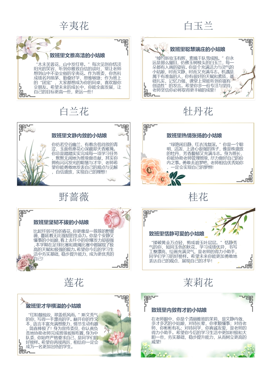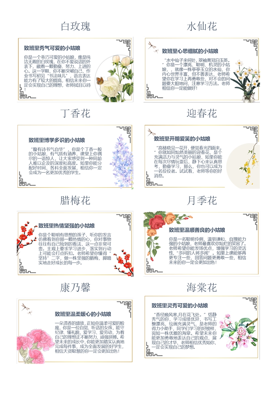 【1018】期末学生评语 以花为喻+致少年