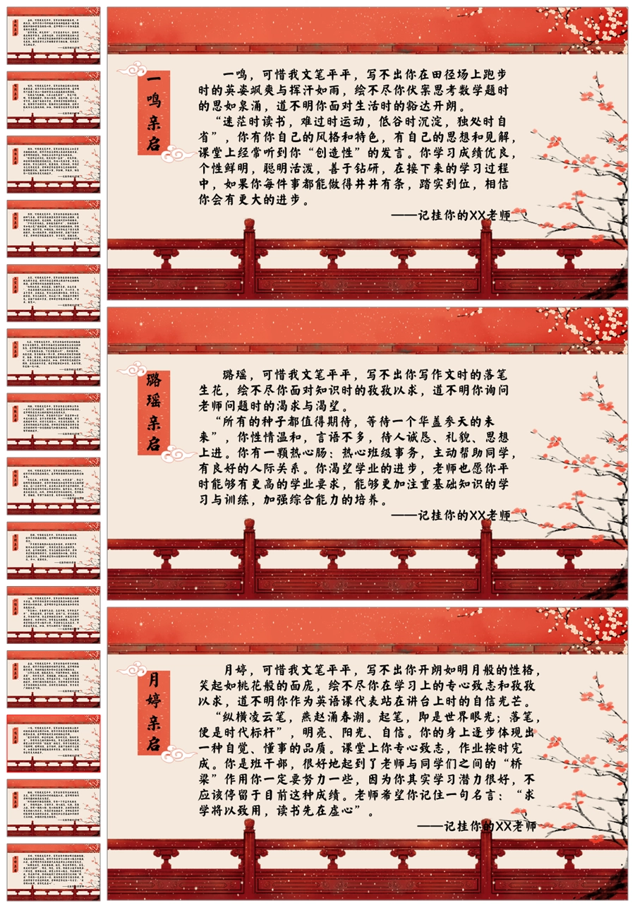 【1022】期末学生评语【期末评语4】可惜我文笔平平