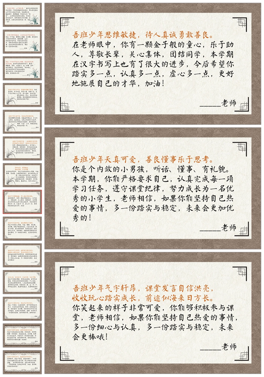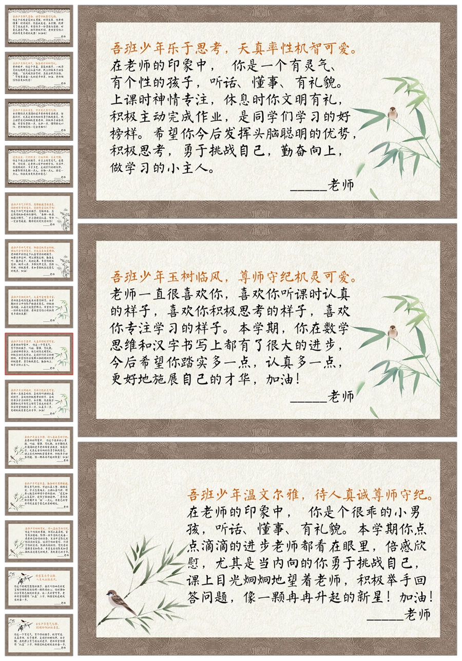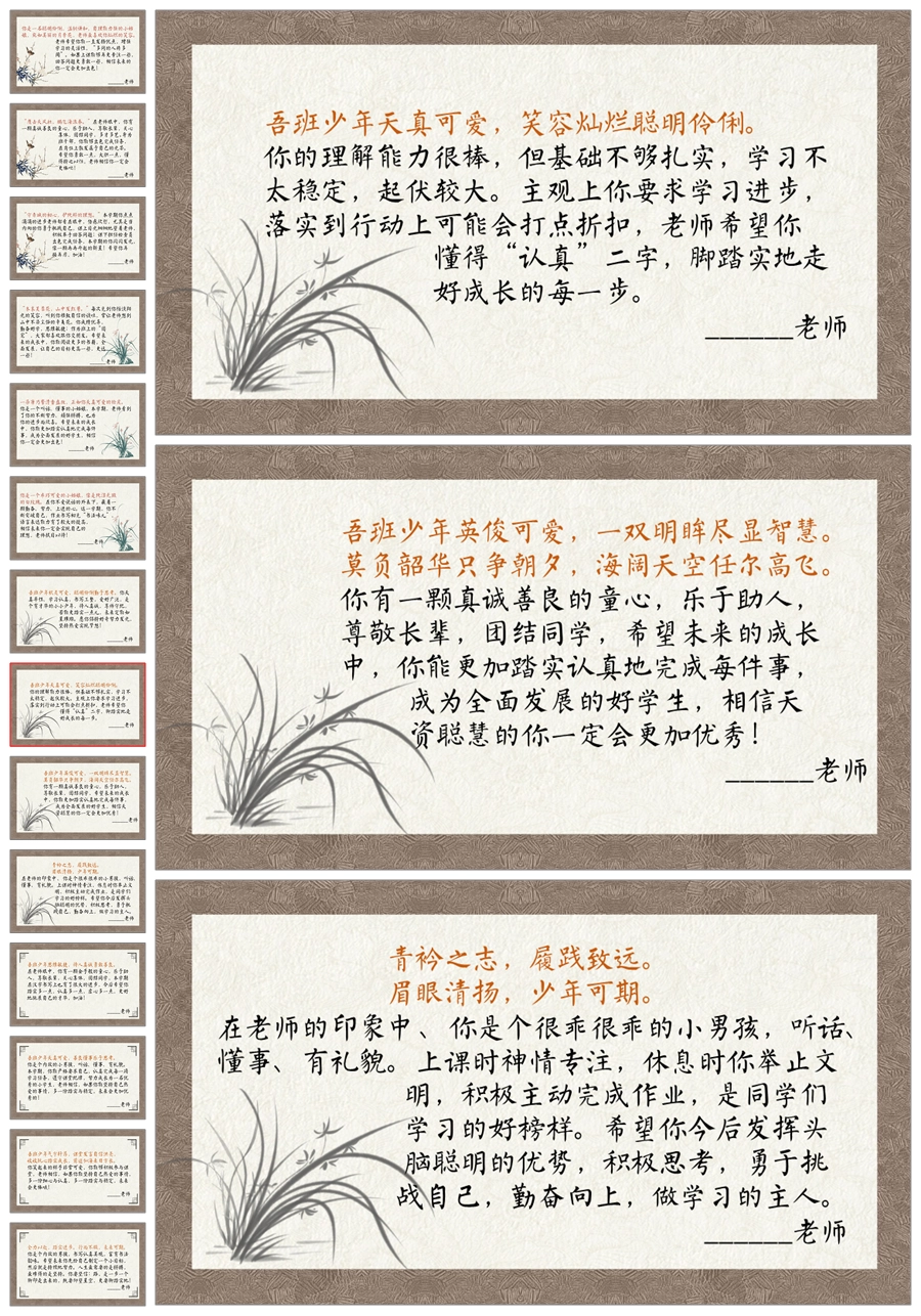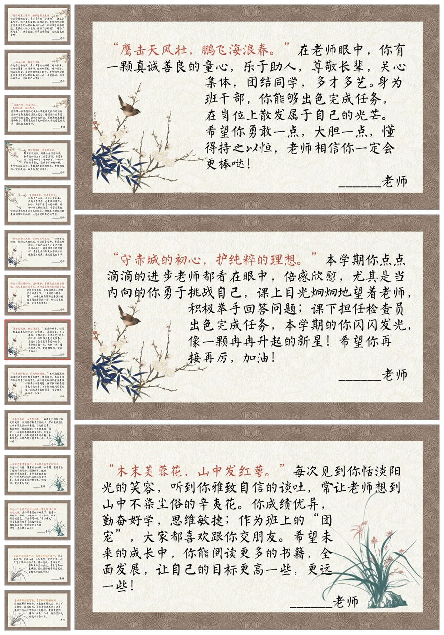 首页 班级管理 【1023】期末学生评语古风期末评语(50份)