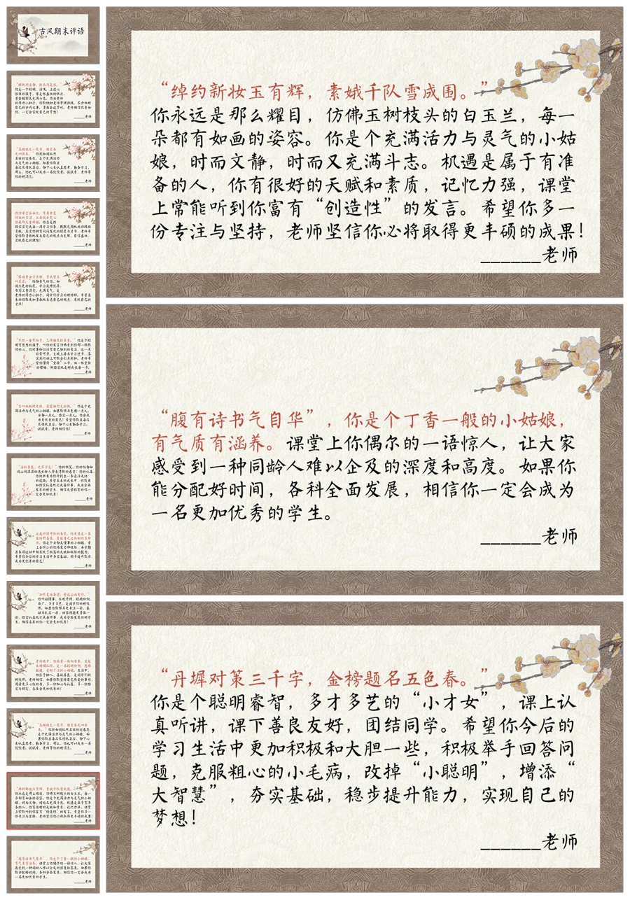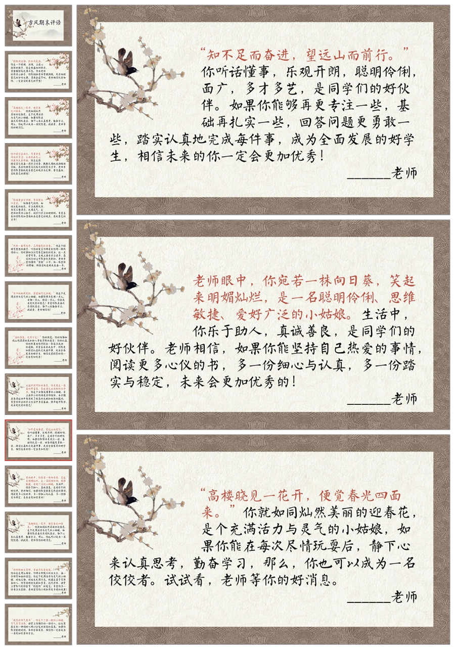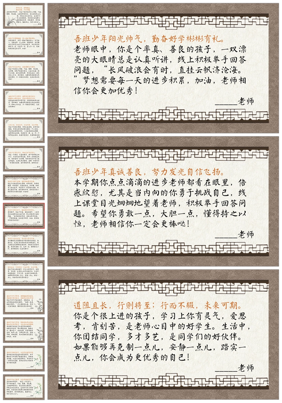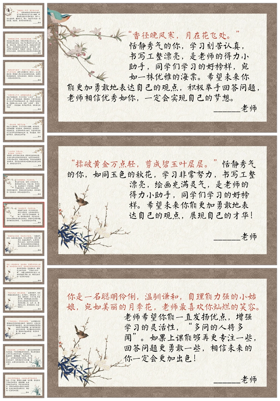 首页 班级管理 【1023】期末学生评语古风期末评语(50份)