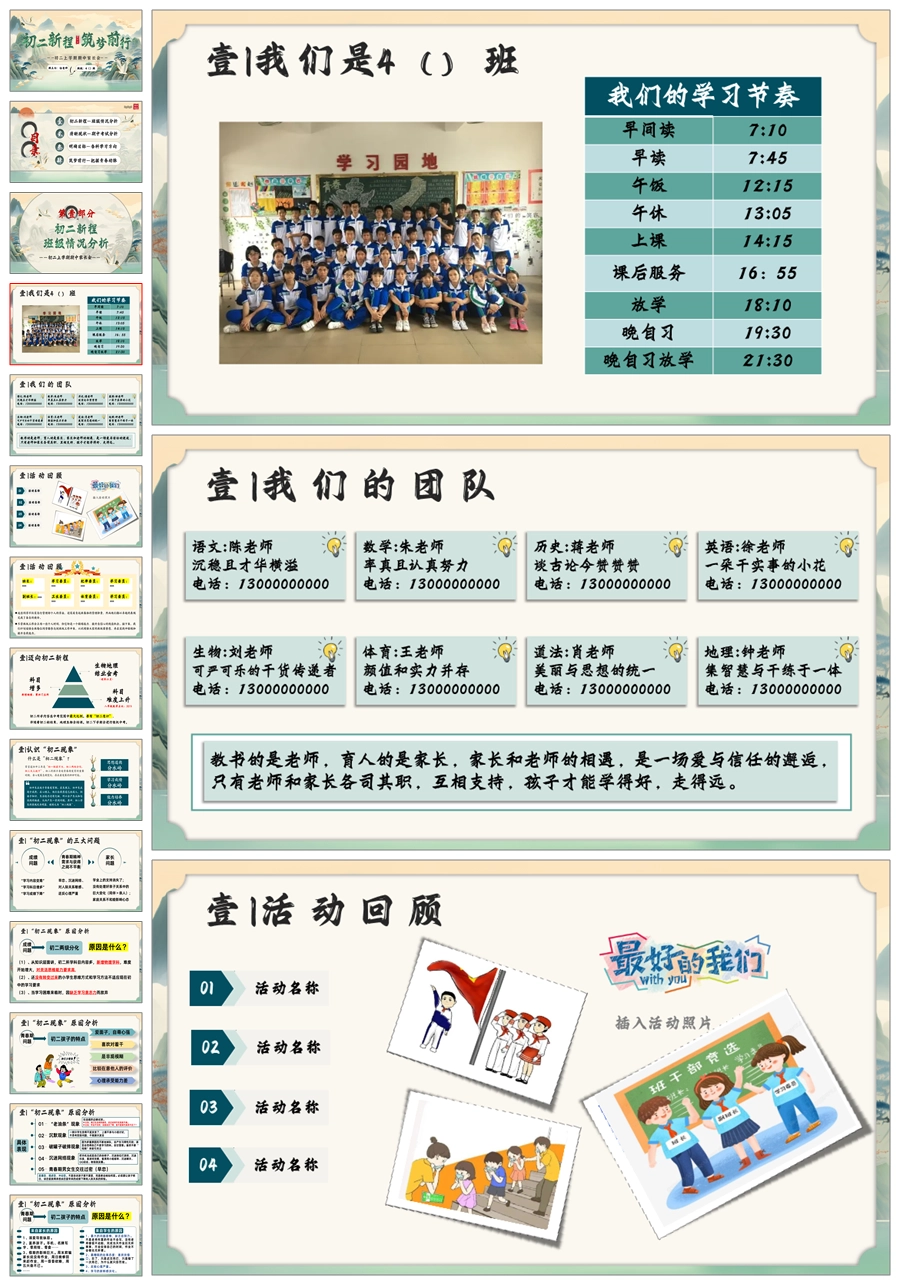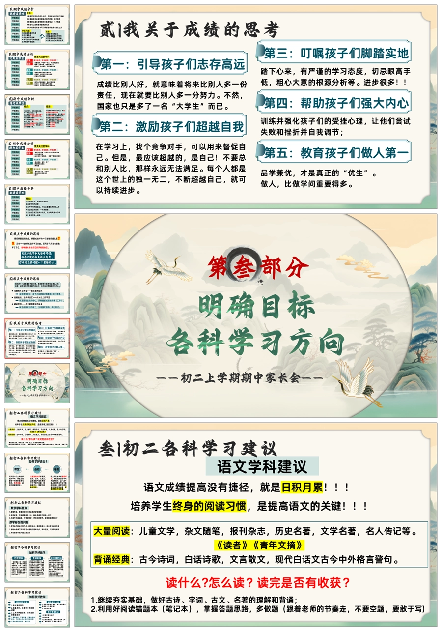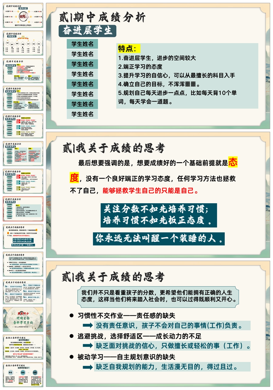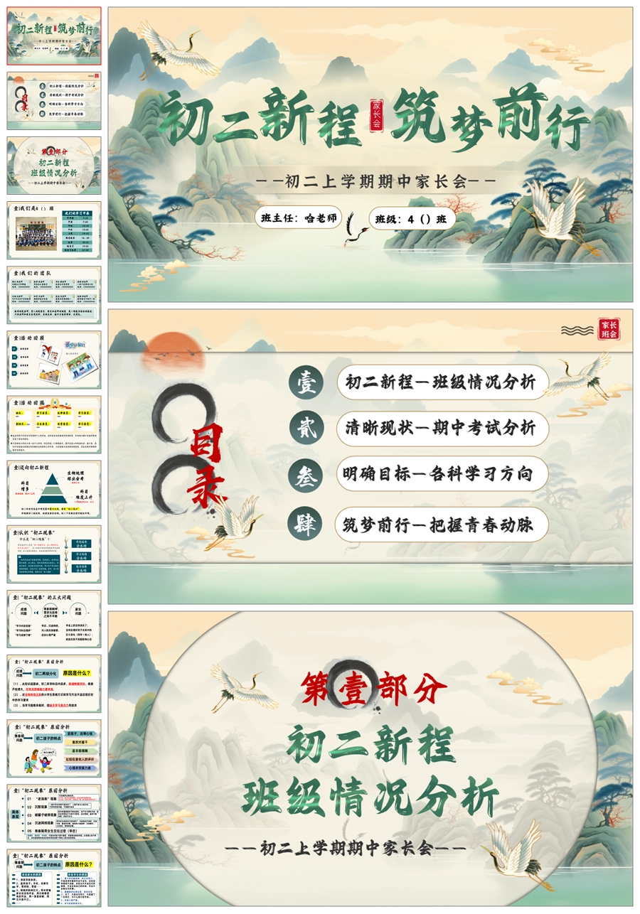 【5641】初二上期中家长会《新程筑梦前行》八年级上学期期中家长会ppt课件+发言稿