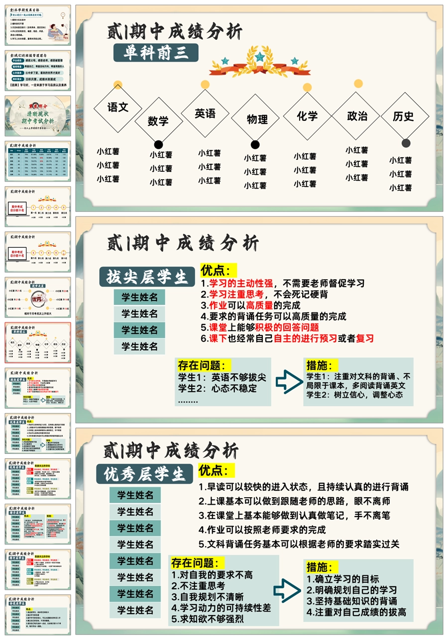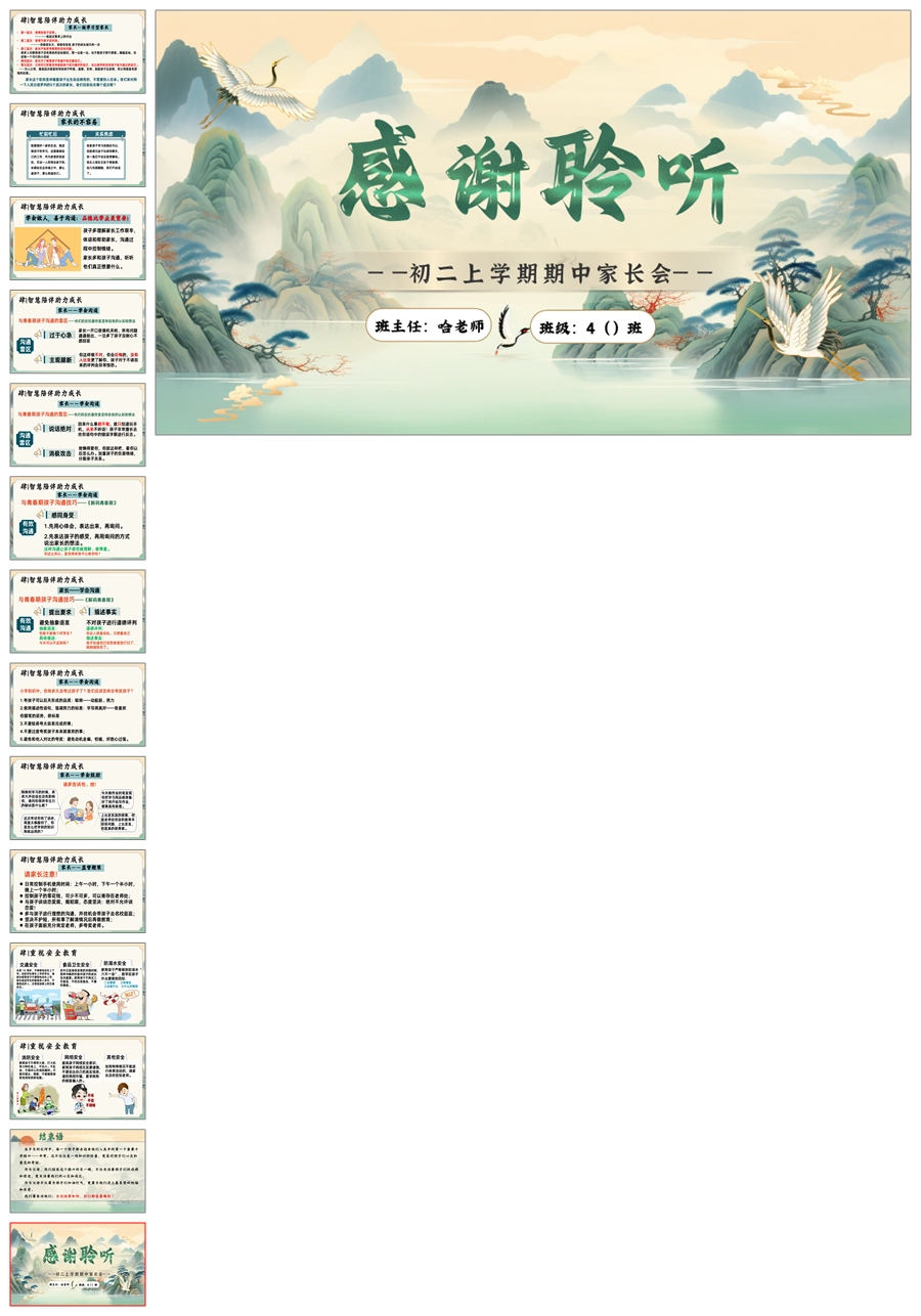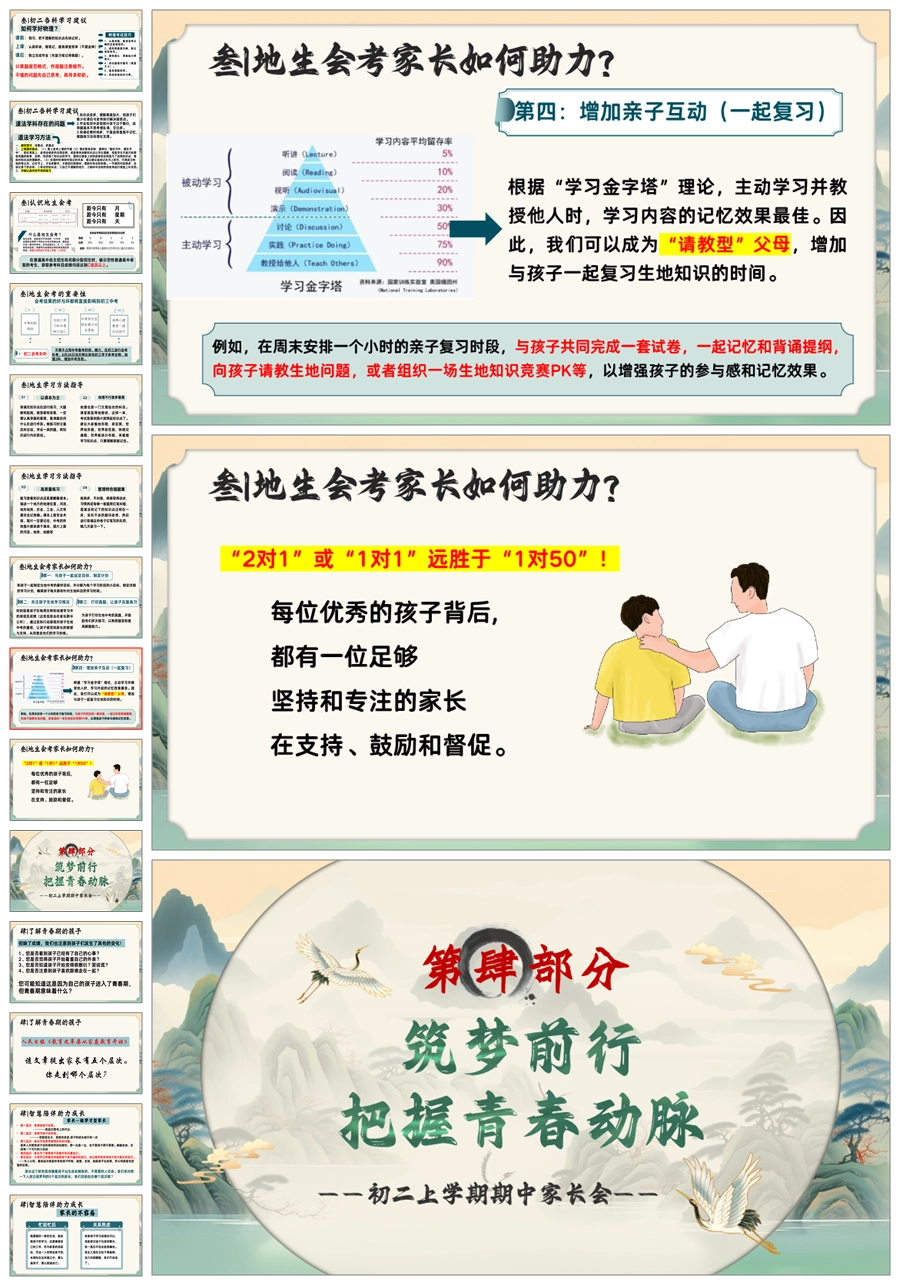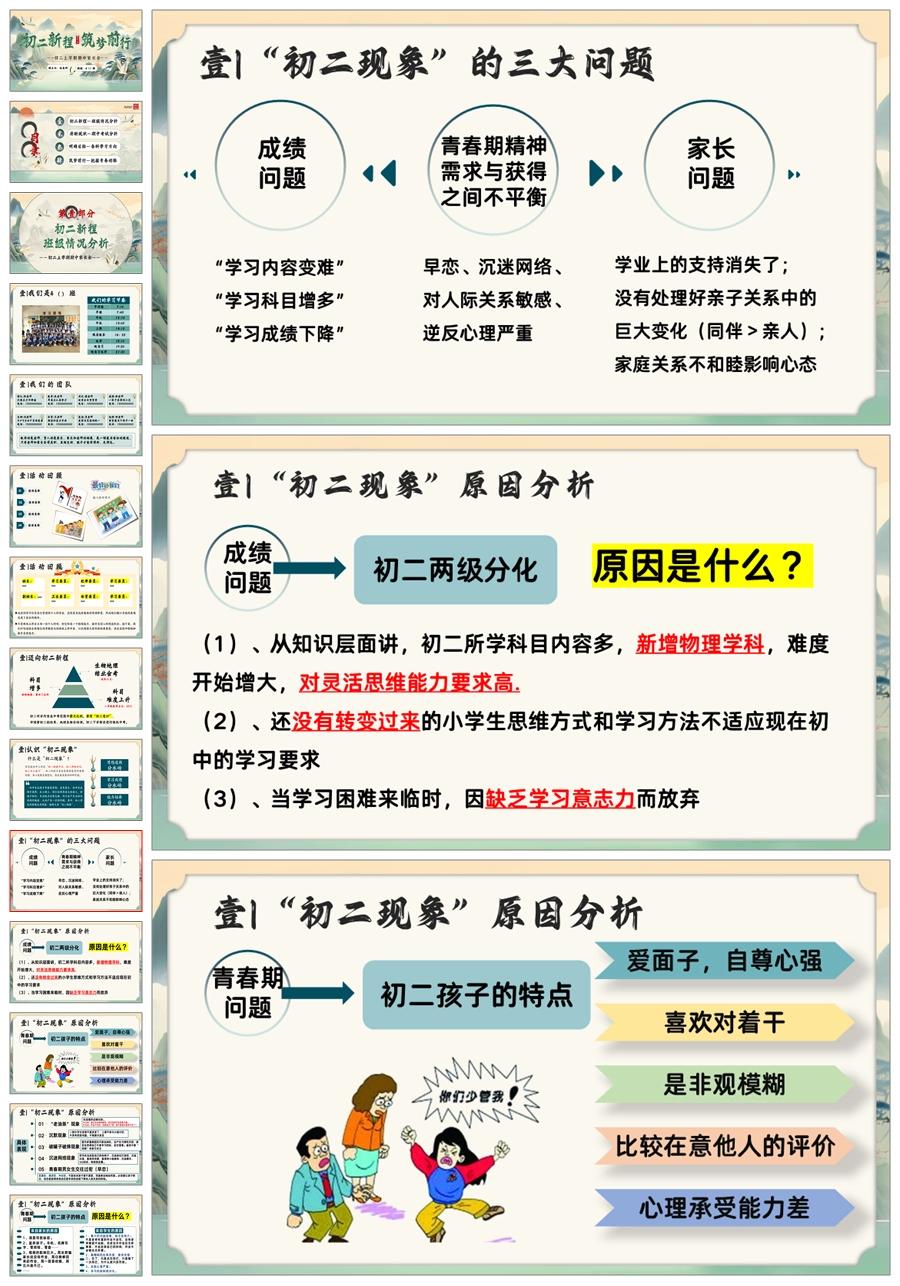 【5641】初二上期中家长会《新程筑梦前行》八年级上学期期中家长会ppt课件+发言稿