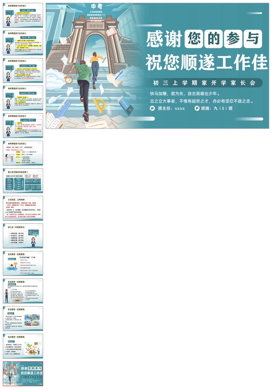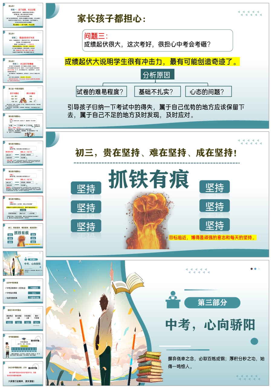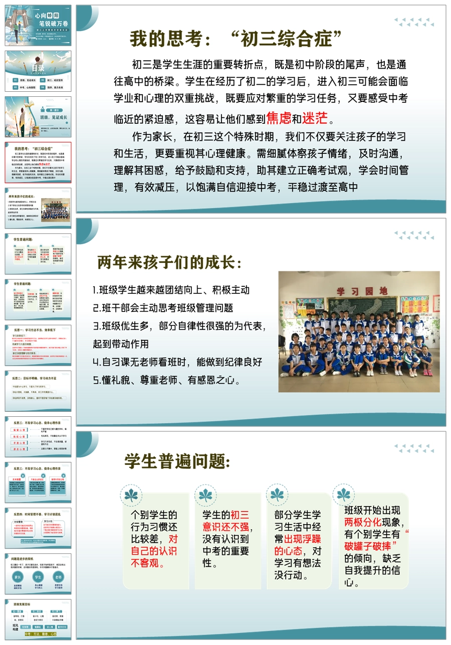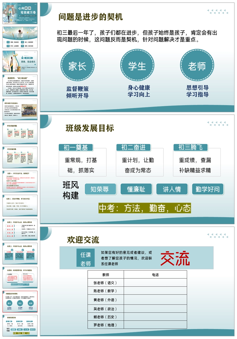 【5643】【心向骄阳 笔锐破万卷】初三九年级上学期开学家长会ppt课件+发言稿