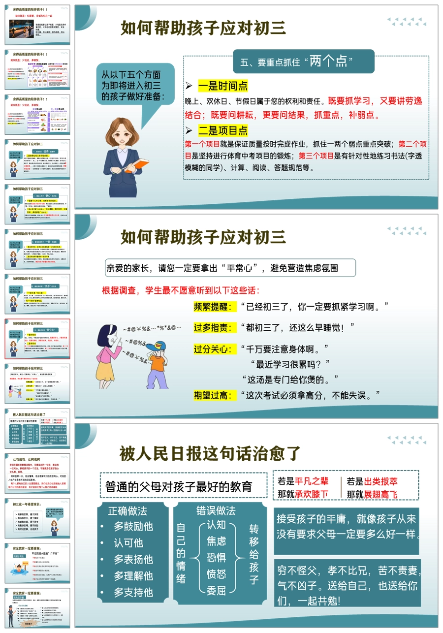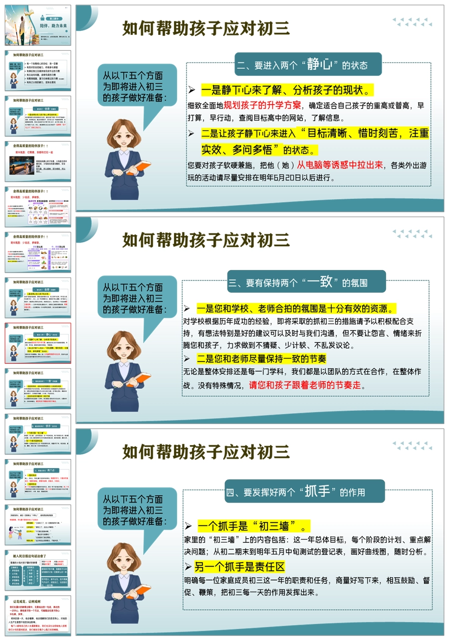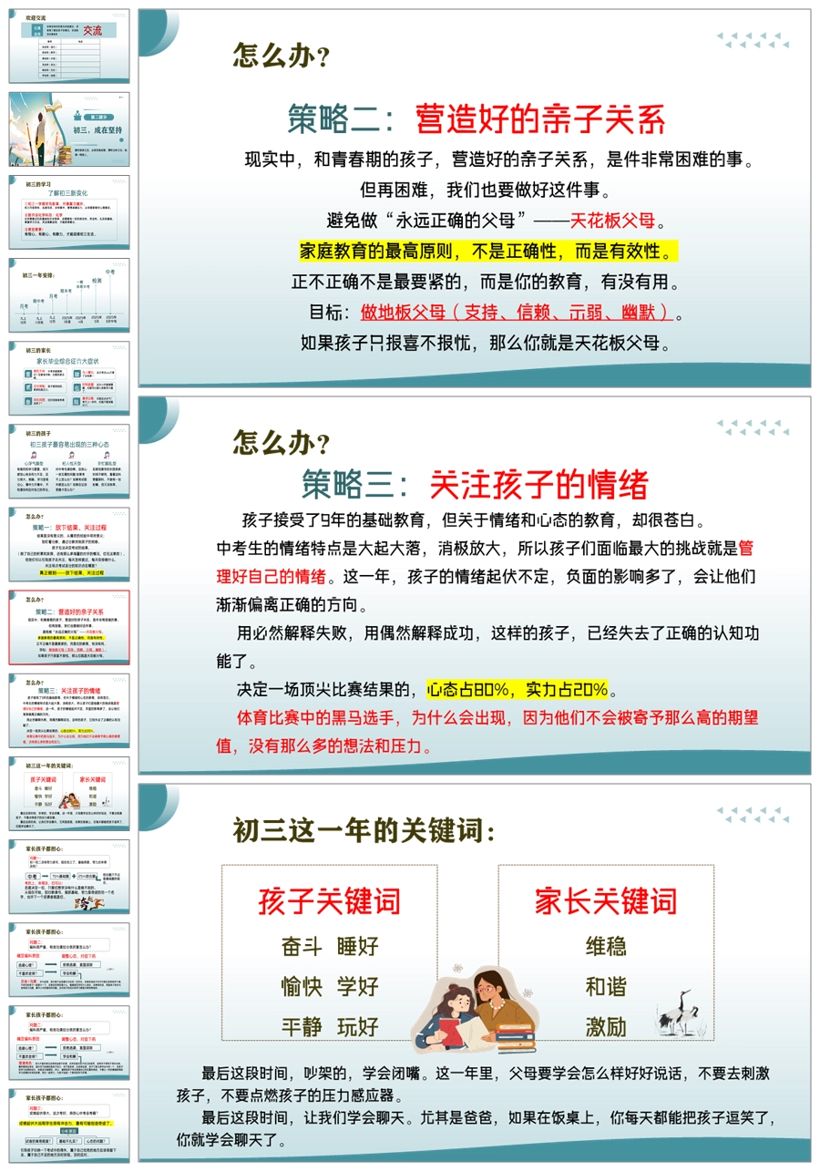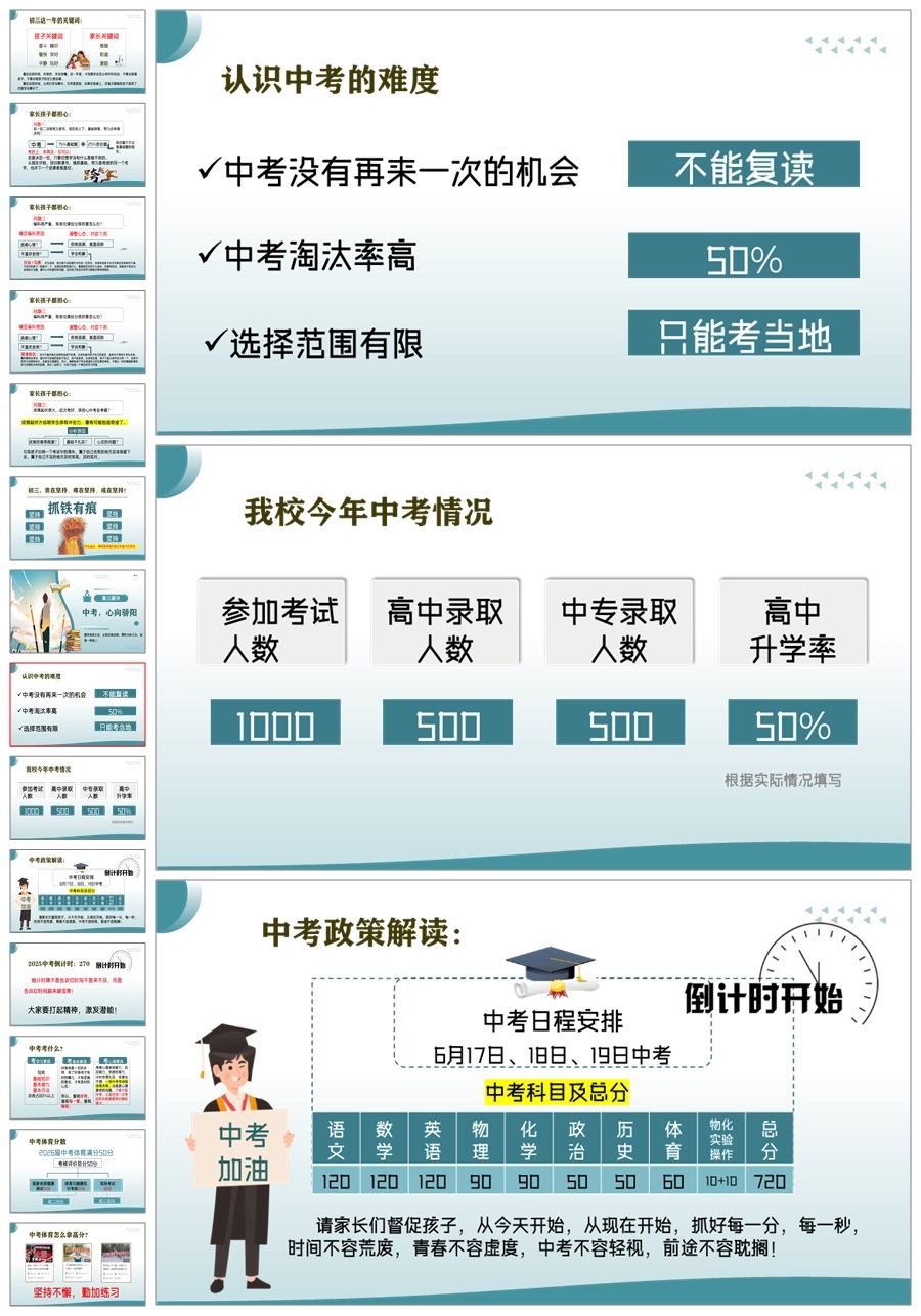 【5643】【心向骄阳 笔锐破万卷】初三九年级上学期开学家长会ppt课件+发言稿