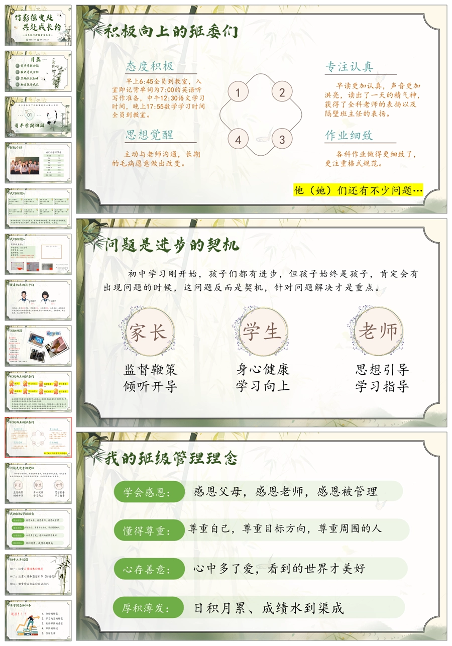 首页 中学家长会 【5658】《竹影摇曳处,共赴成长约》七年级下册期中家长会ppt课件+发言稿