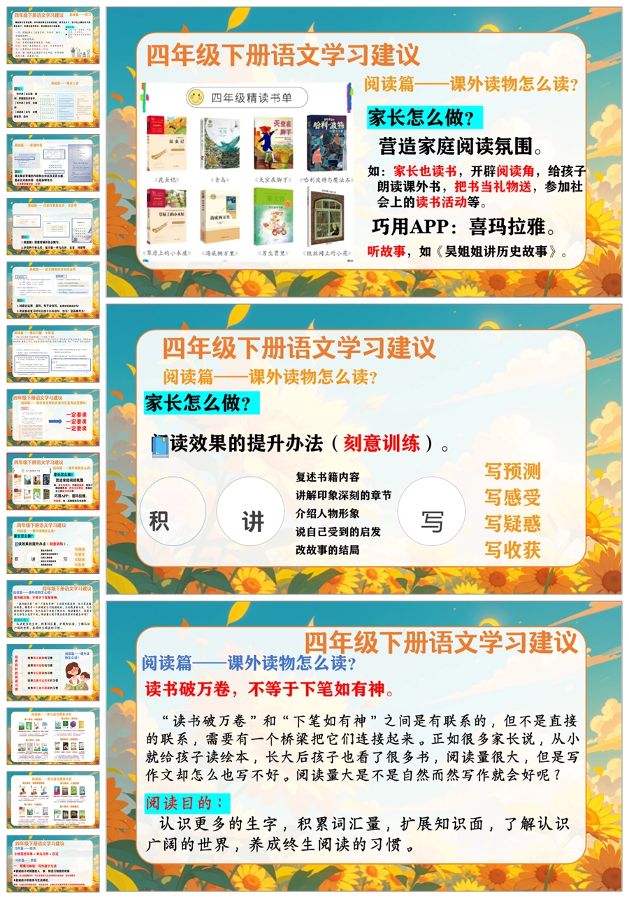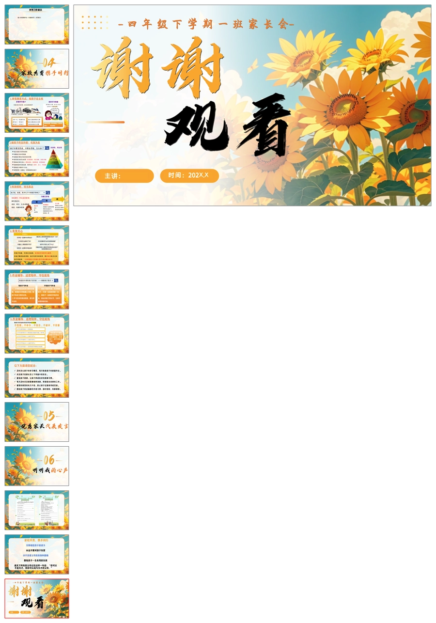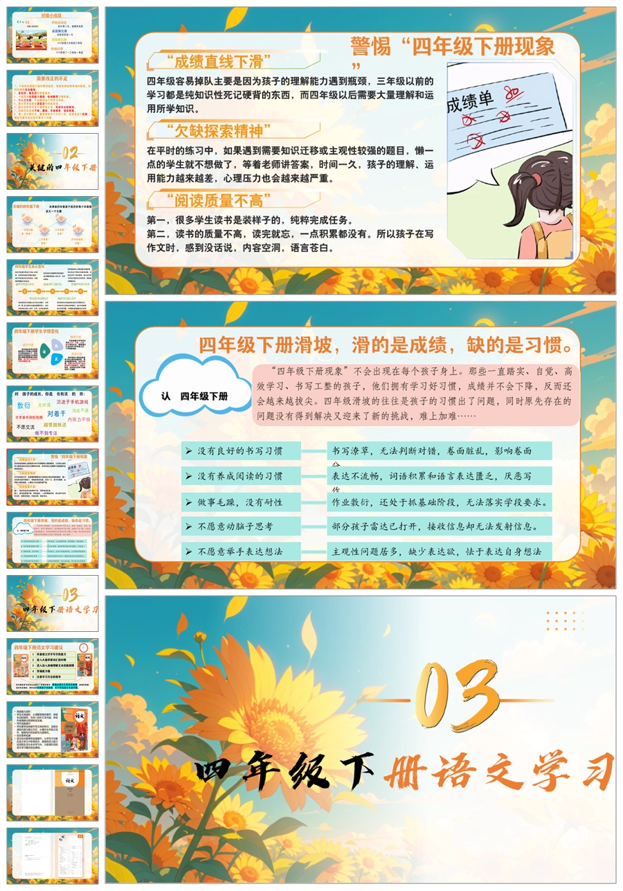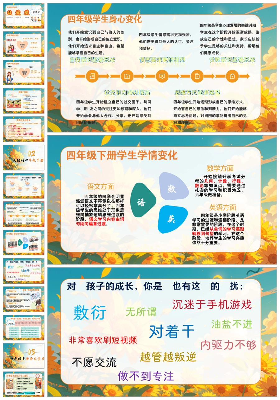【5589】《伴葵风轻触你的心》四年级下学期语文家长会ppt课件+发言稿
