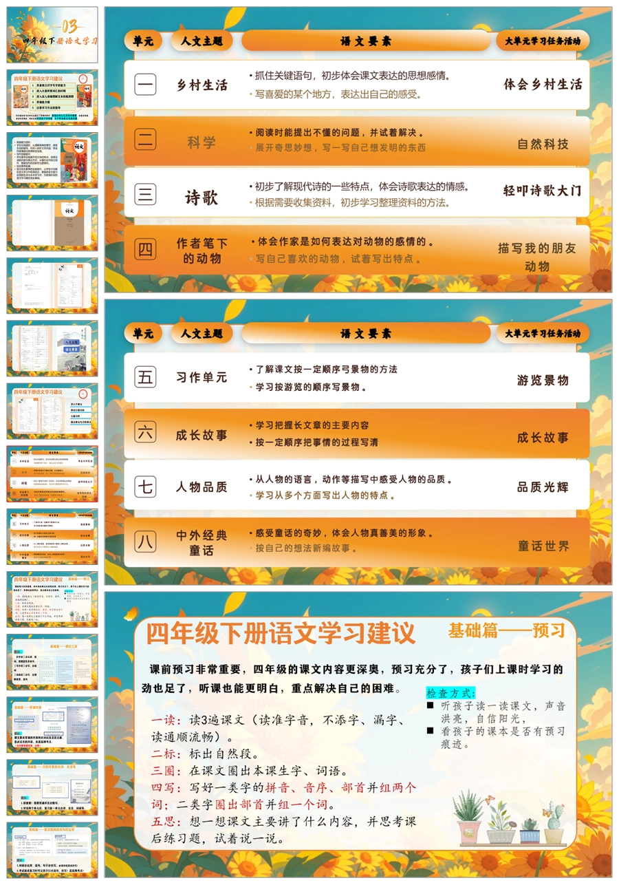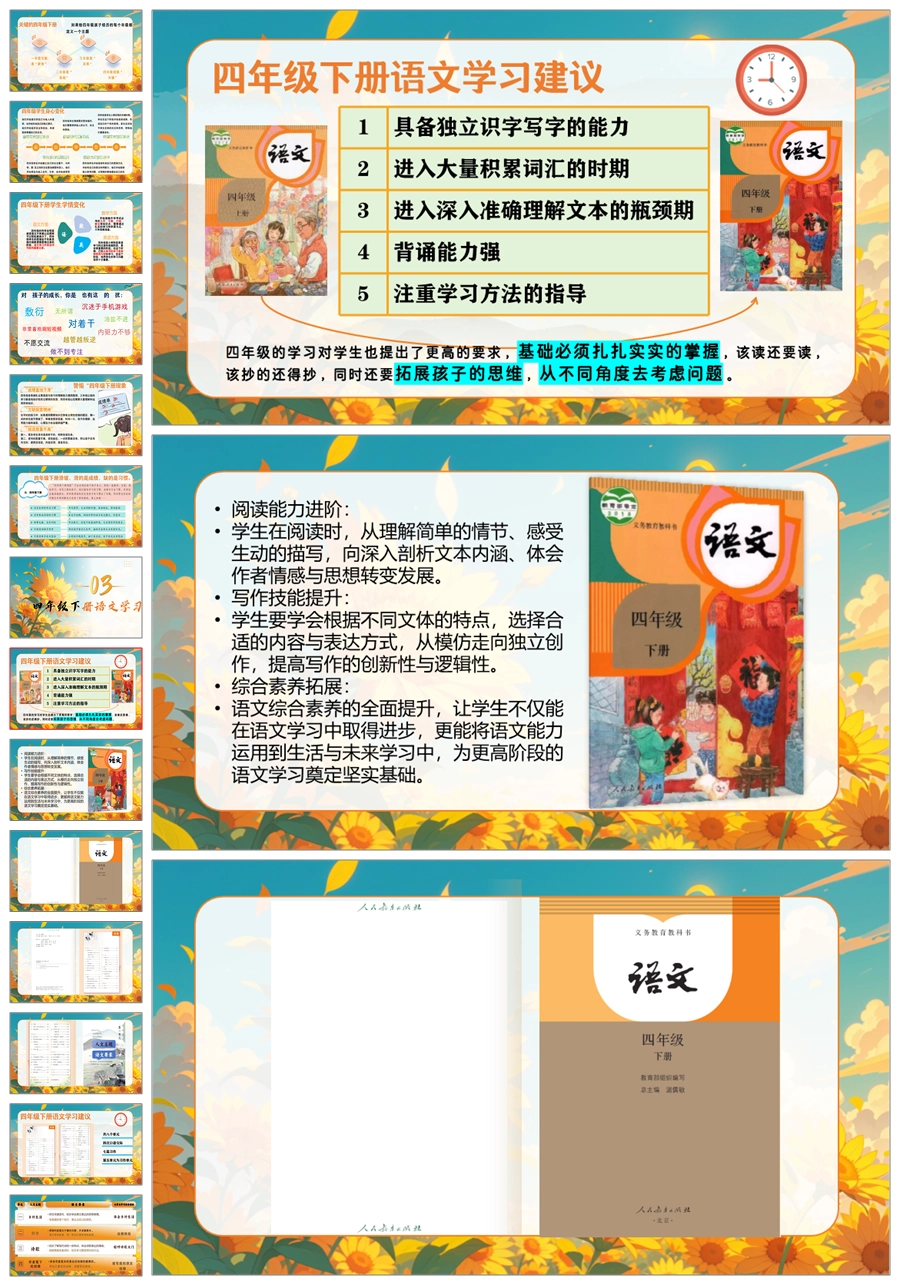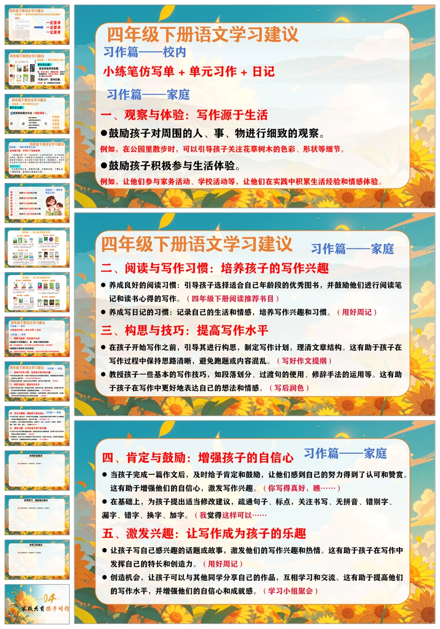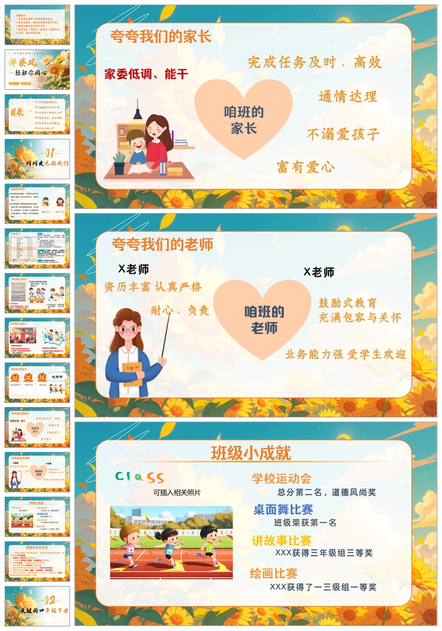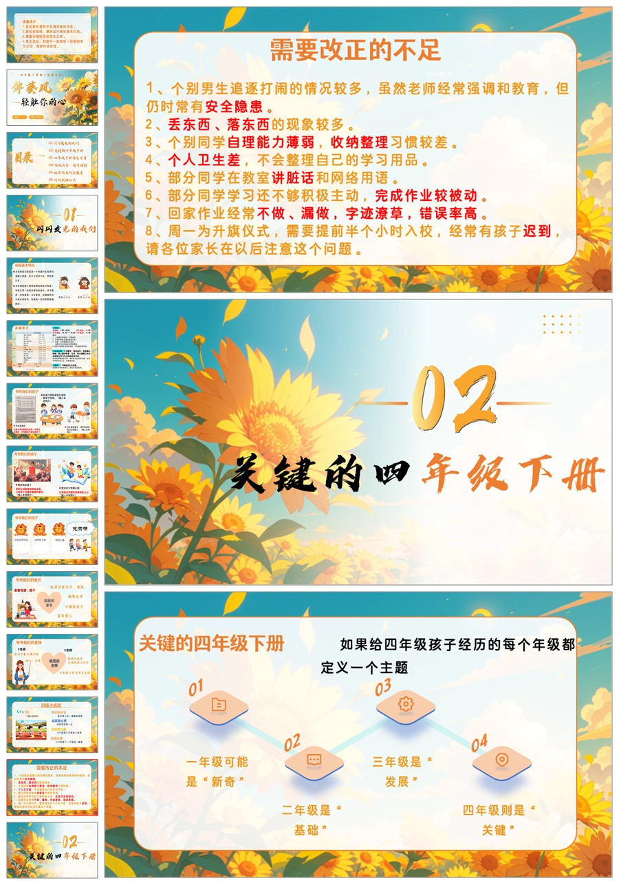 【5589】《伴葵风轻触你的心》四年级下学期语文家长会ppt课件+发言稿