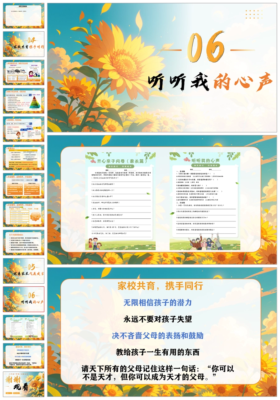 首页 小学家长会 【5589】《伴葵风轻触你的心》四年级下学期语文家长会ppt课件+发言稿