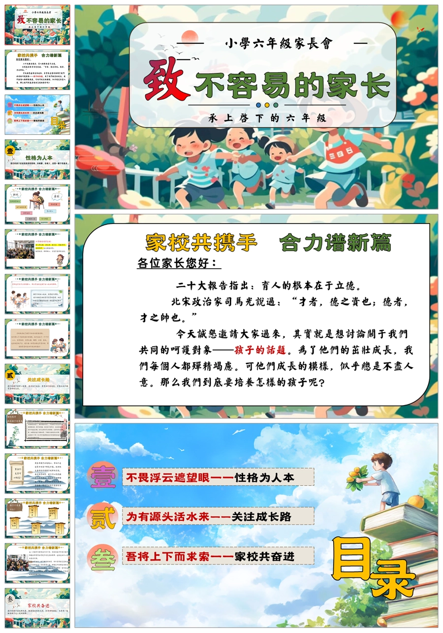 【5591】《不容易的家长会》六年级家长会ppt课件+发言稿