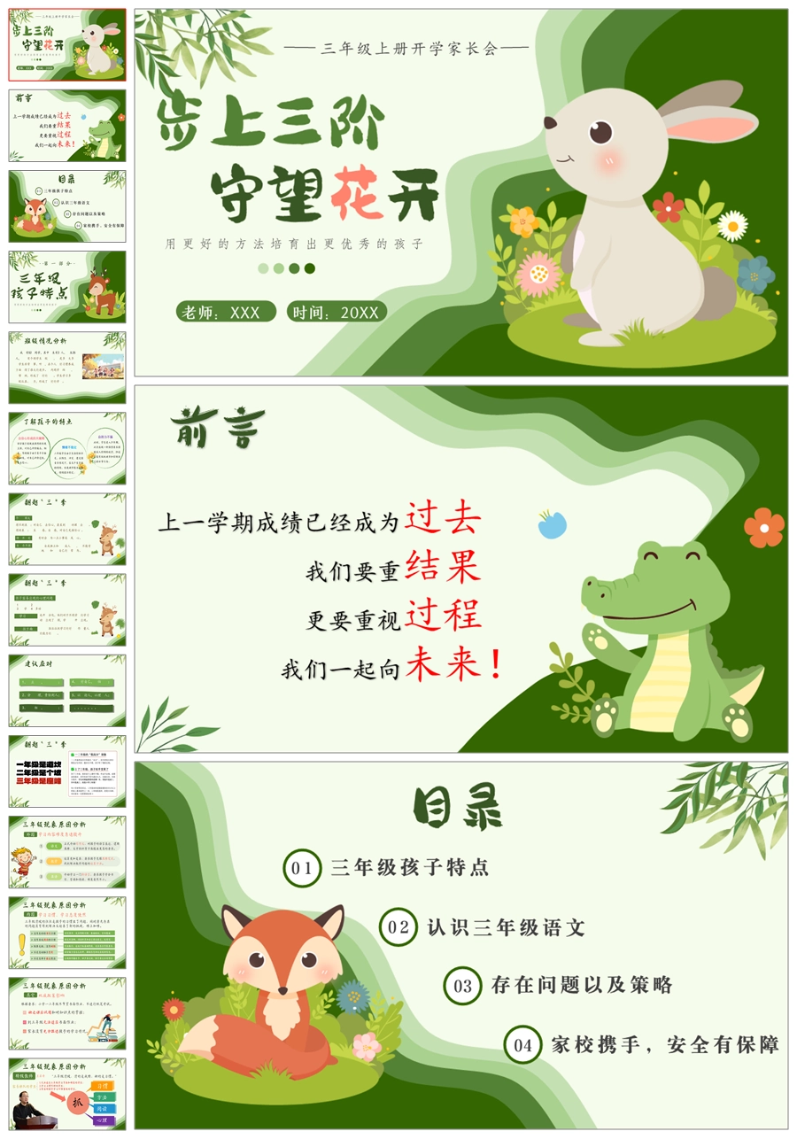 首页 小学家长会 【5592】《步上三阶,守望花开》三年级上册开学家长会ppt课件+发言稿