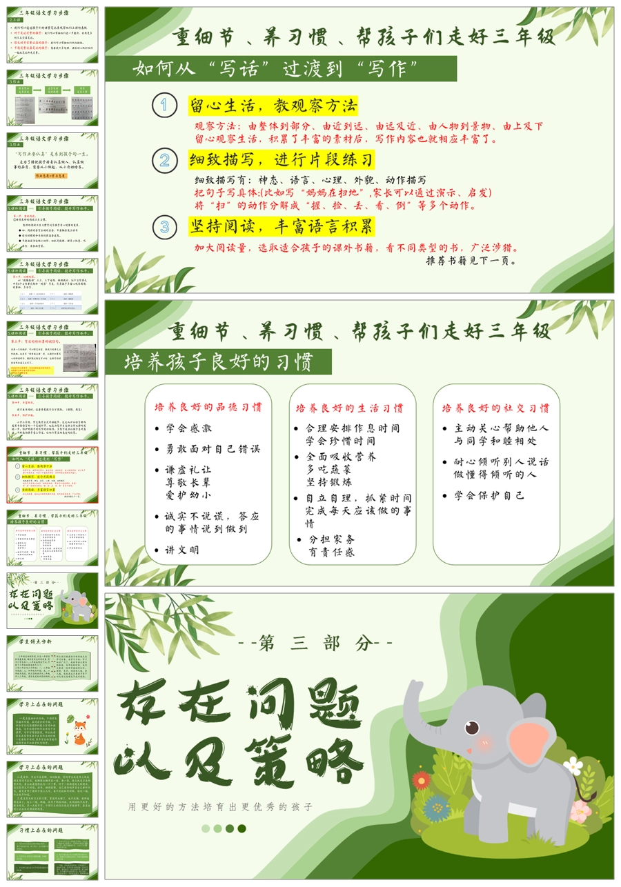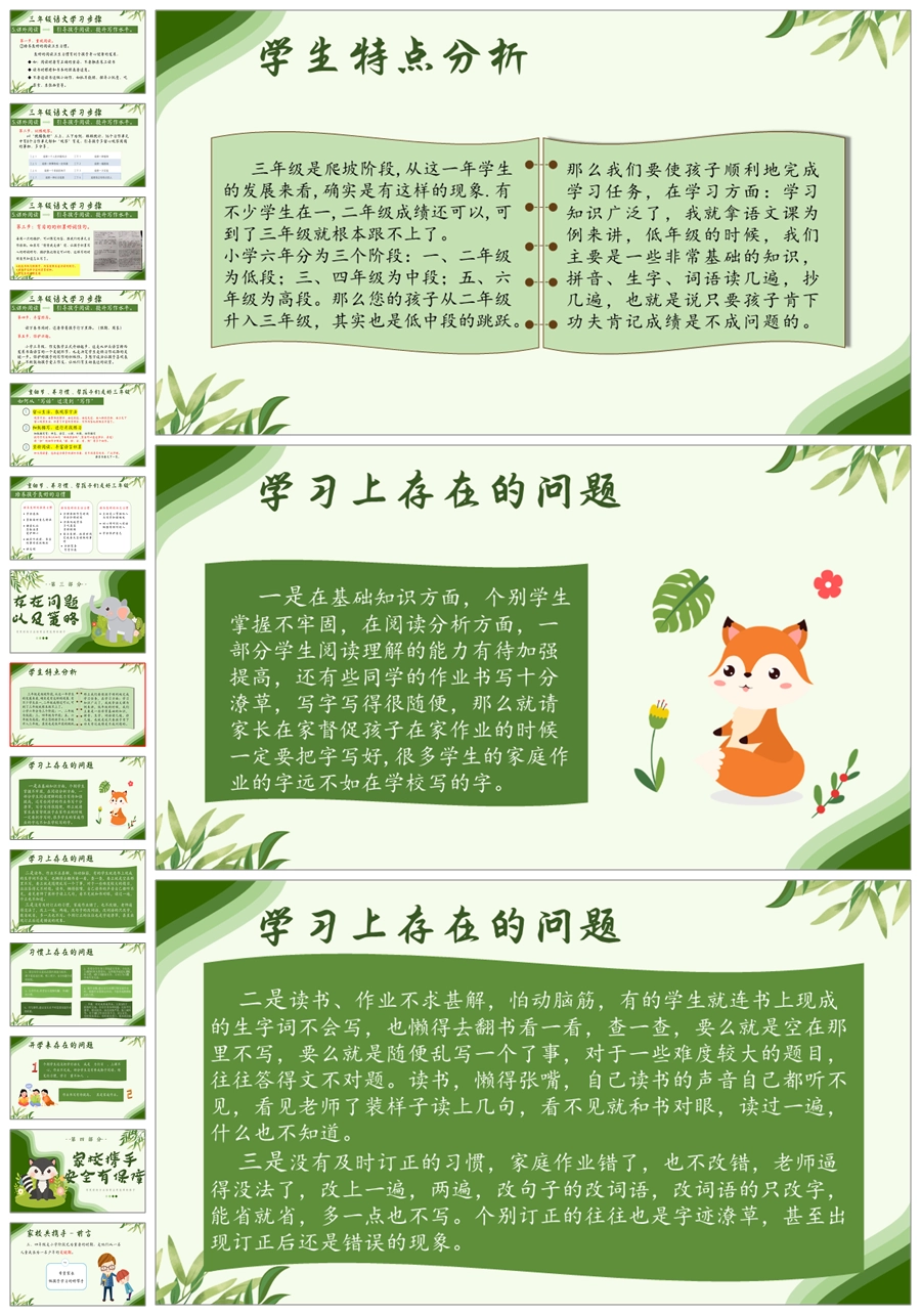【5592】《步上三阶,守望花开》三年级上册开学家长会ppt课件+发言稿