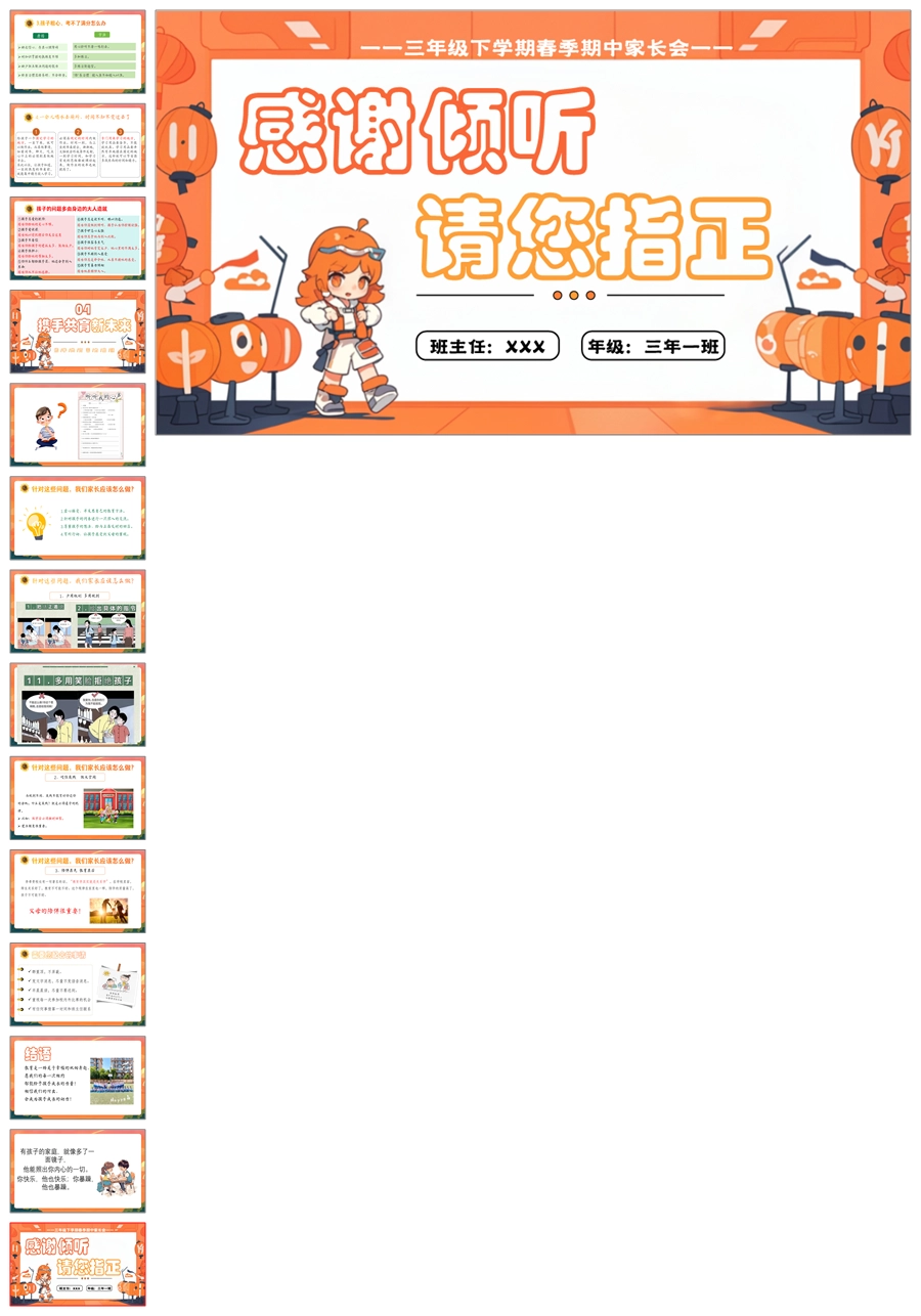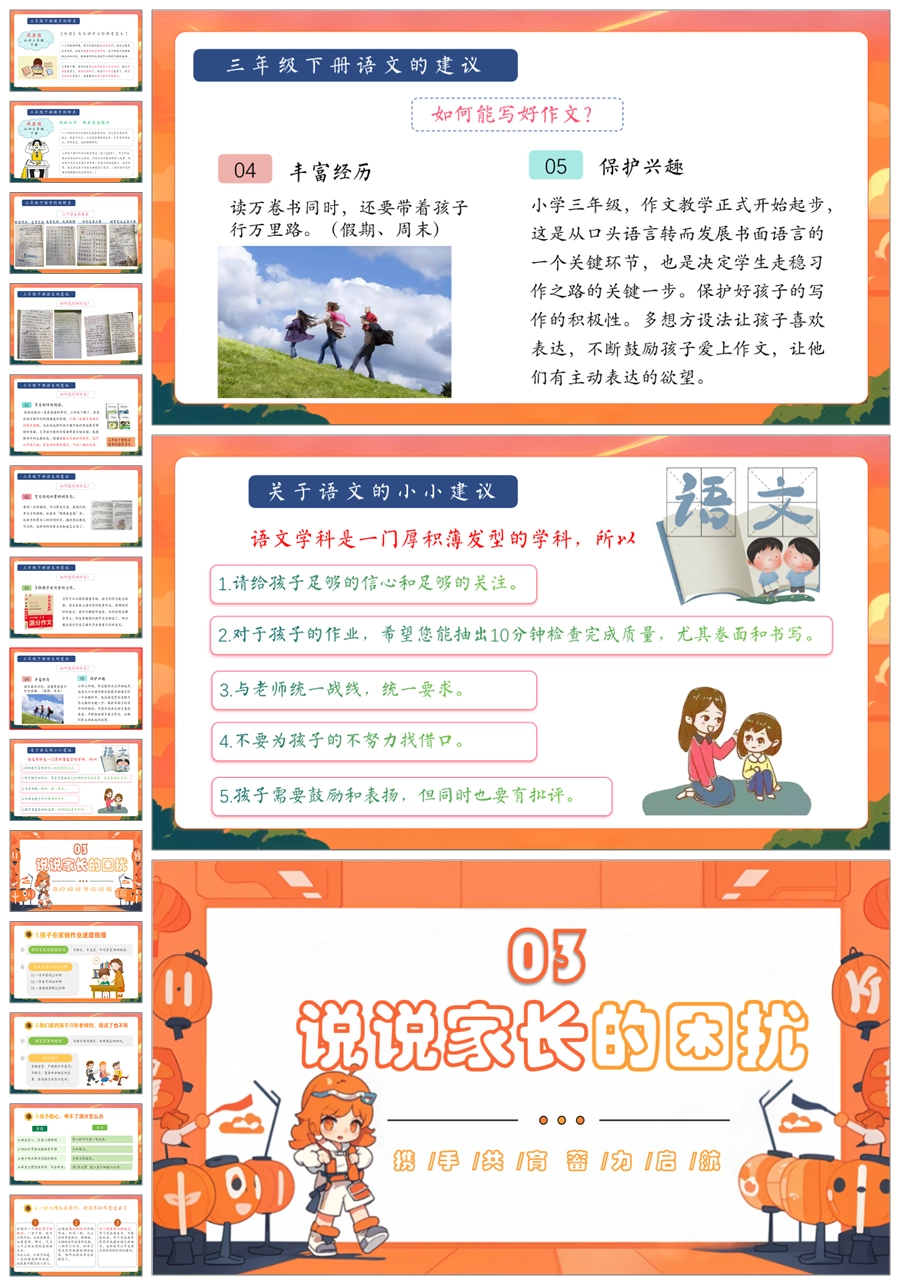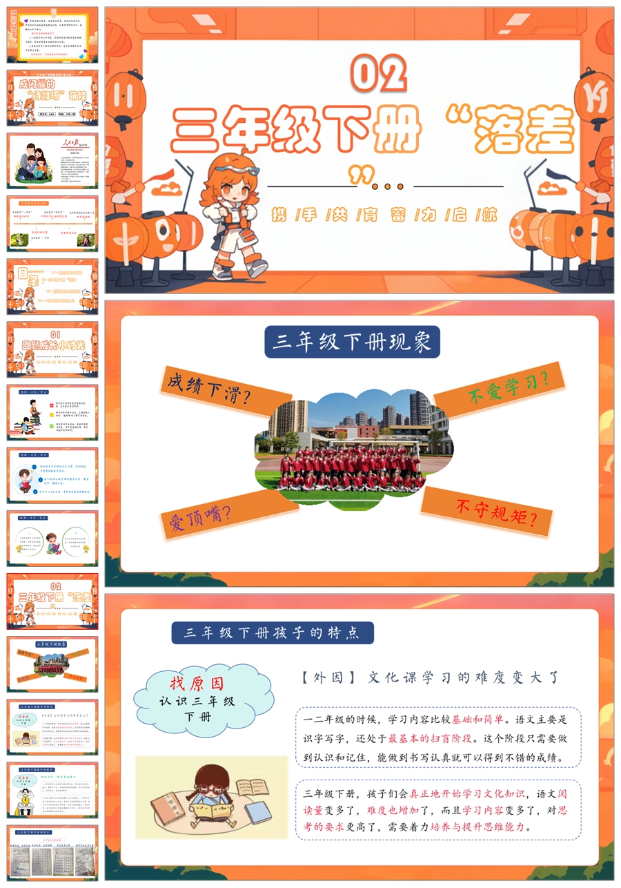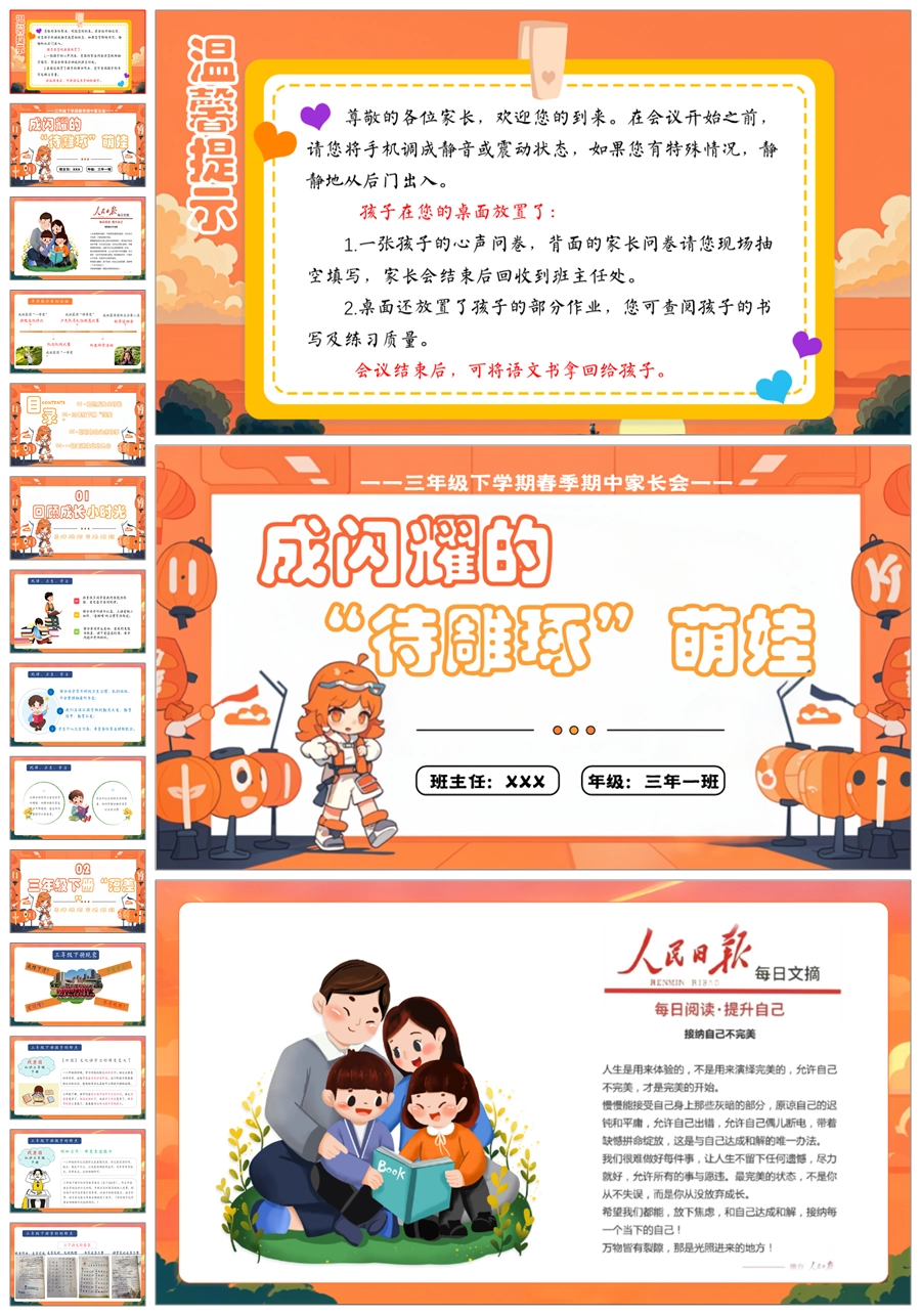【5593】《成闪耀的“待雕琢”萌娃》三年级下册期中家长会ppt课件+发言稿