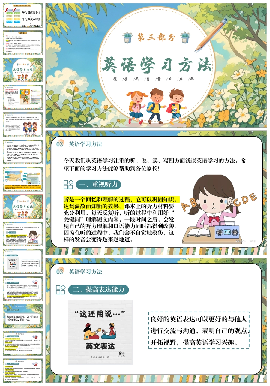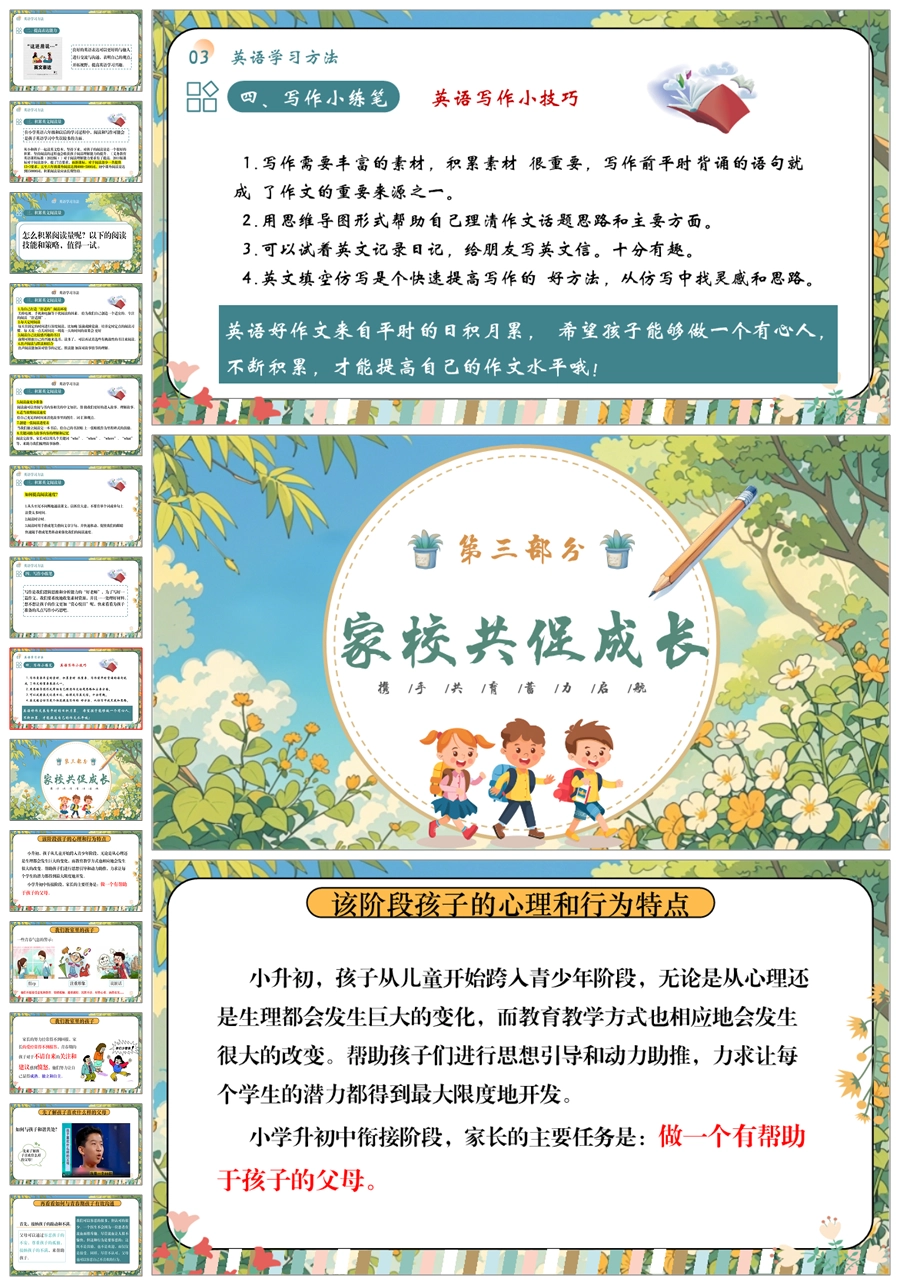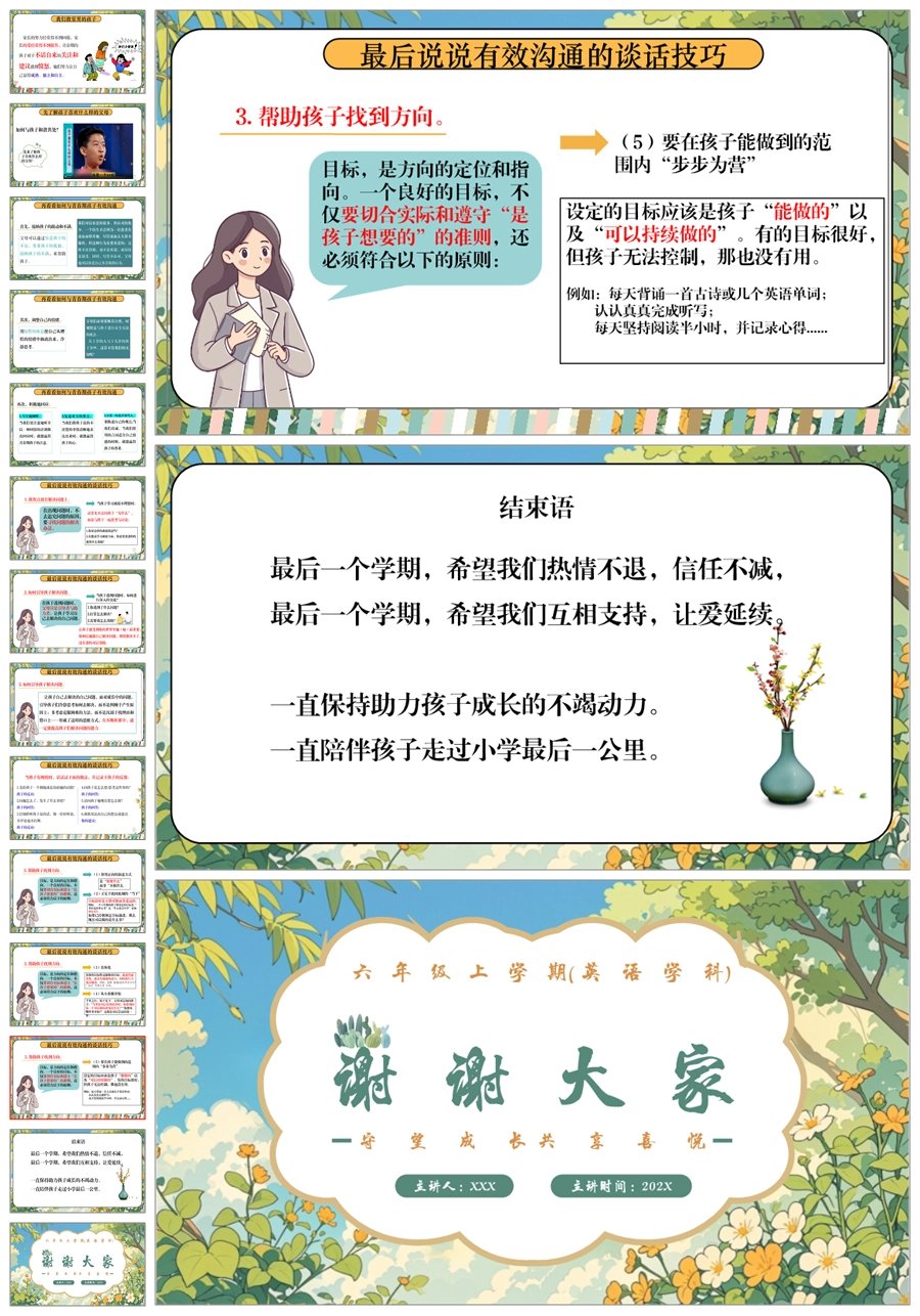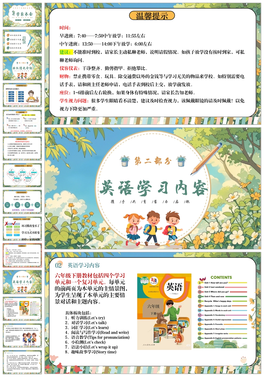【5601】《守望成长 共享喜悦》六年级下册英语家长会ppt课件+发言稿