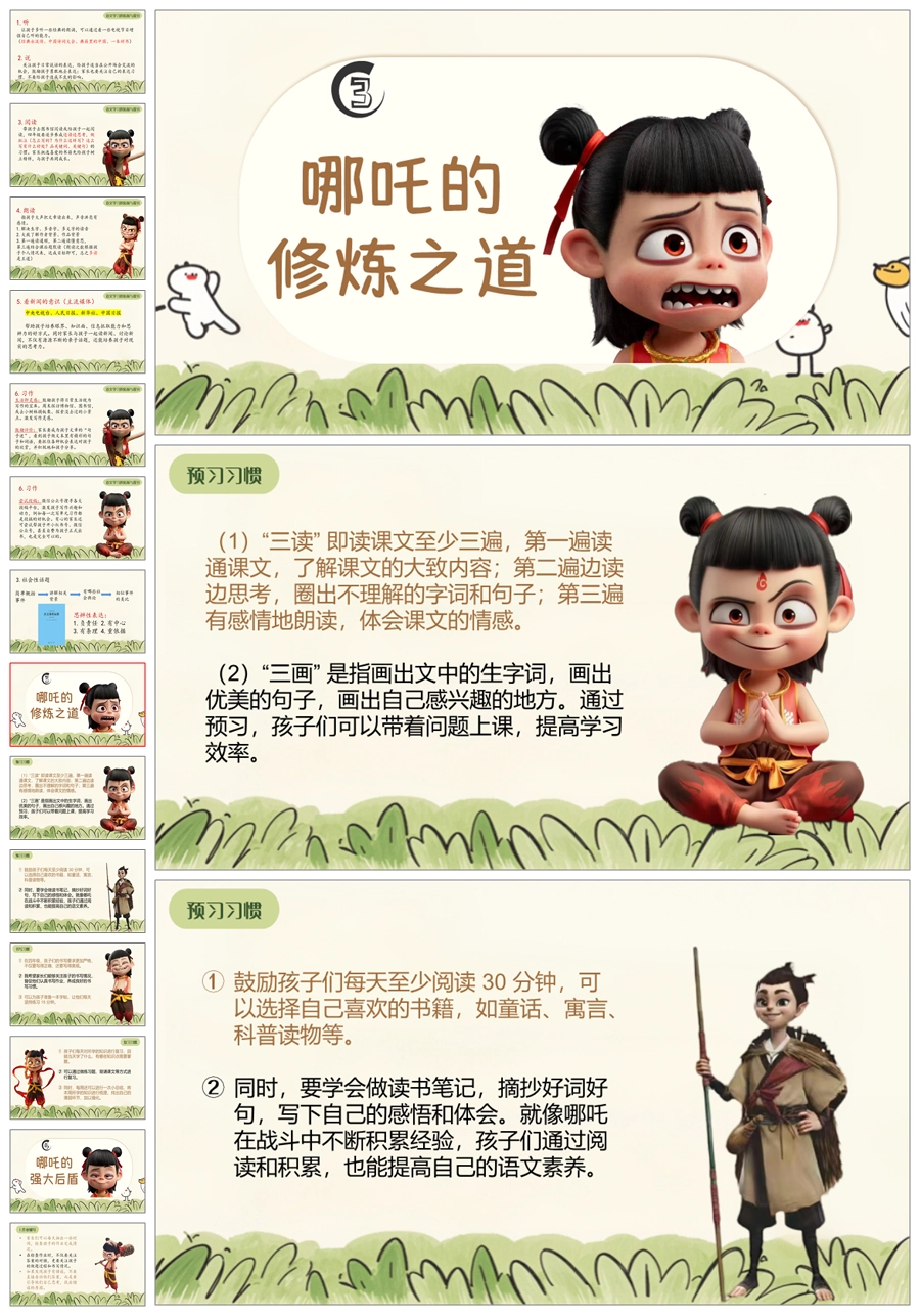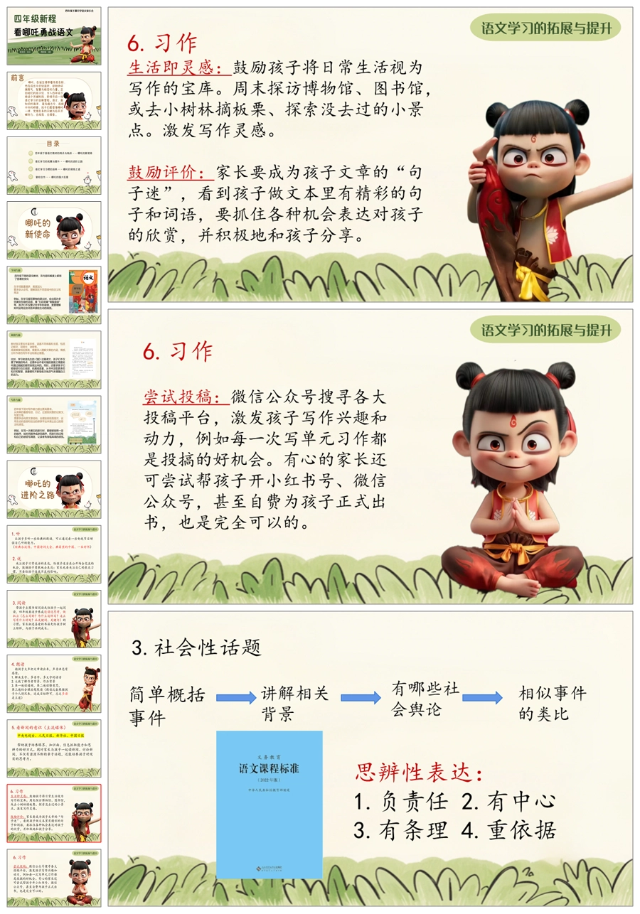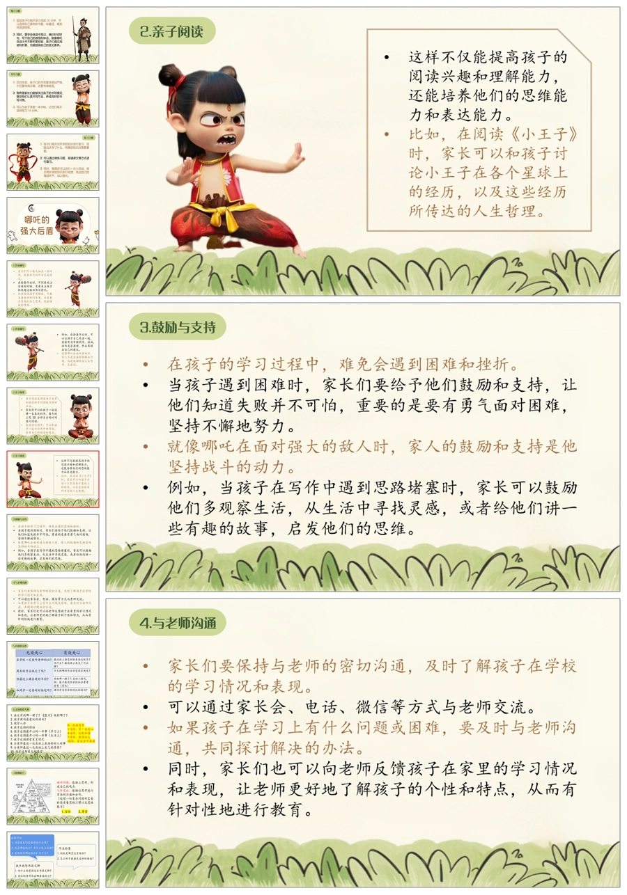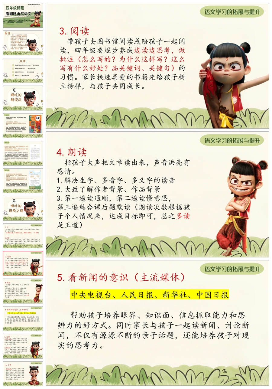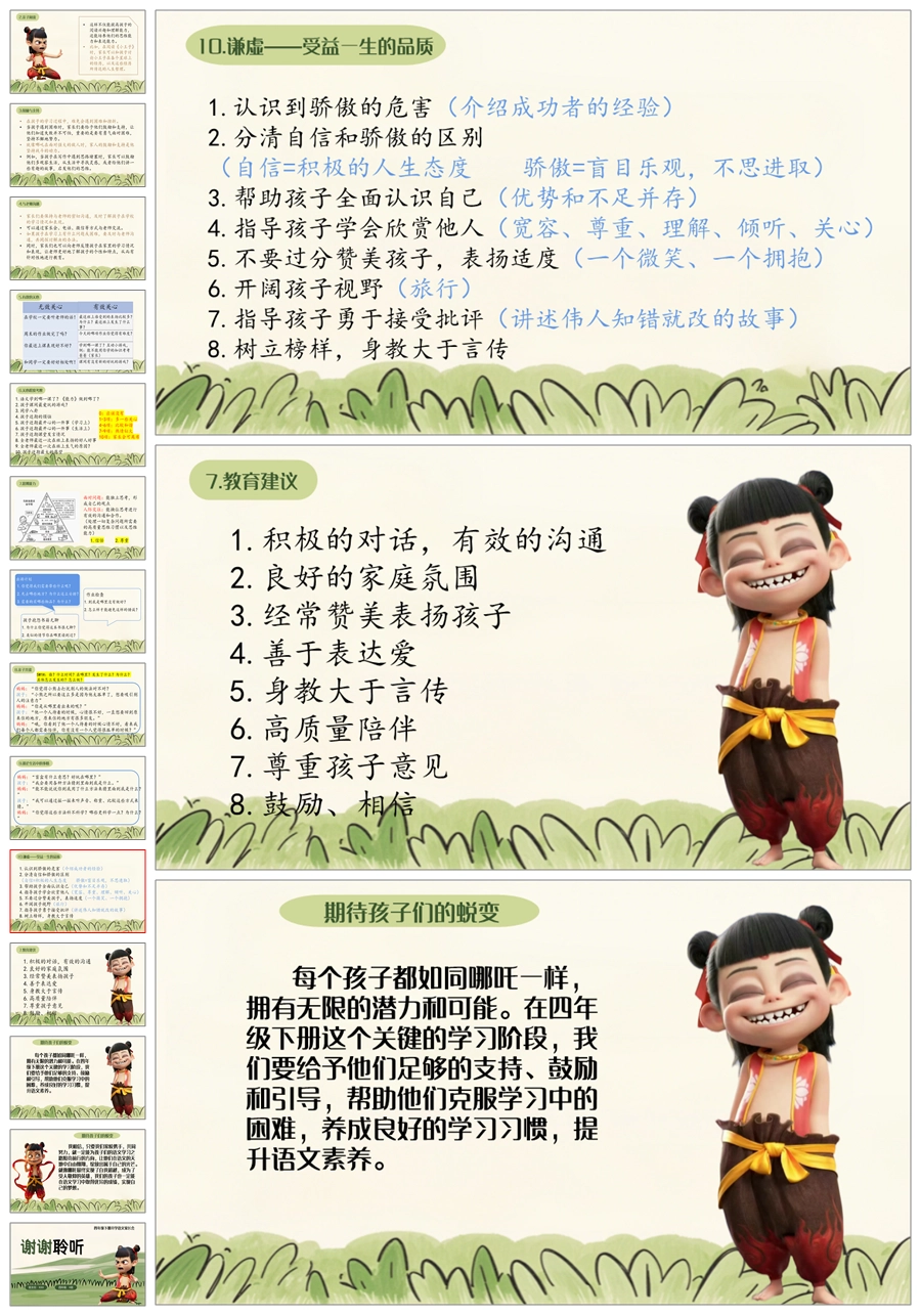 【5603】《四年级新程看哪吒勇战语文》四年级下学期开学语文家长会ppt课件+发言稿