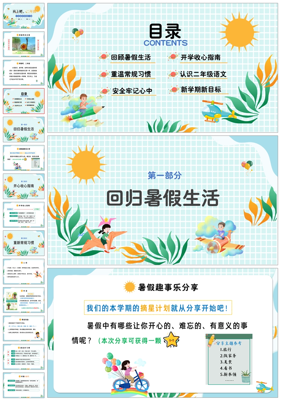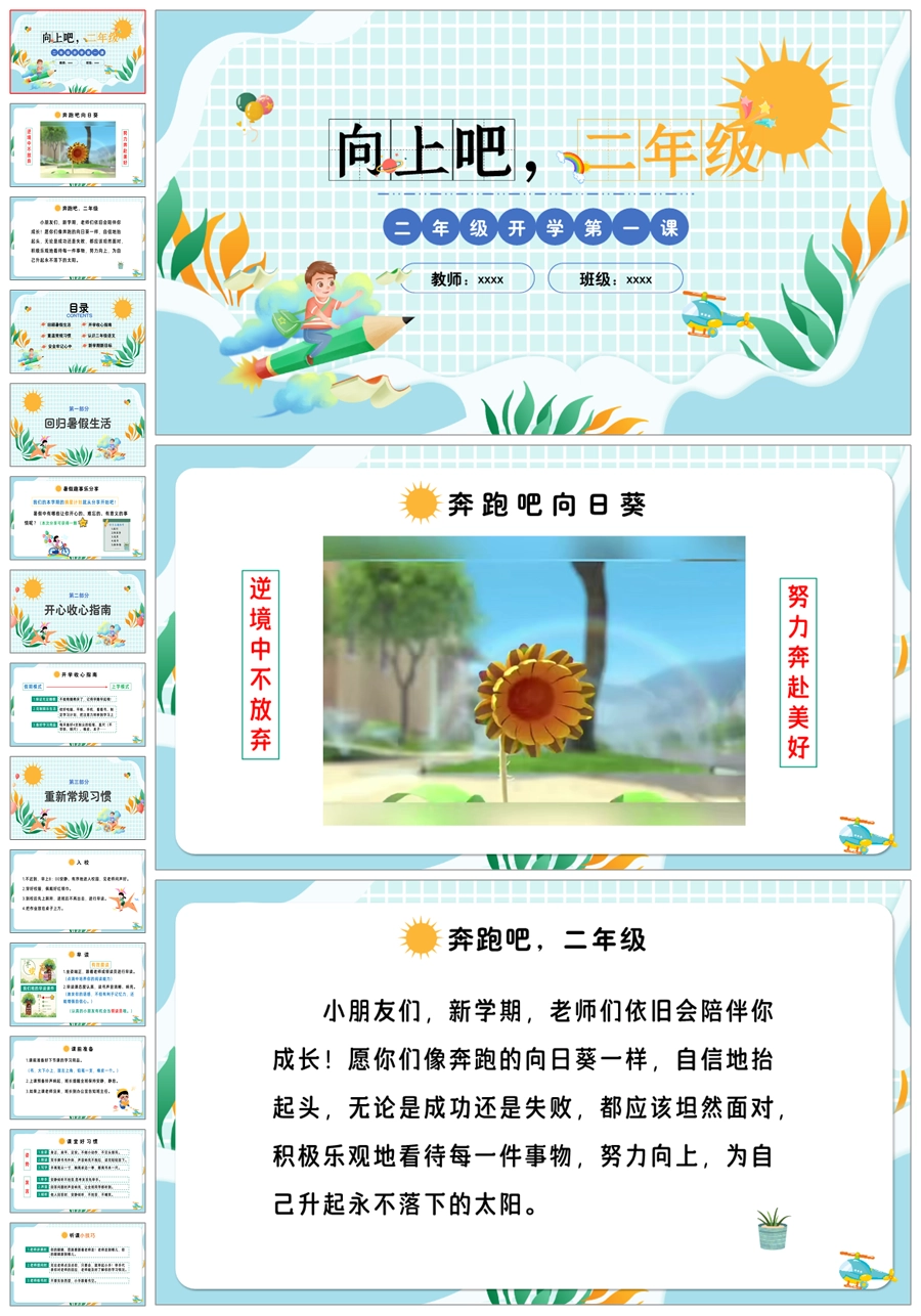 【5610】【二年级上 语文 秋季】开学第一课《向上吧,二年级》ppt课件+发言稿