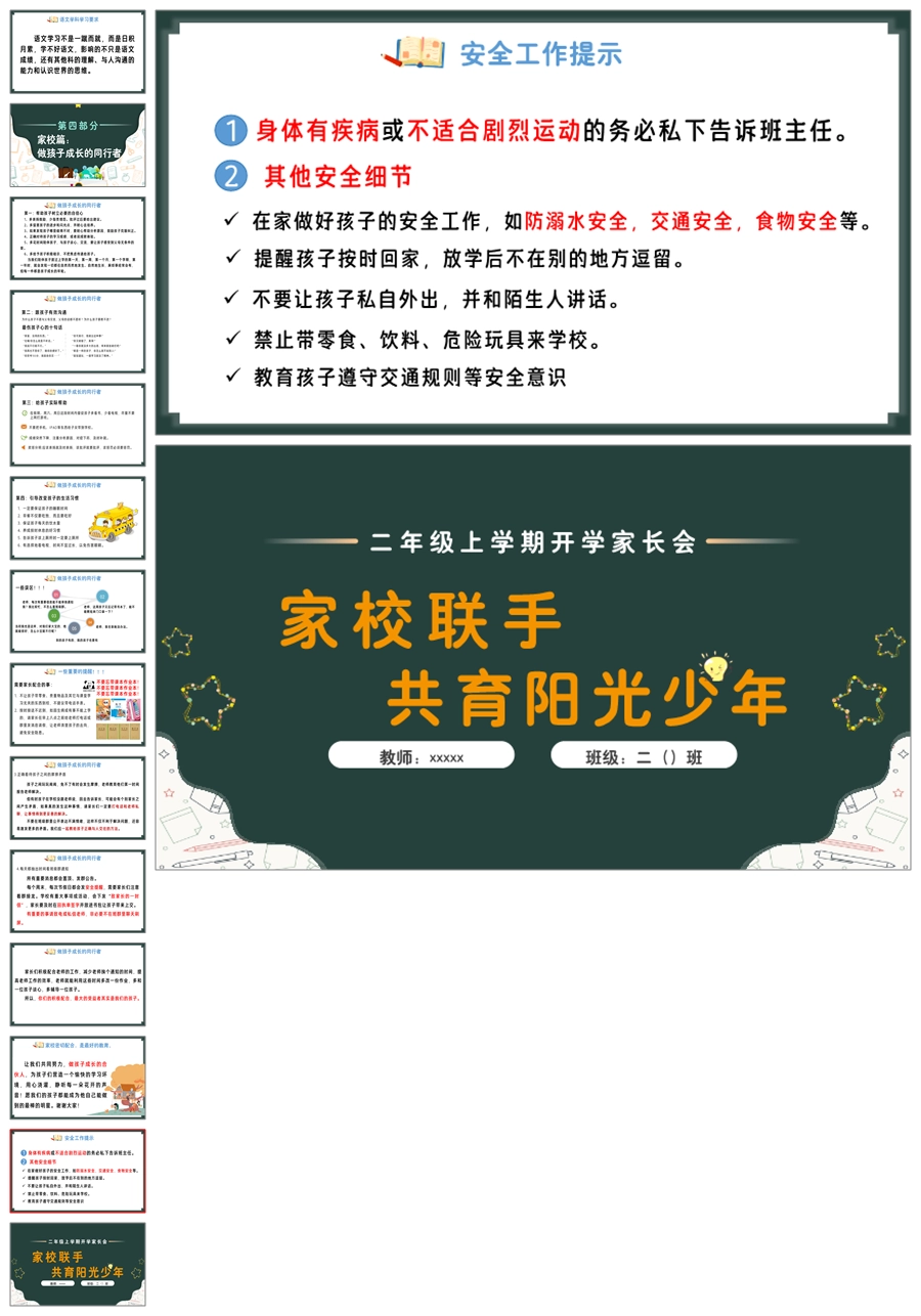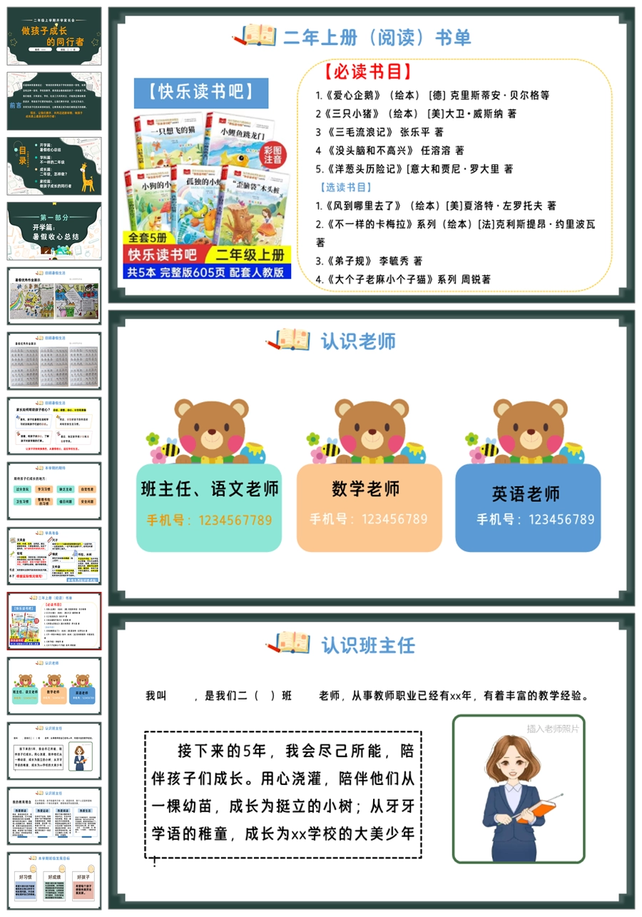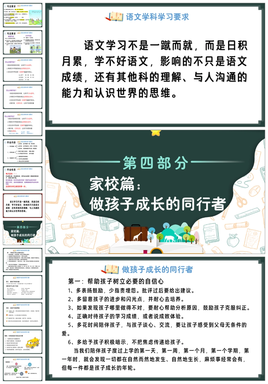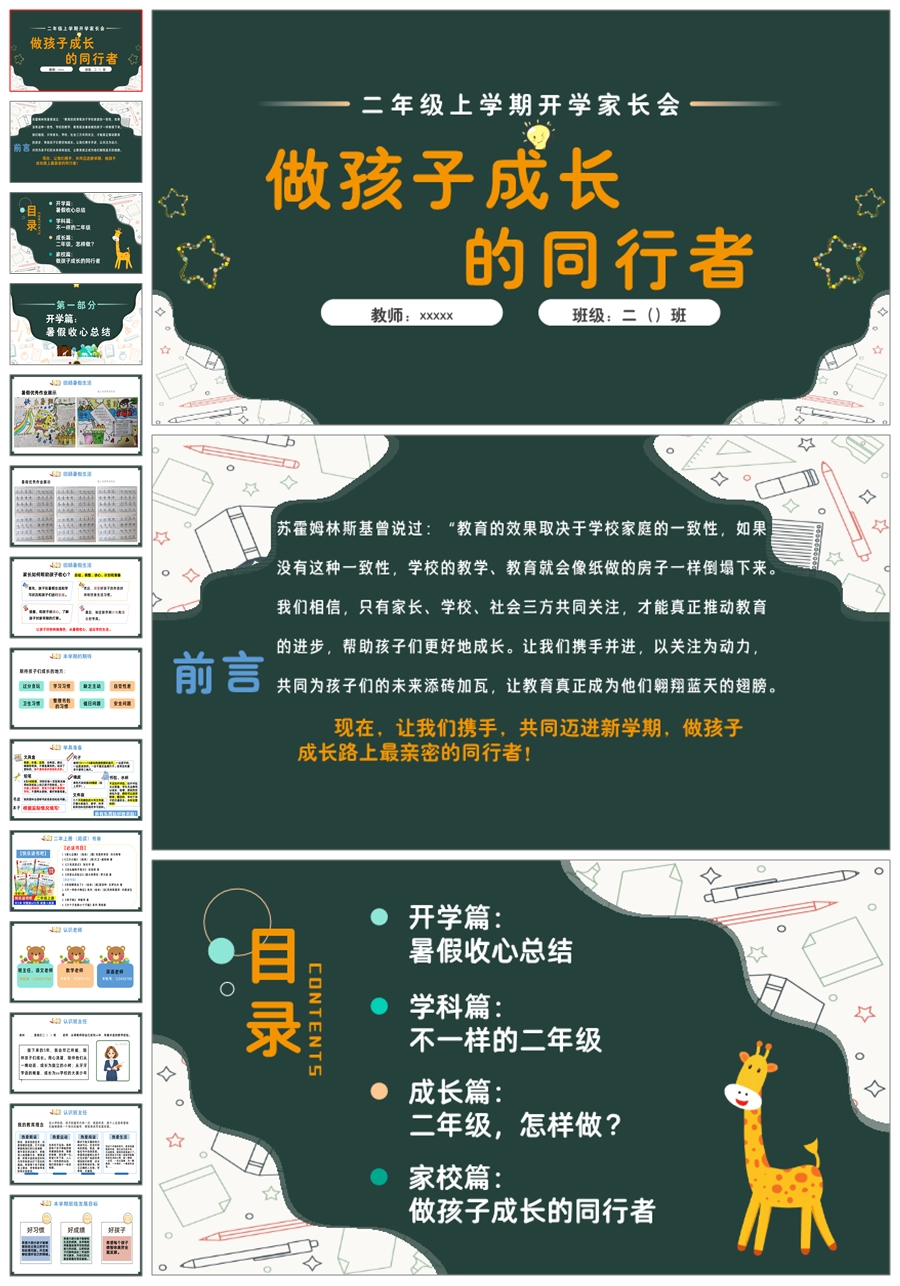 【5612】【二上】【语文】【做孩子成长的同行者】二年级上学期开学家长会ppt课件+发言稿