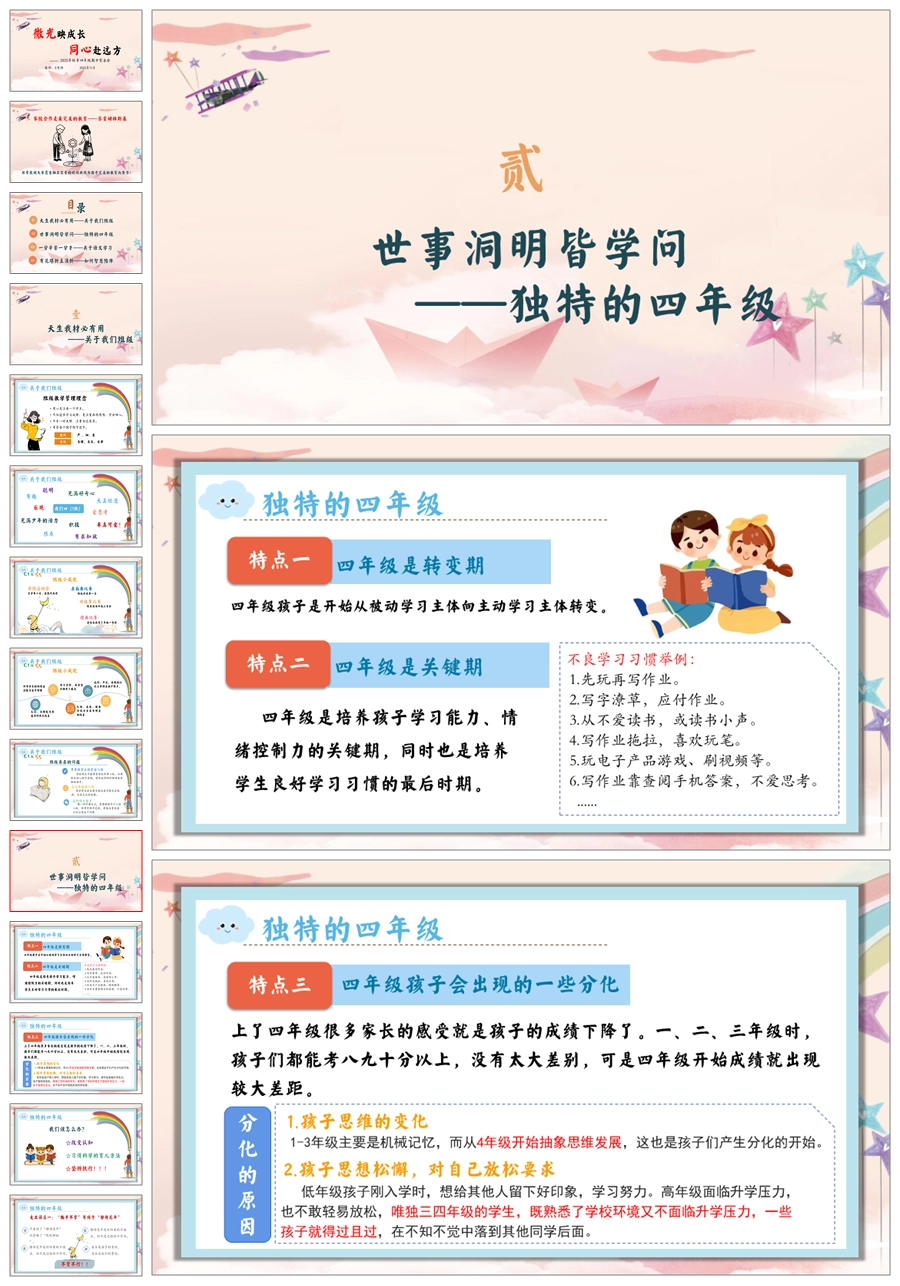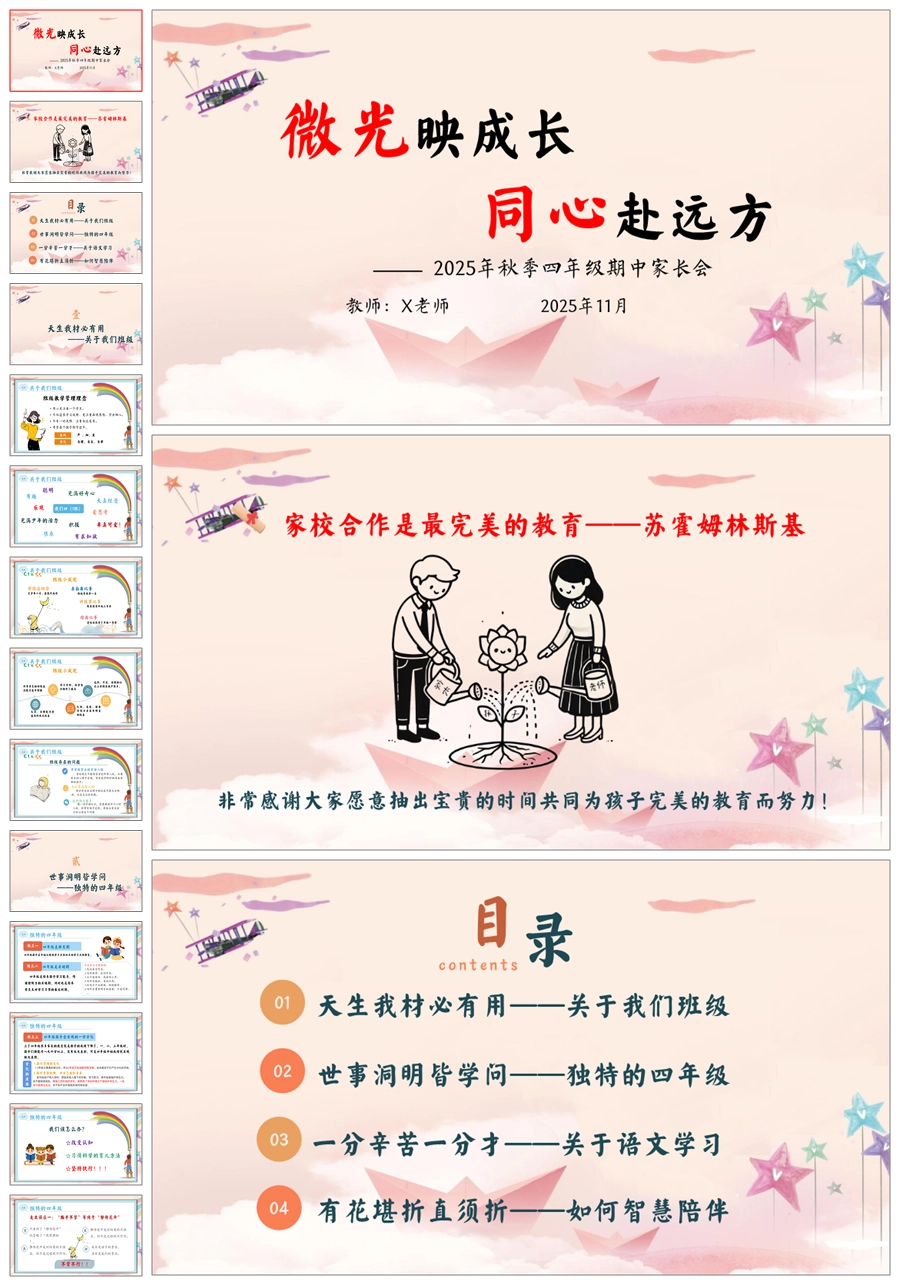 【5619】【四年级】【语文】【秋季上】【期中】家长会:微光映成长,同心赴远方ppt课件+发言稿