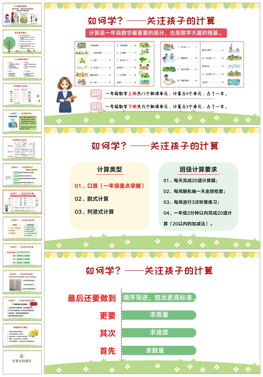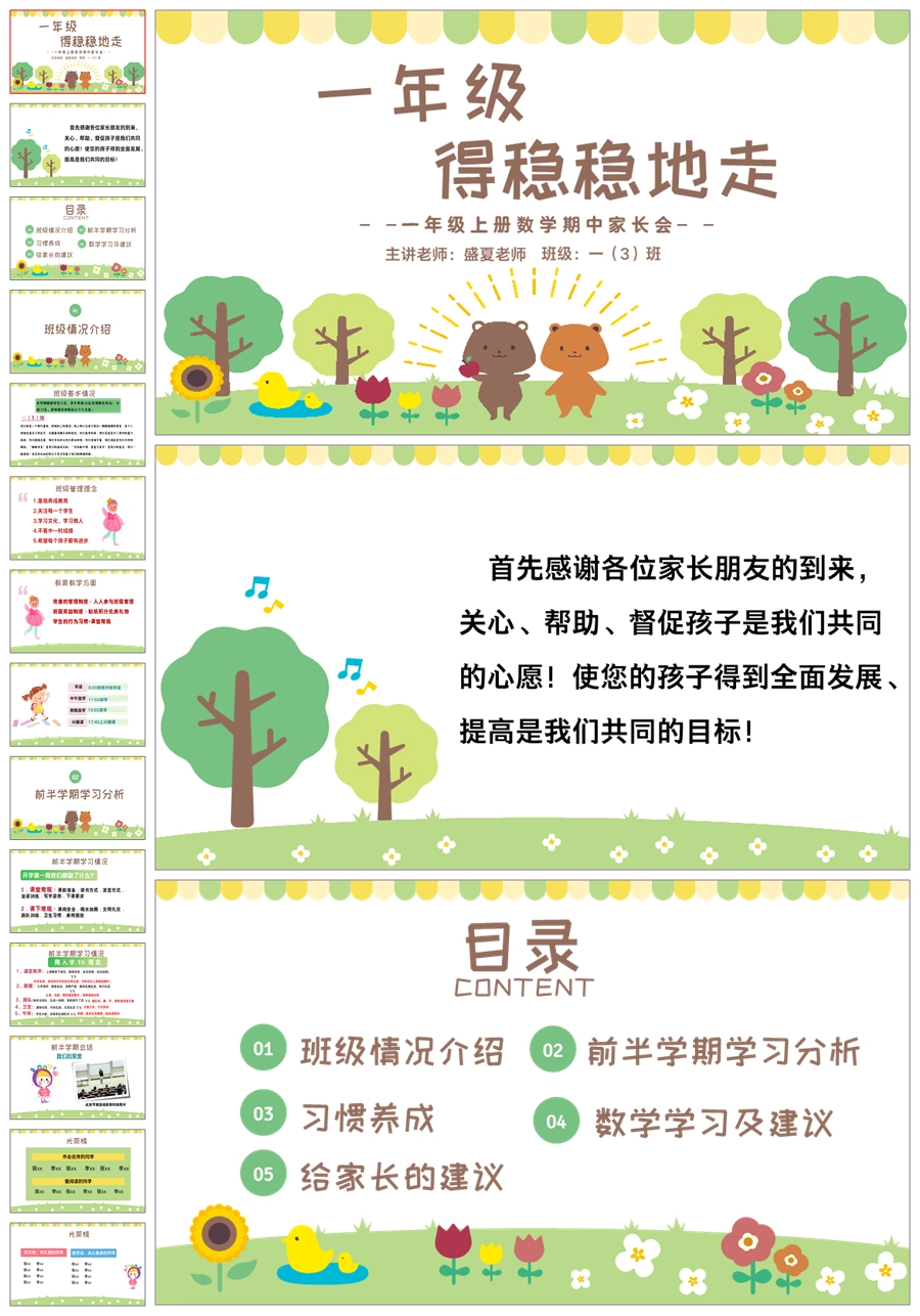 【5632】【一年级上】【数学】一年级上学期期中家长会《一年级,得稳稳的走》ppt课件+发言稿
