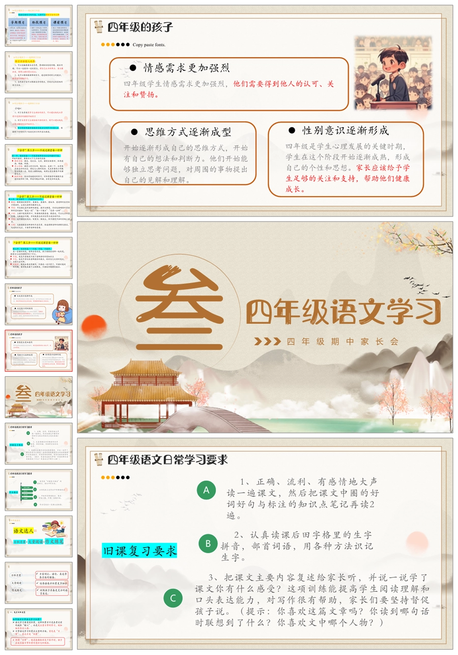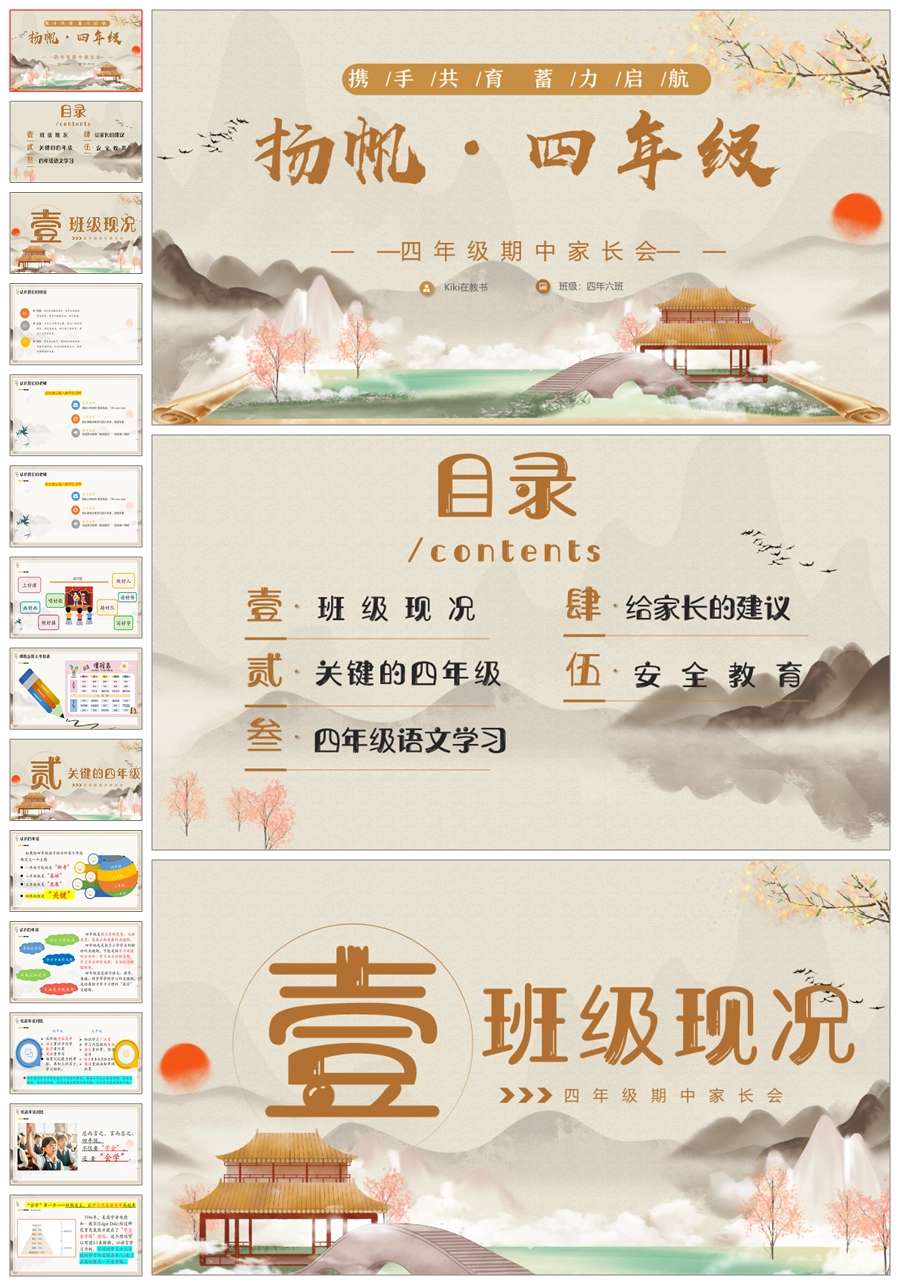 【5606】《扬帆四年级》四年级期中家长会ppt课件+发言稿