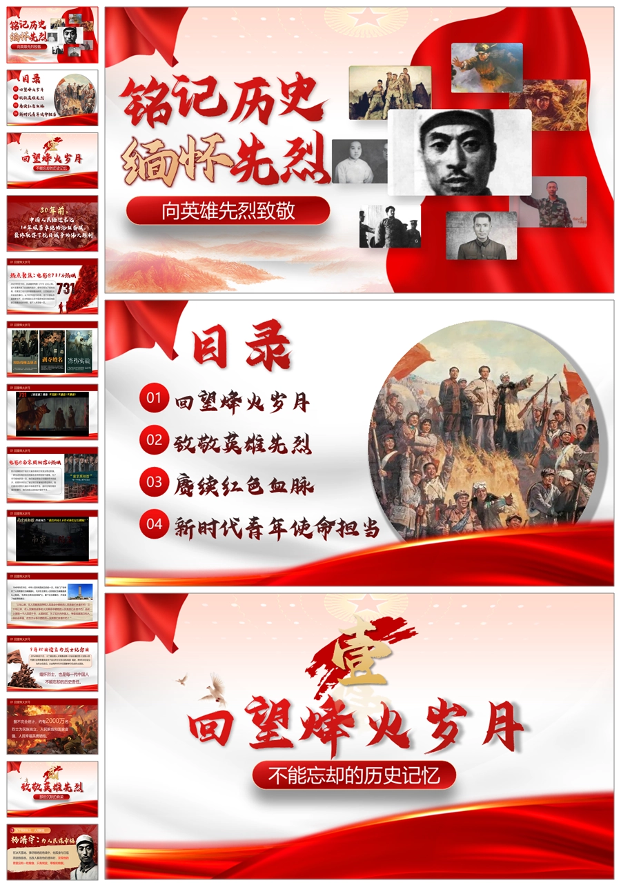 【5668】《铭记历史,缅怀先烈》爱国主义教育主题班会PPT课件+视频+发言稿