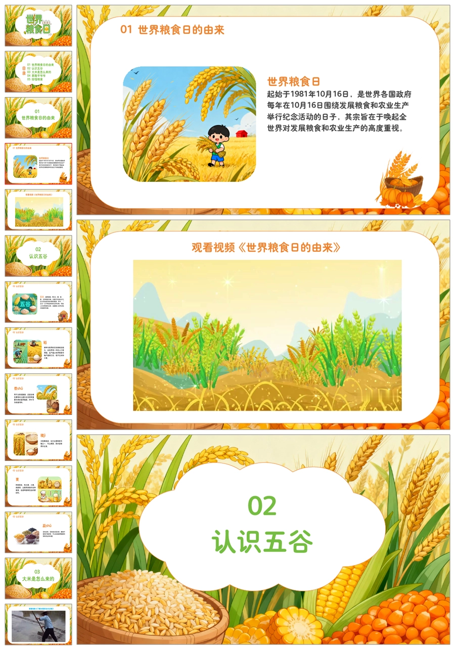 【5685】【通用】世界粮食日主题班会《认识五谷》ppt课件+教案