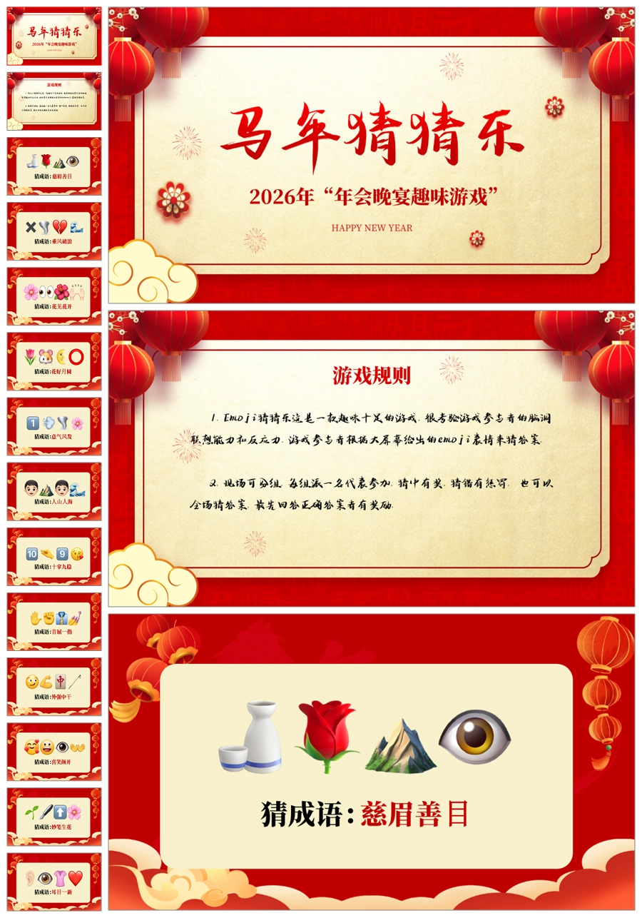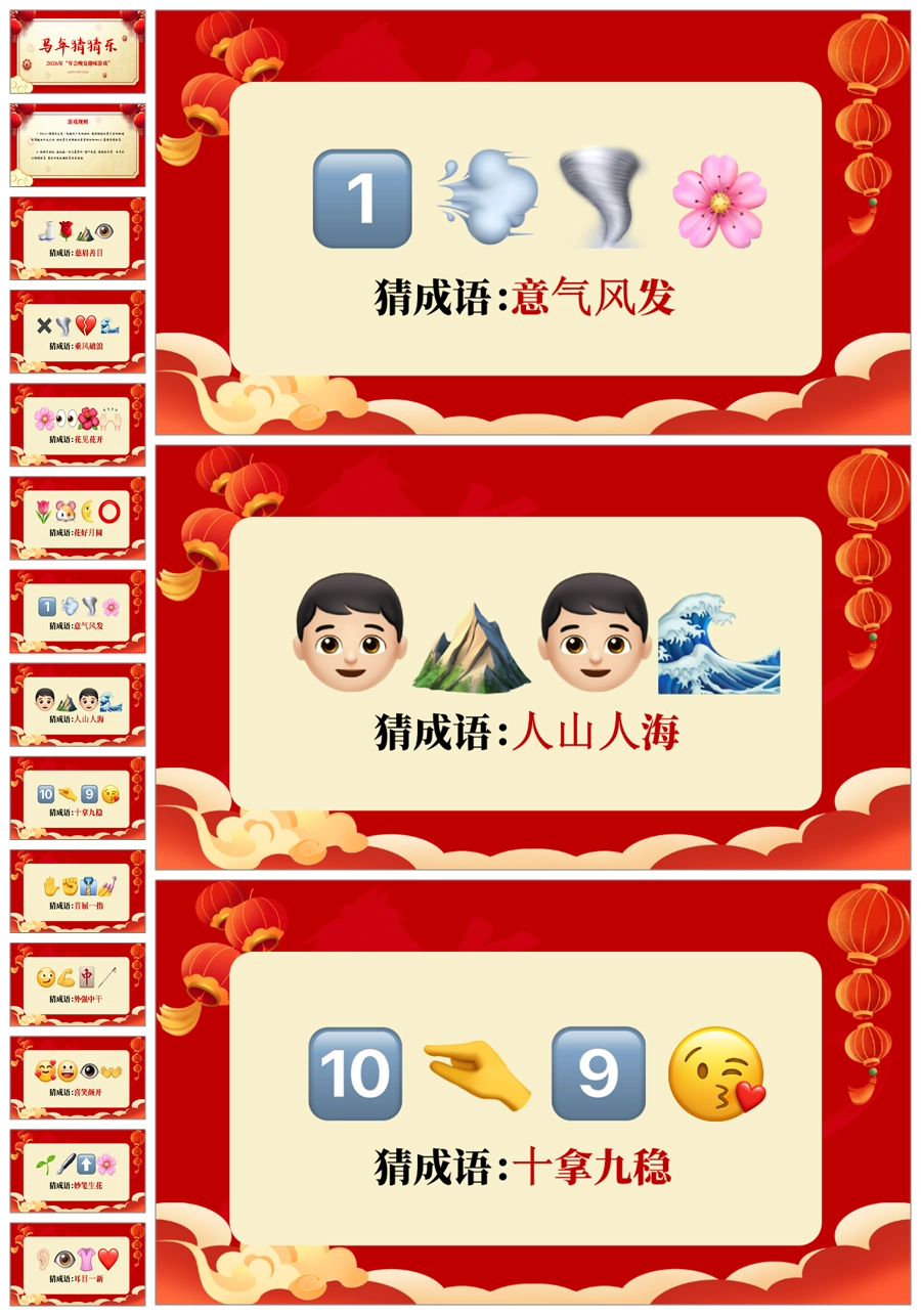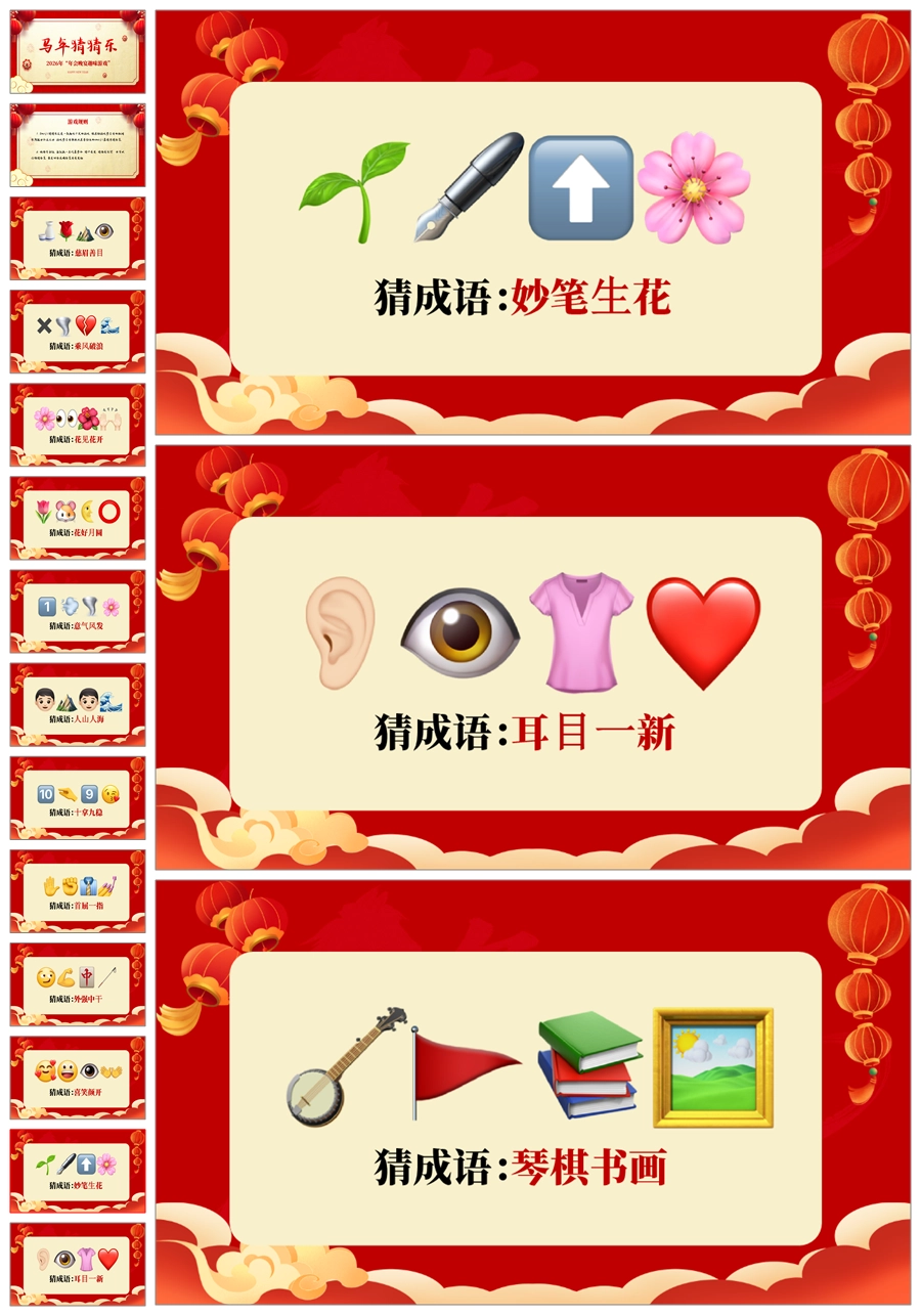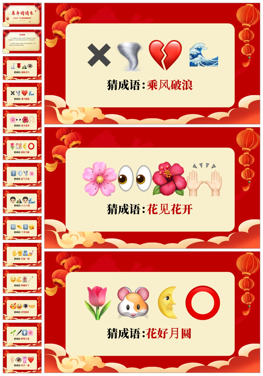 【5695】【通用】马年猜猜乐【猜成语110题】马年元旦联欢主题班会ppt课件